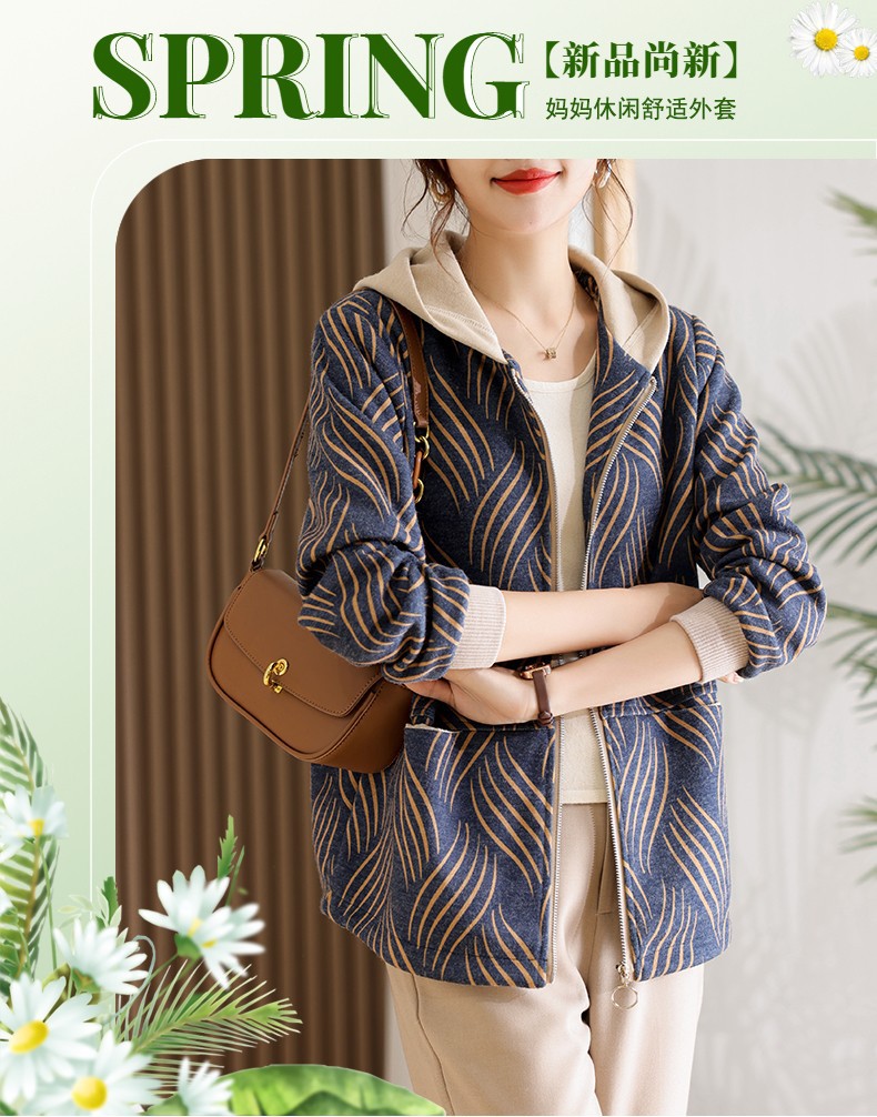 秋冬新款【连帽外套中年短款】休闲上衣 中老年女装40岁夹克衫