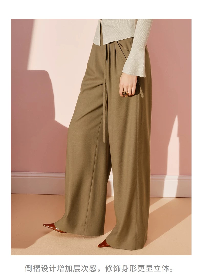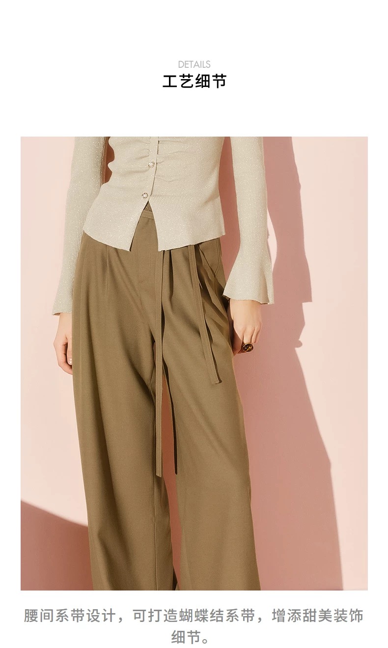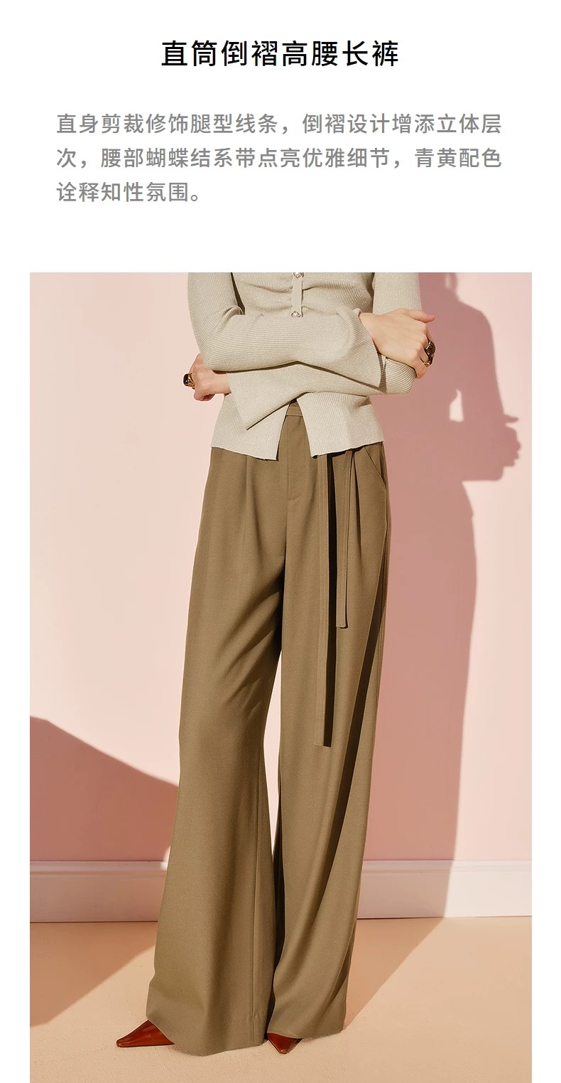 MAXRIENY极简通勤气质感休闲裤25夏阔腿长裤女MS86TR516Y90