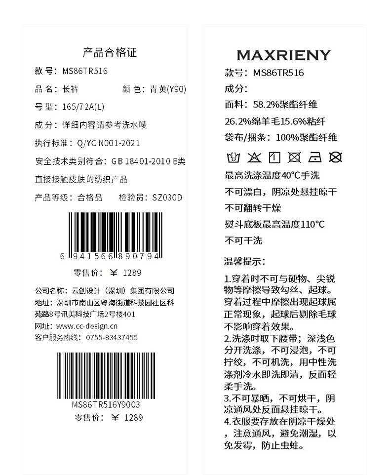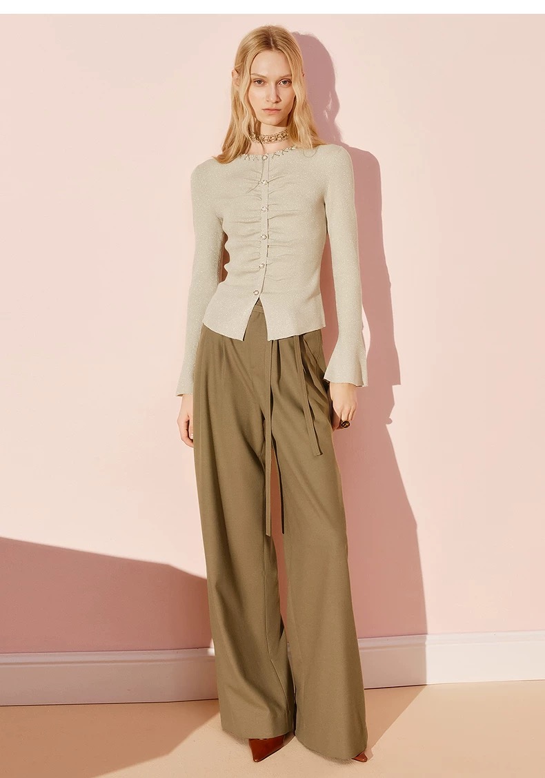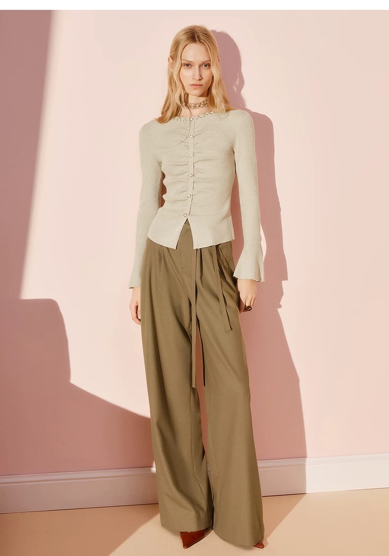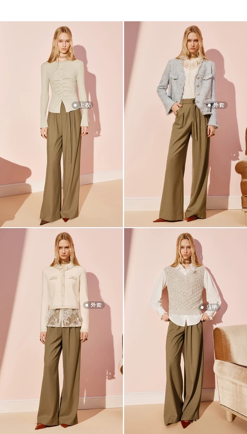 MAXRIENY极简通勤气质感休闲裤25夏阔腿长裤女MS86TR516Y90