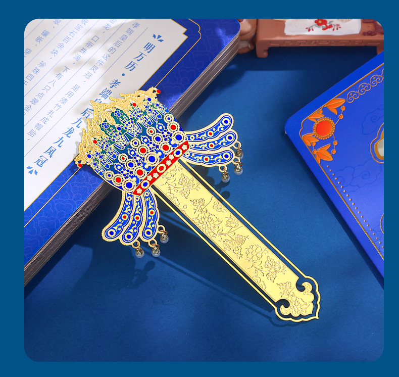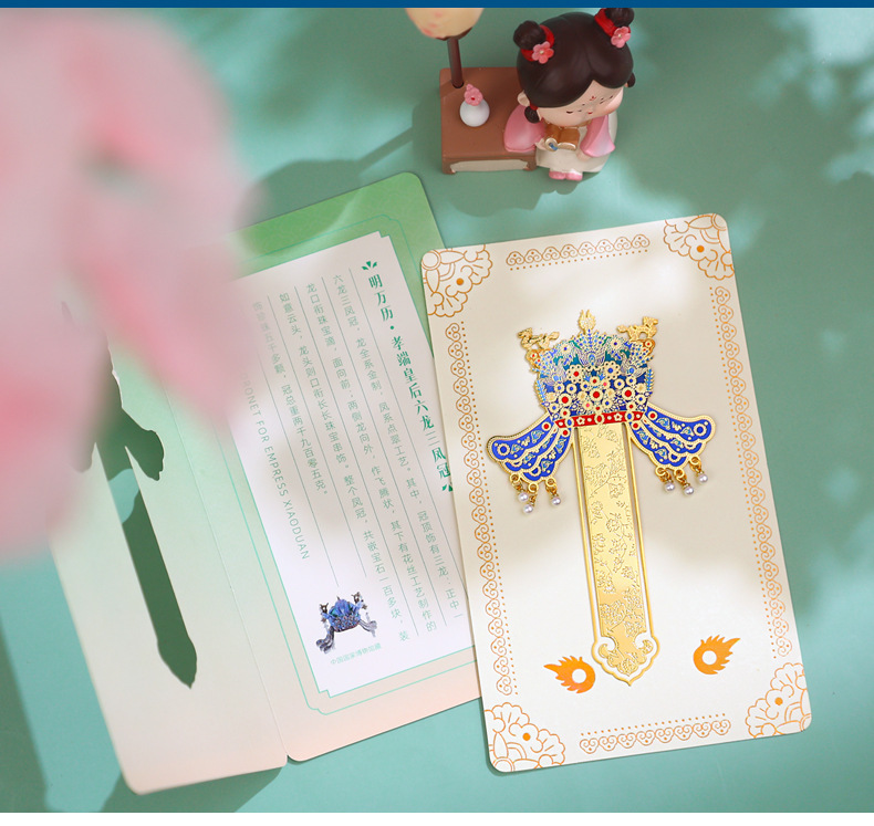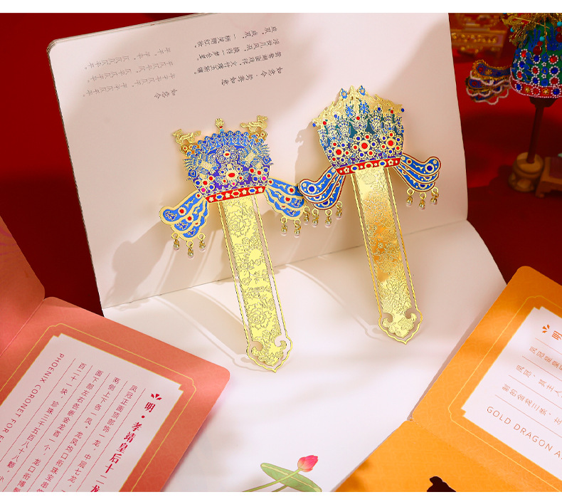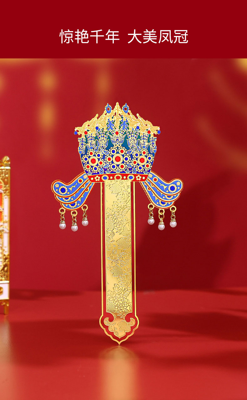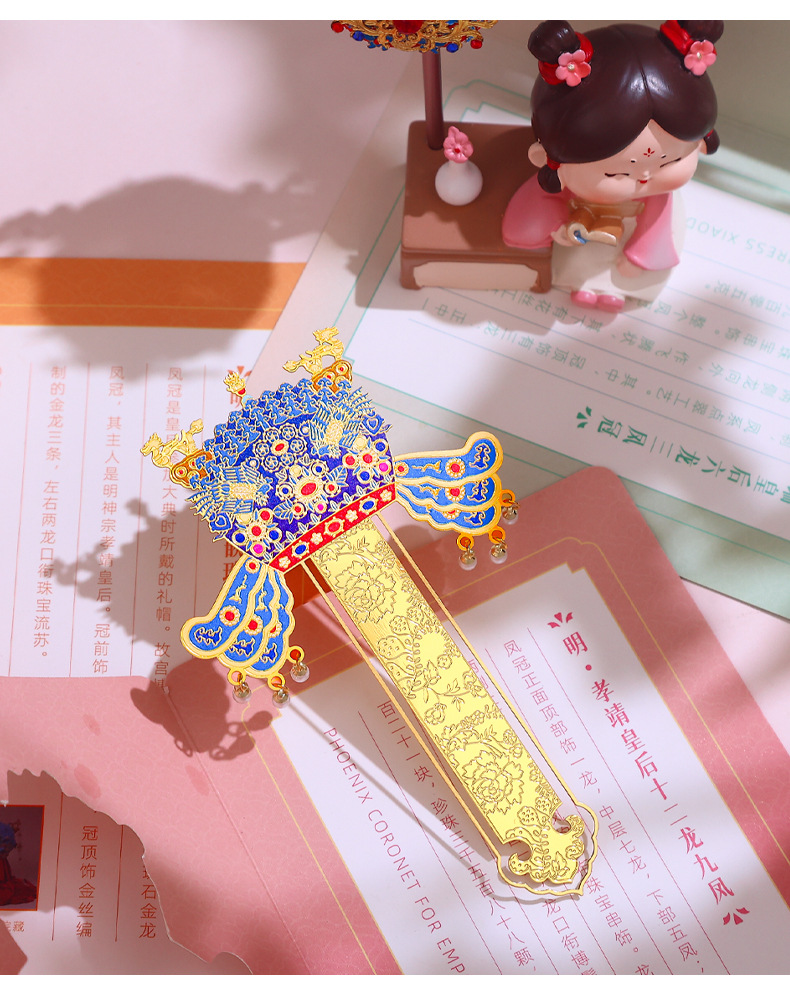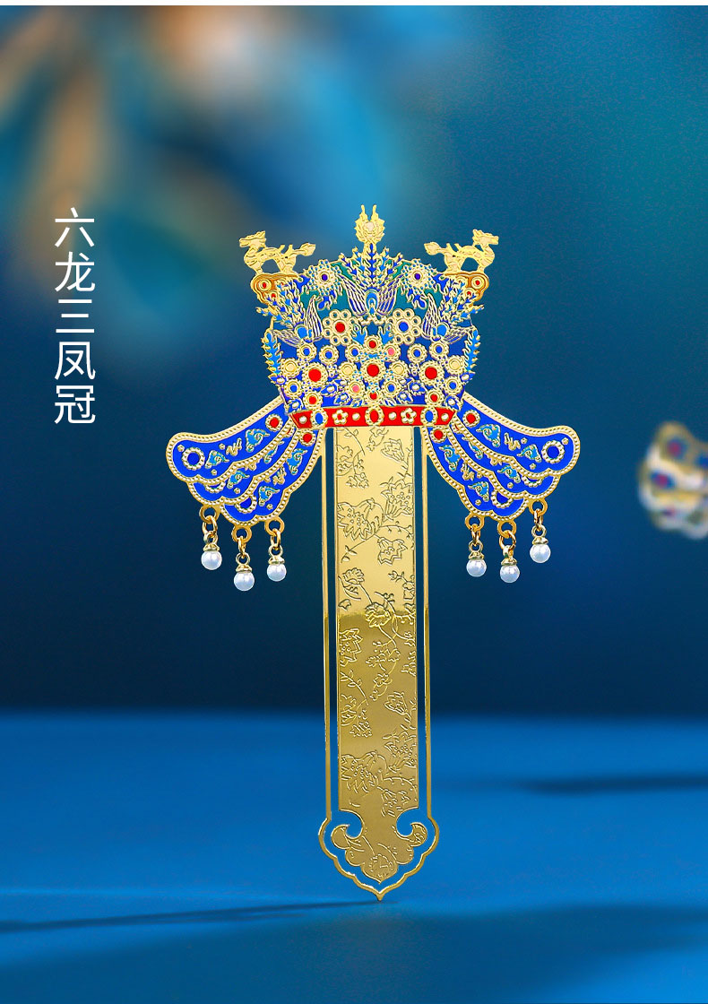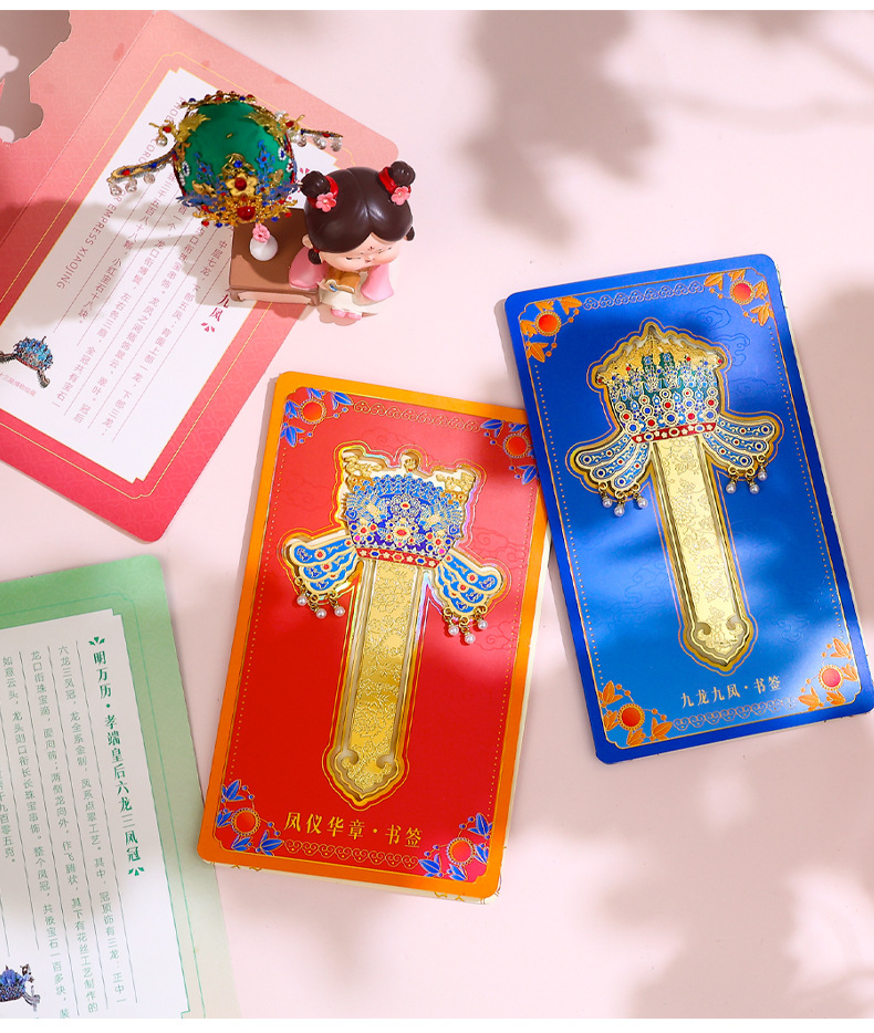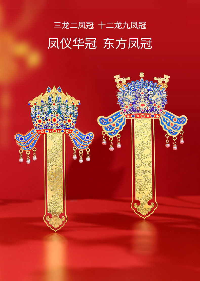 【四大凤冠书签】九龙九凤十二龙九凤高档镂空金属书签北京古风创意博物馆纪念品国风文创礼品