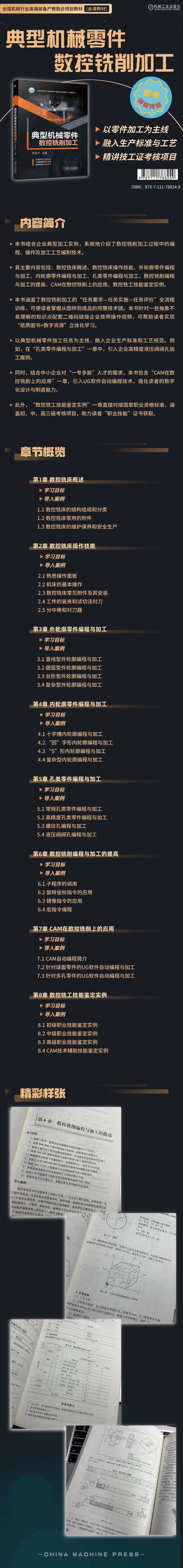 本书打破传统学科界限,以典型机械零件加工任务为主线,融入企业生产标准和工艺规范。例如,在“孔类零件编程与加工”一章中,引入企业高精度液压阀阀孔加工案例,通过“任务要求—任务实施—任务评价”全流程训练,使读者掌握从图样到成品的完整技术链。同时,结合中小企业对“一专多能”人才的需求,本书包含“CAM在数控铣削上的应用”一章,引入UG软件自动编程技术,强化读者的数字化设计与制造能力。利用数控仿真软件完成编程验证与工艺优化,通过实训车间真实机床操作巩固技能。书中配套二维码链接企业技师操作视频,实现“纸质图书+数字资源”立体化学习。此外,“数控铣工技能鉴定实例”一章直接对接国家职业资格标准,涵盖初、中、高三级考核项目,助力读者“职业技能”证书获取。