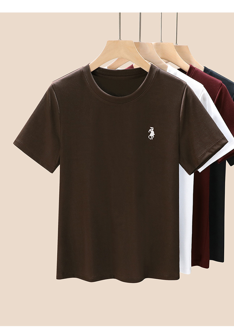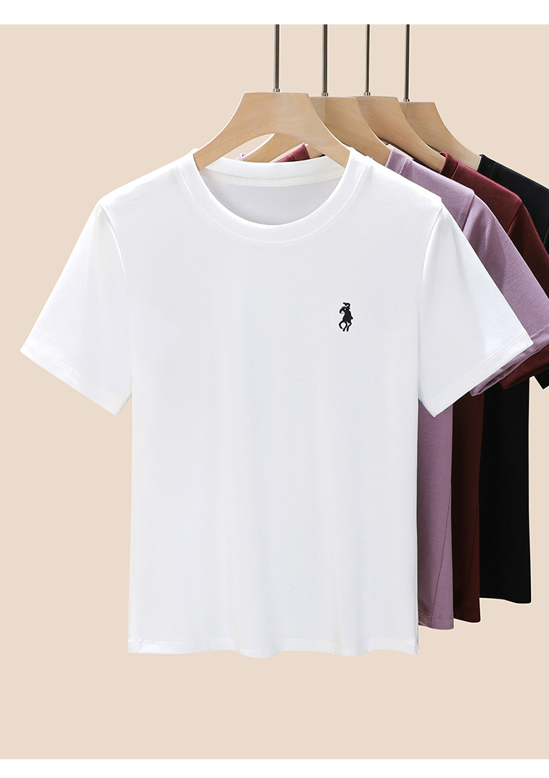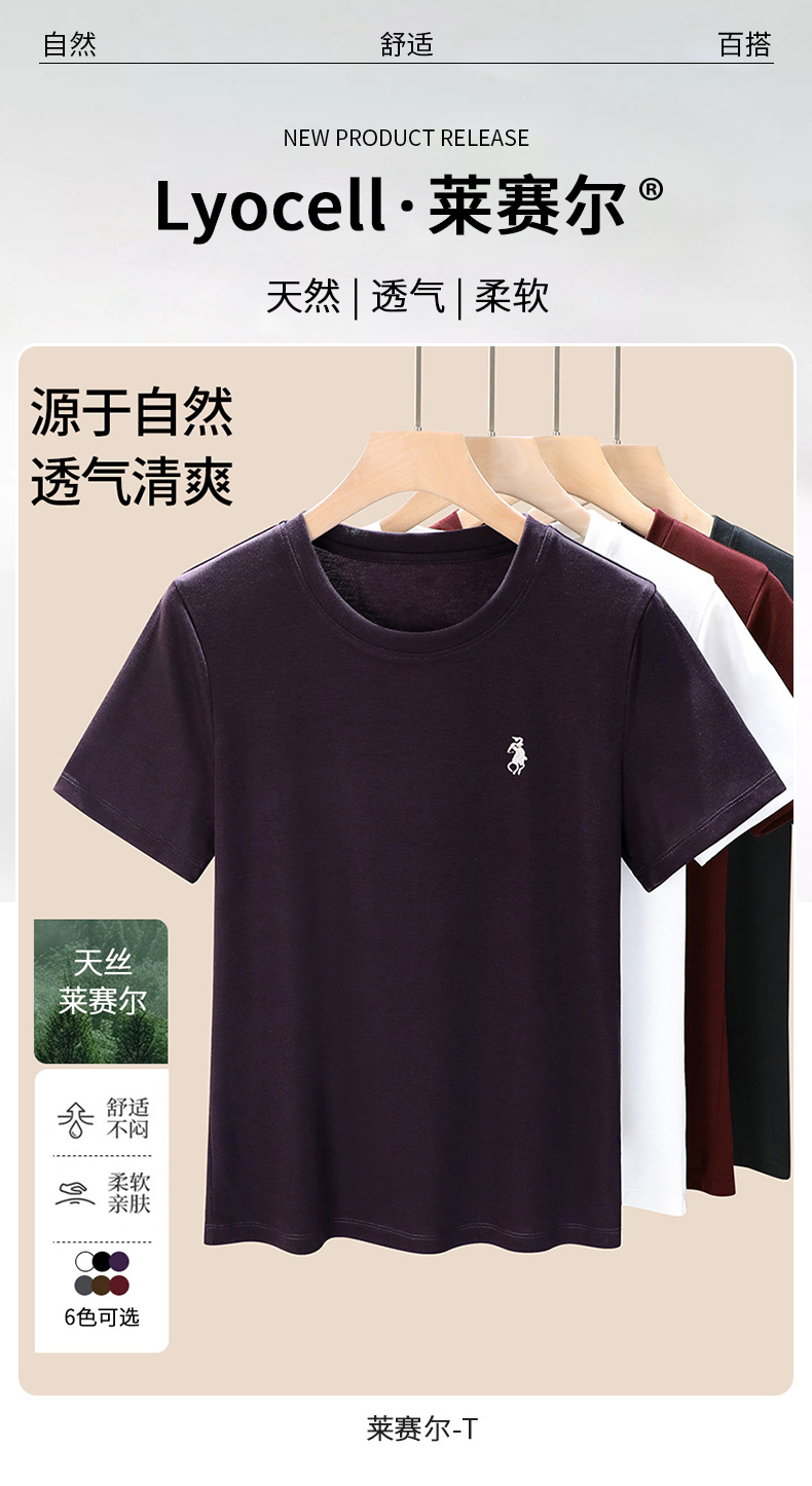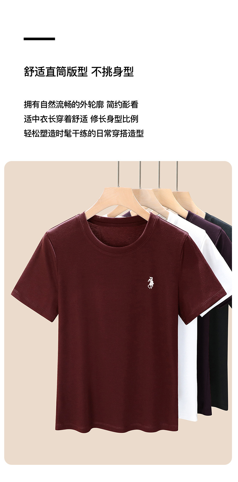 「自」全新升级【铂金会员109/天猫139/差价30】(04350)洛诗琳天丝时尚小马刺绣圆领T恤2025夏季新款莱赛尔短袖上衣