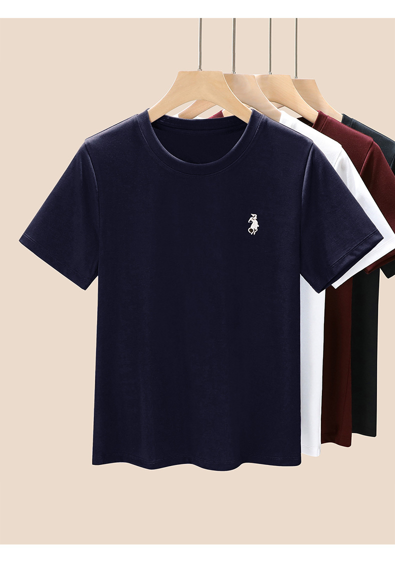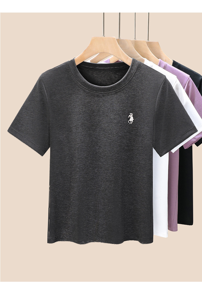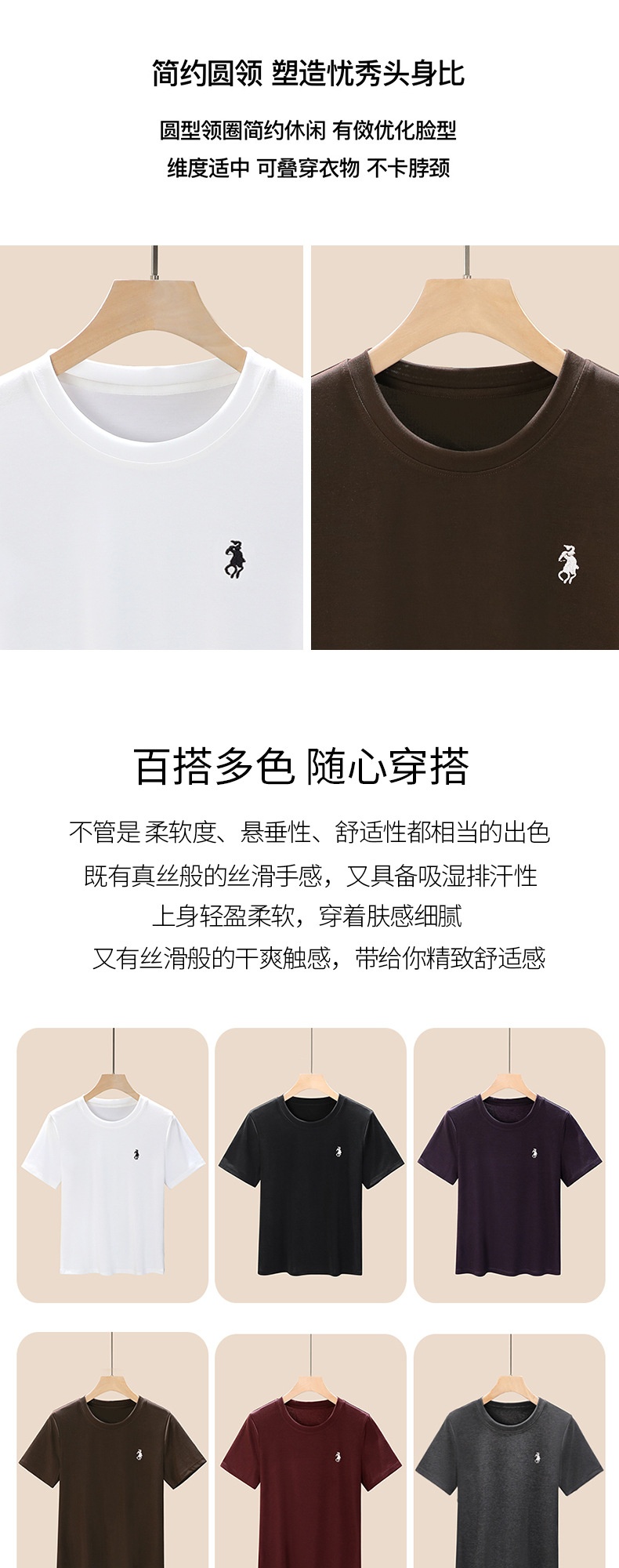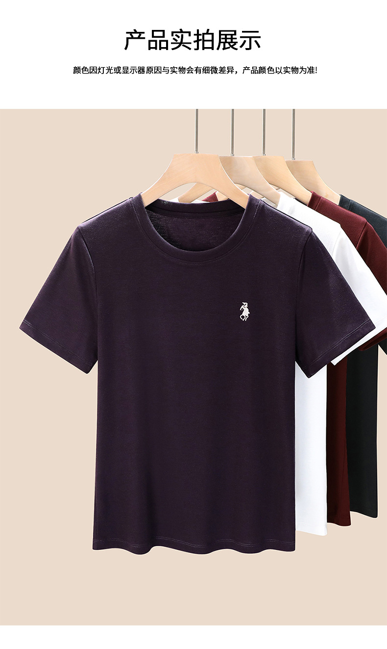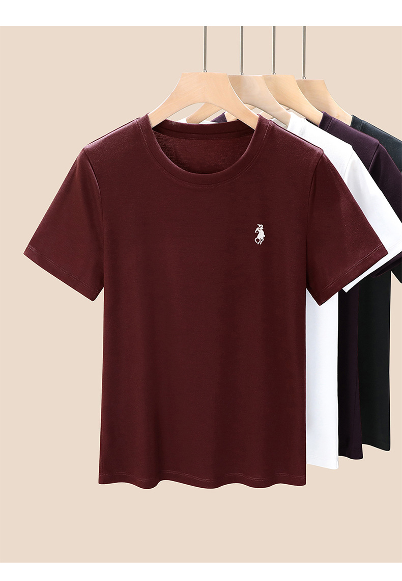 「自」全新升级【铂金会员109/天猫139/差价30】(04350)洛诗琳天丝时尚小马刺绣圆领T恤2025夏季新款莱赛尔短袖上衣