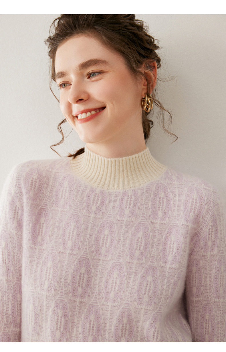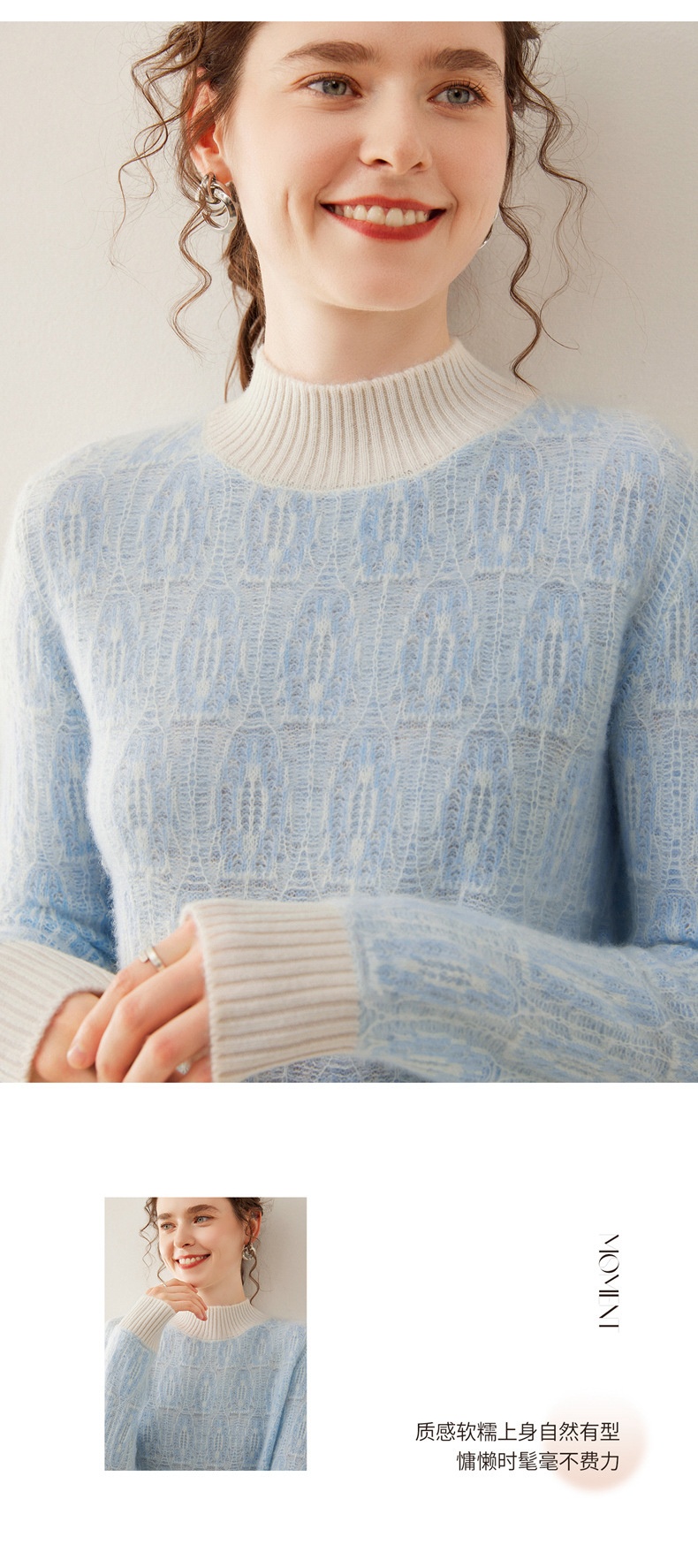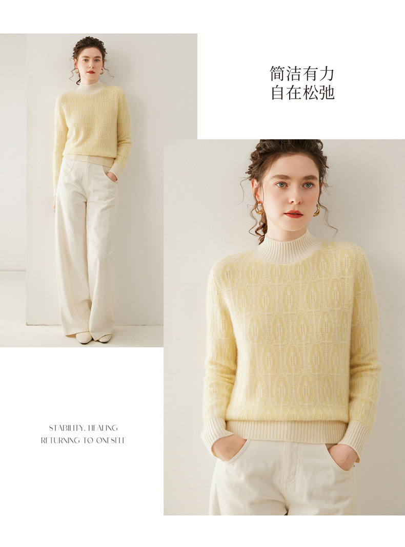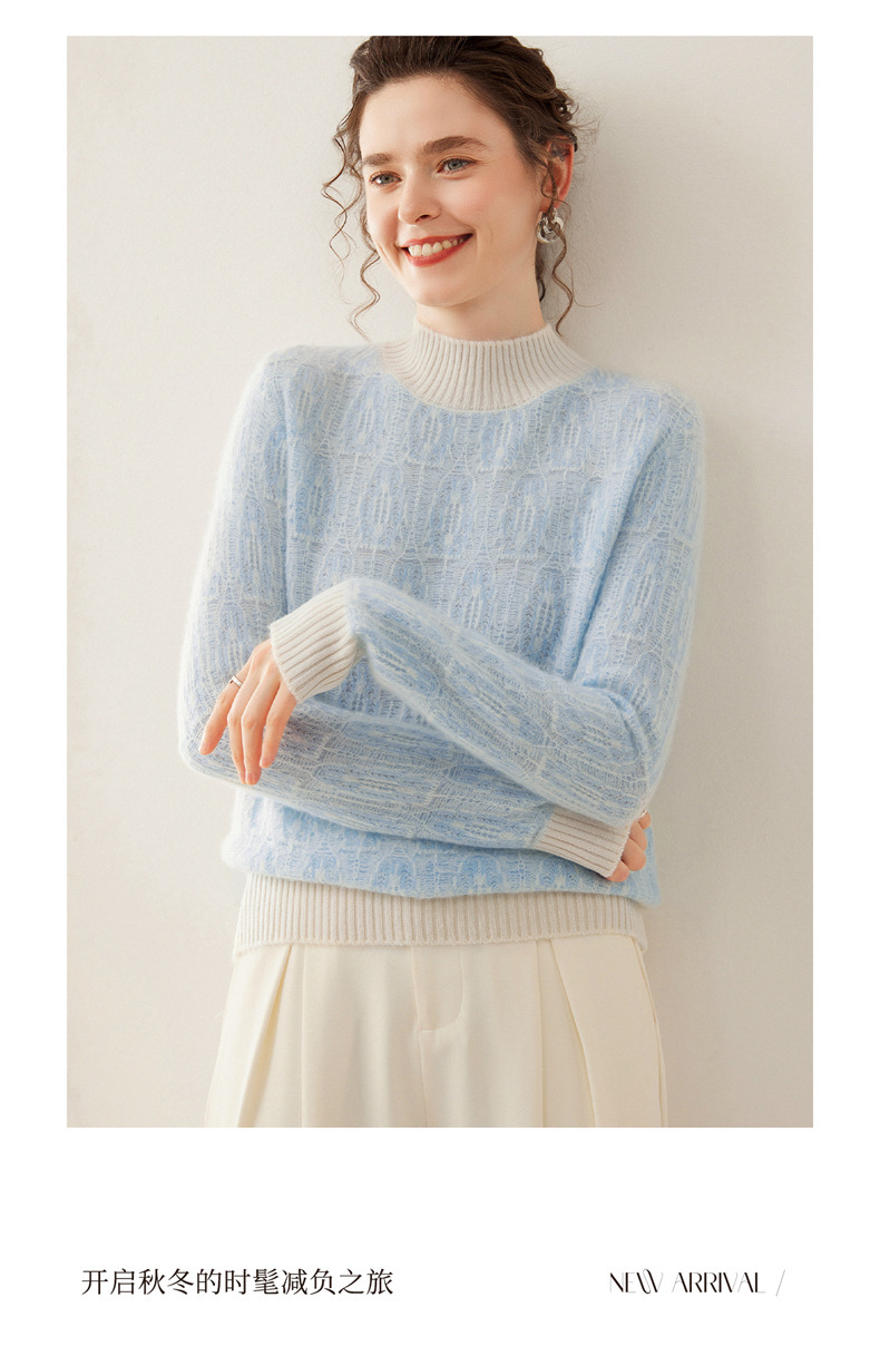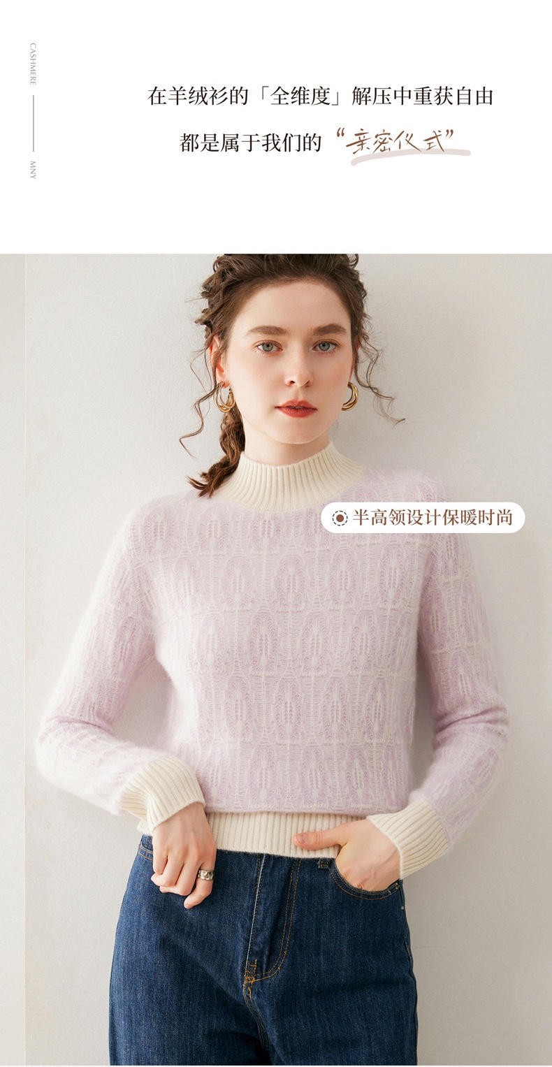 「自」全新升级【铂金会员514/天猫699/差价185】(04142)洛诗琳气质拼色提花羊绒衫2025秋冬半高领加厚套头针织毛衣