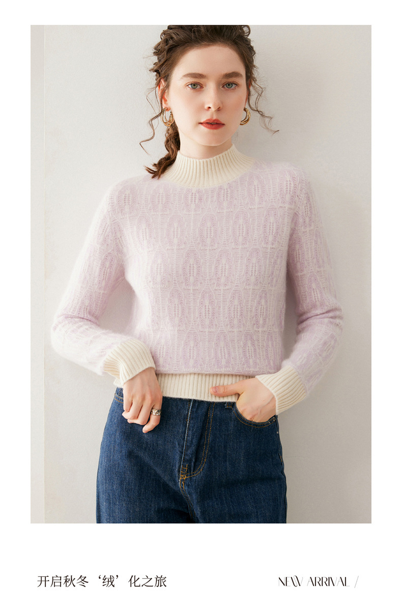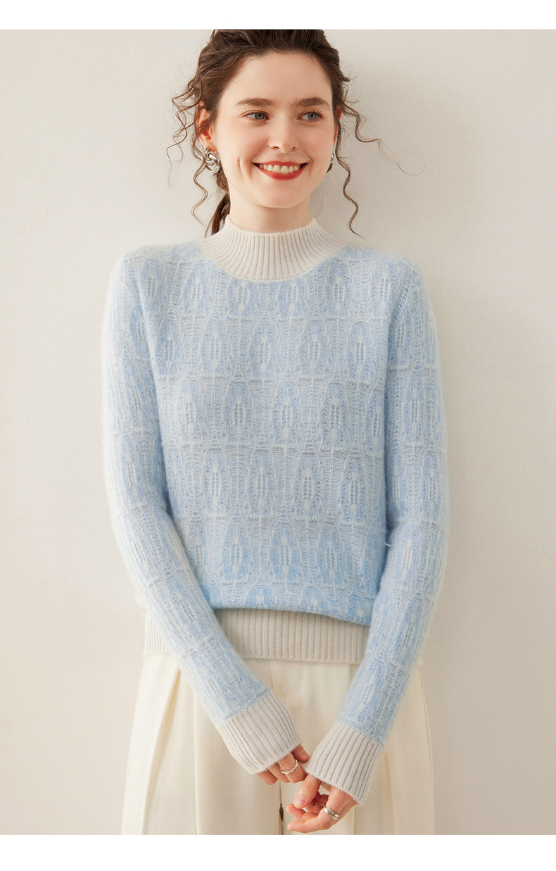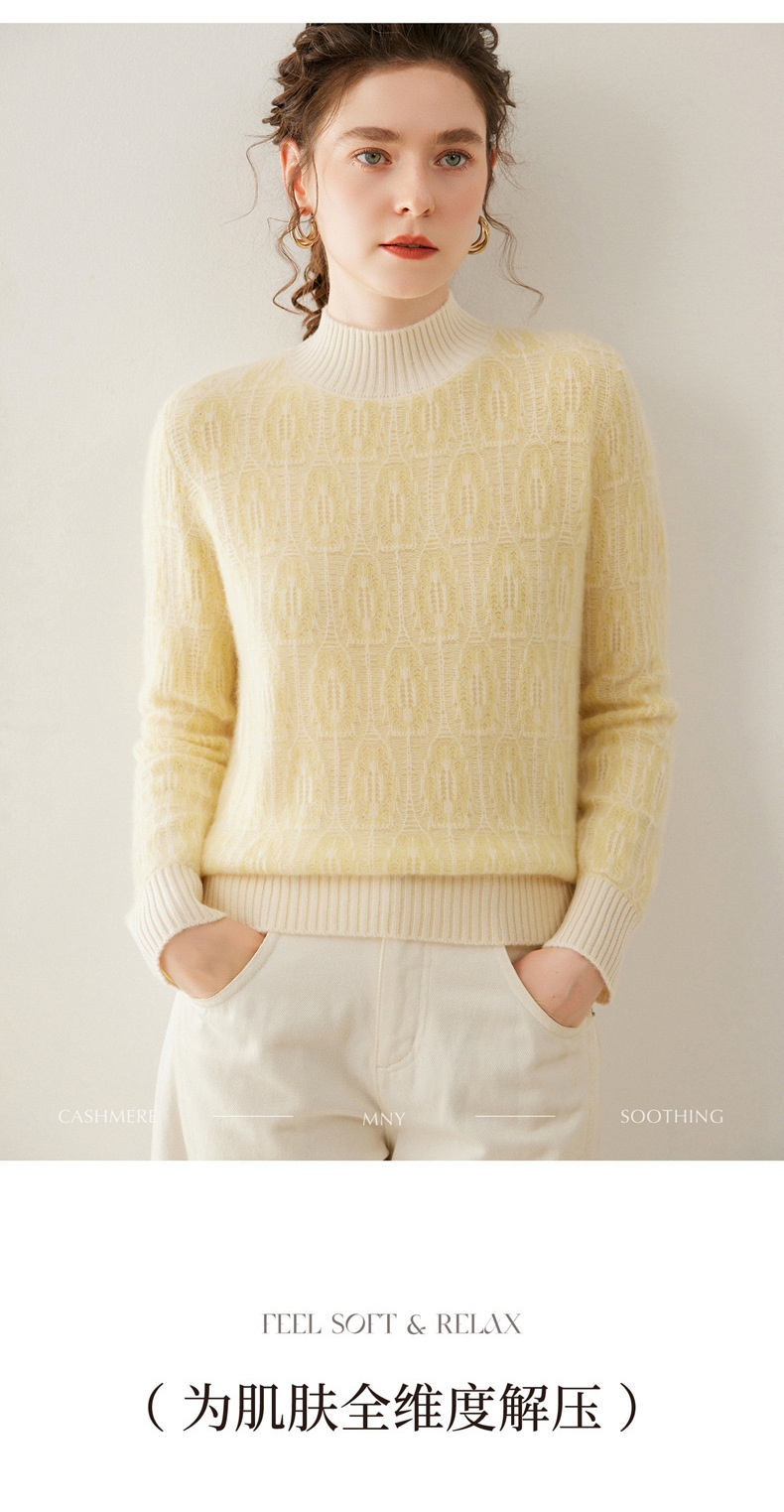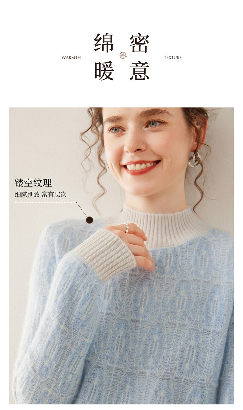 「自」全新升级【铂金会员514/天猫699/差价185】(04142)洛诗琳气质拼色提花羊绒衫2025秋冬半高领加厚套头针织毛衣