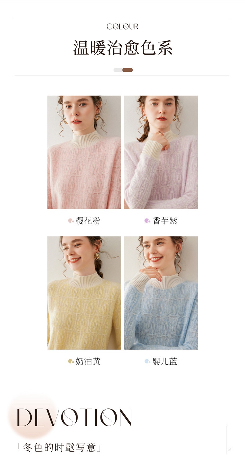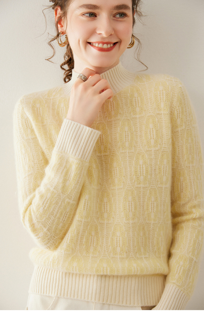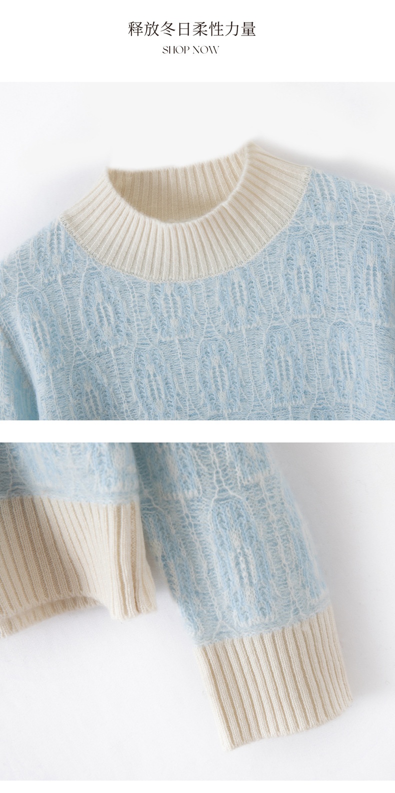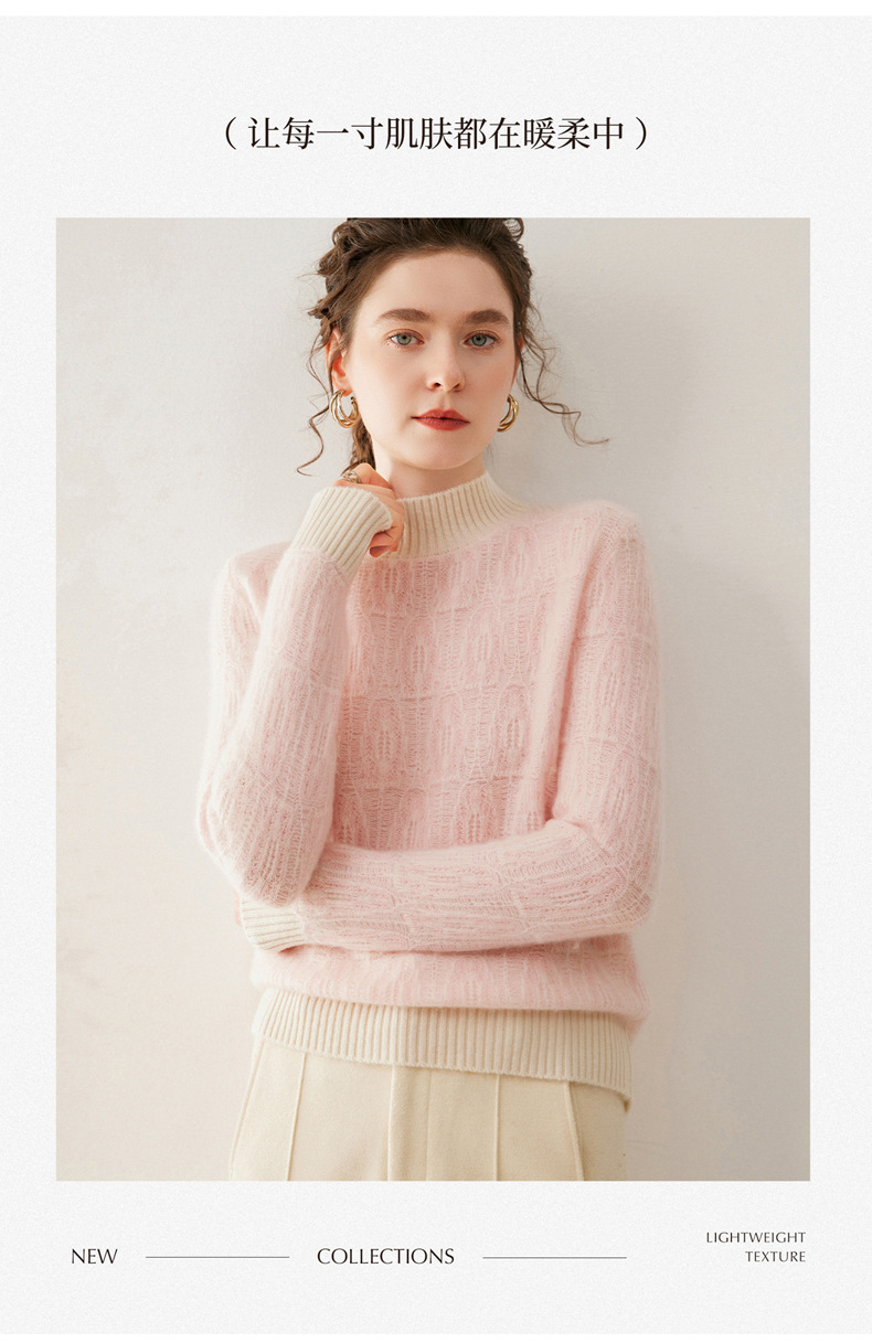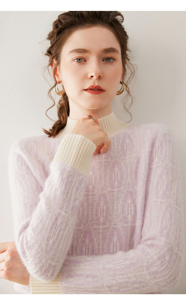 「自」全新升级【铂金会员514/天猫699/差价185】(04142)洛诗琳气质拼色提花羊绒衫2025秋冬半高领加厚套头针织毛衣