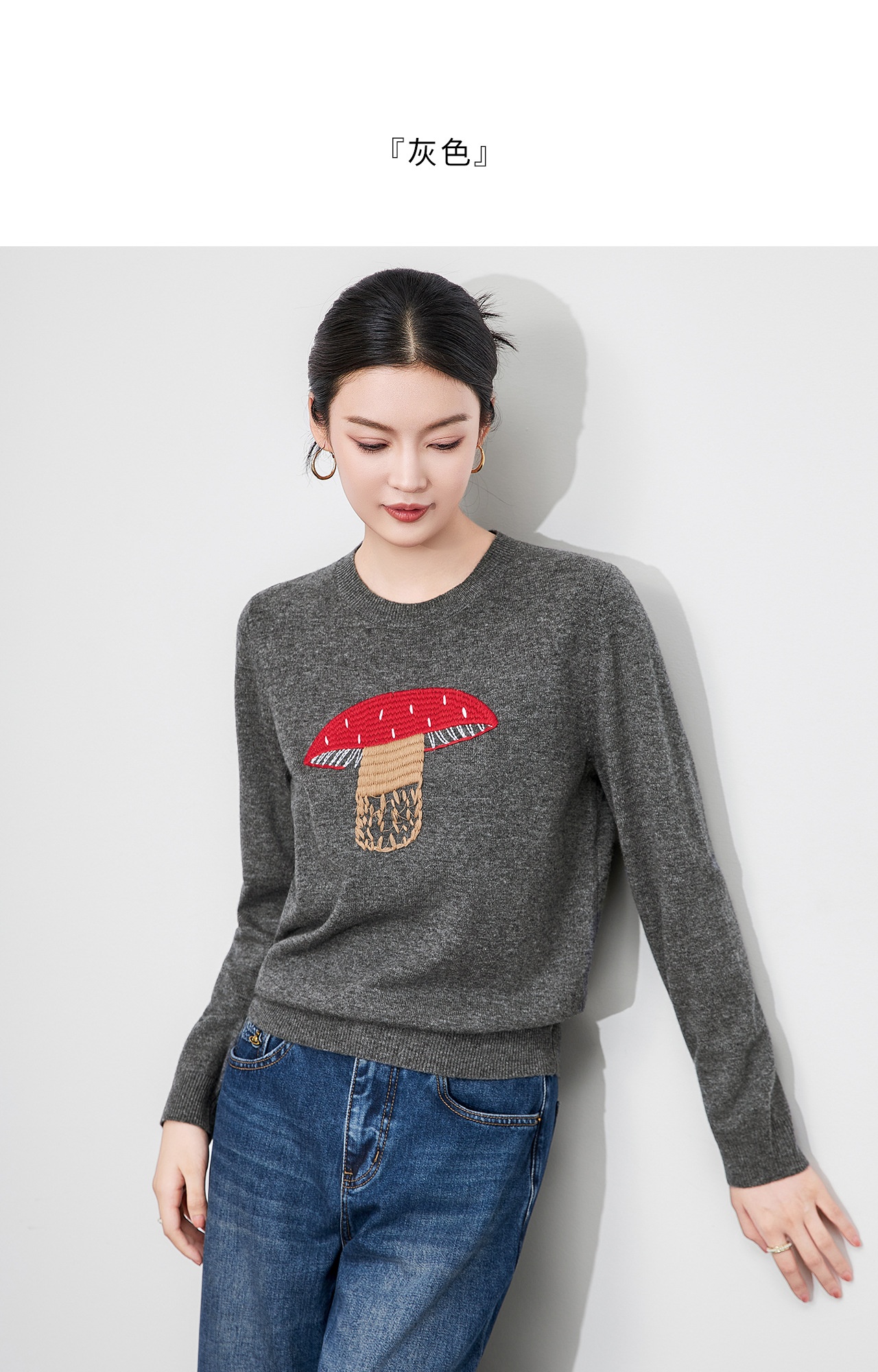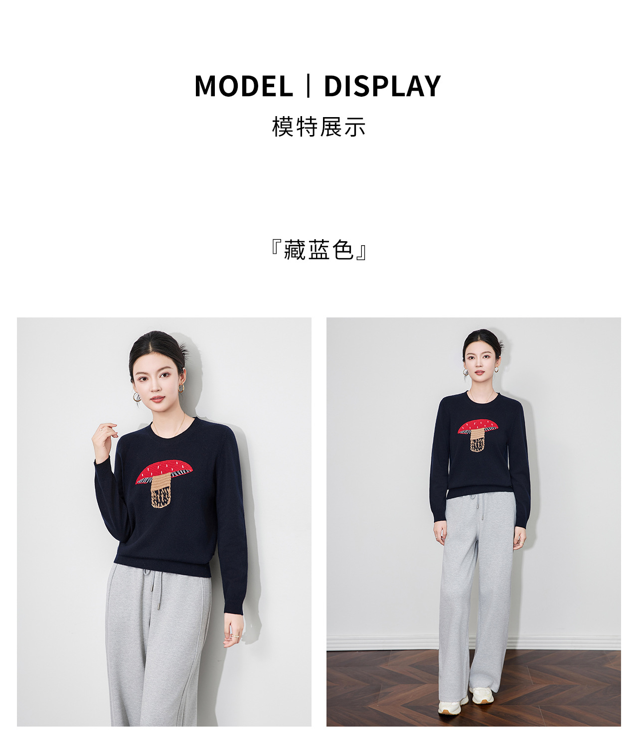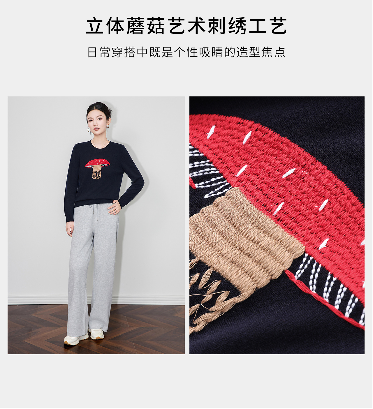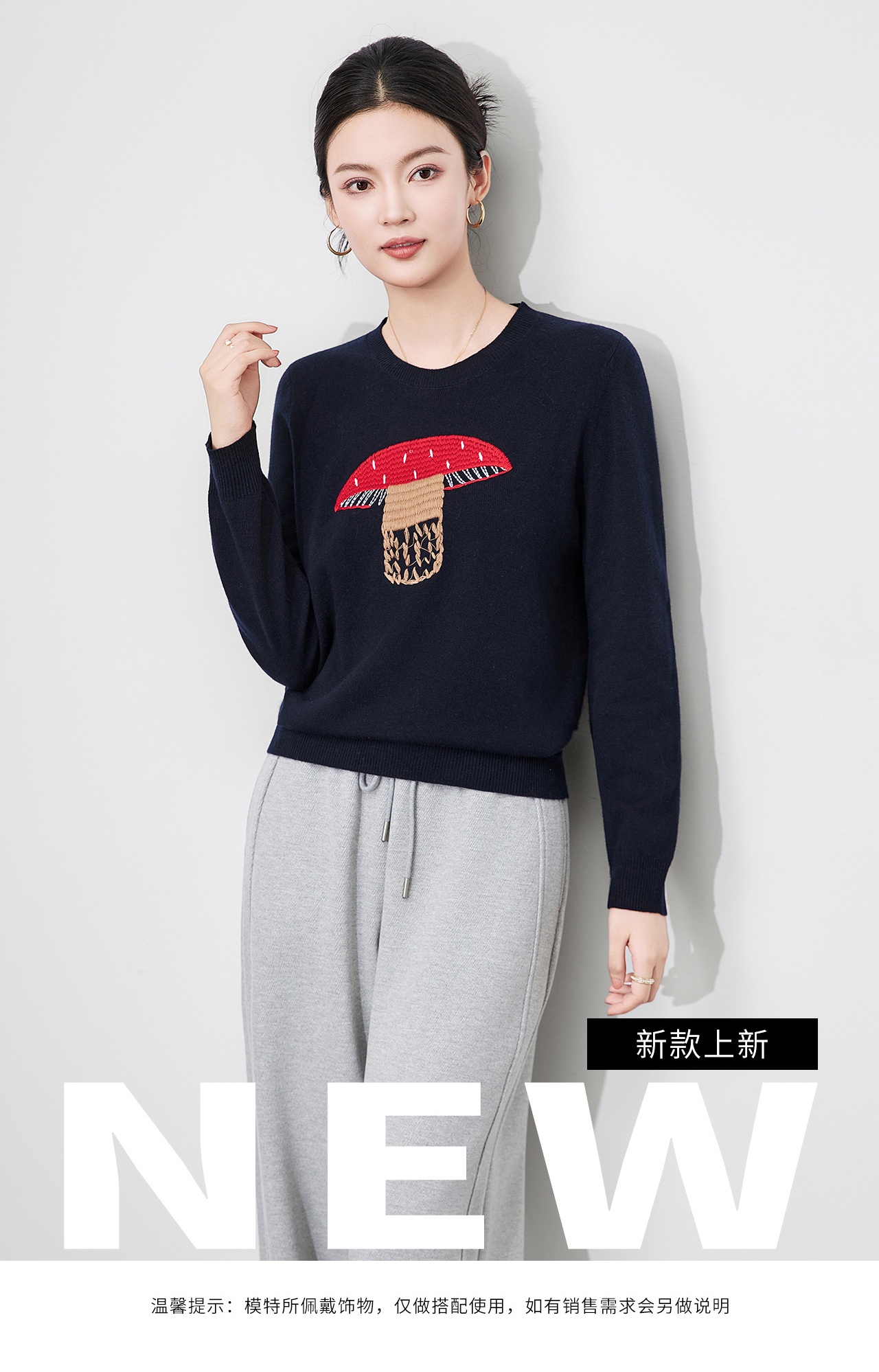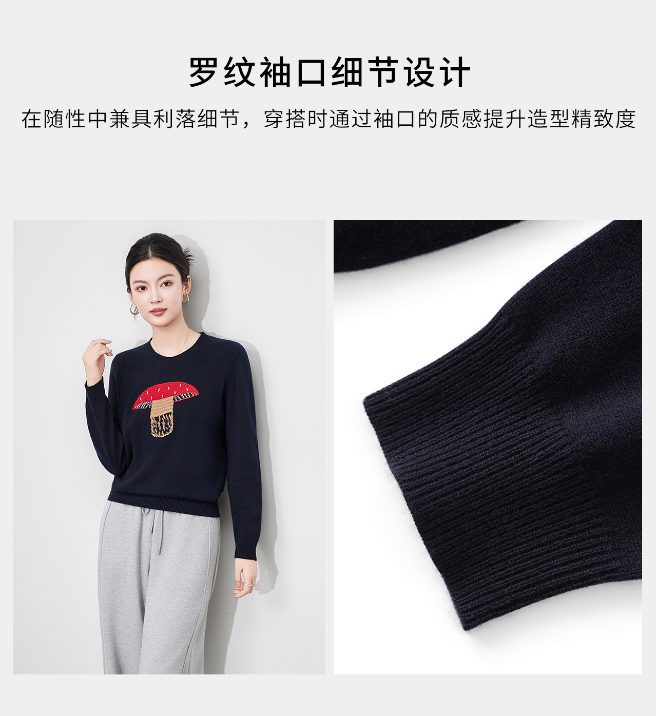「高货wl」全新升级【铂金会员238/天猫319/差价81】(53503)洛诗琳100超细美丽诺羊毛上衣2025秋冬蘑菇刺绣圆领毛衣