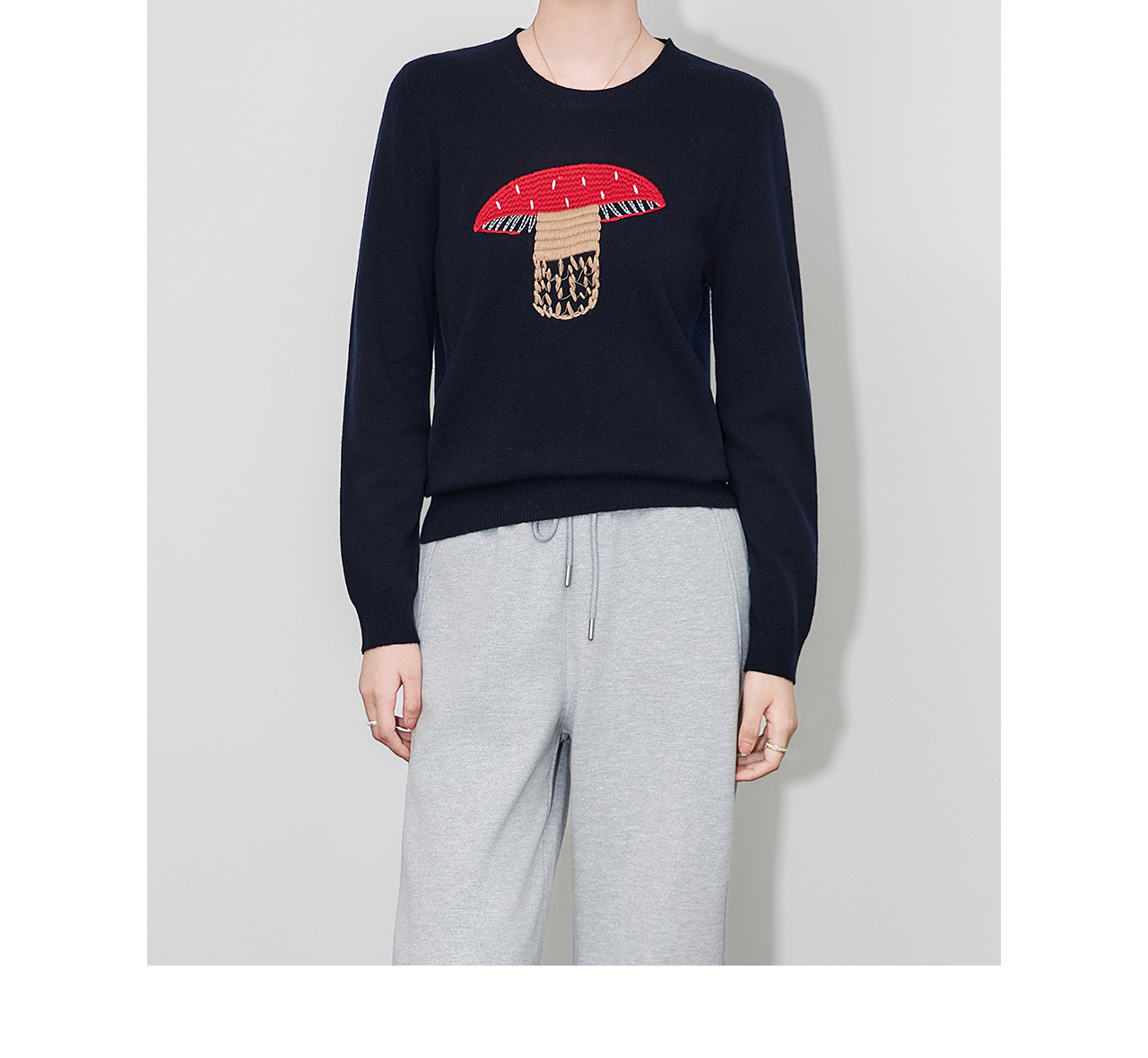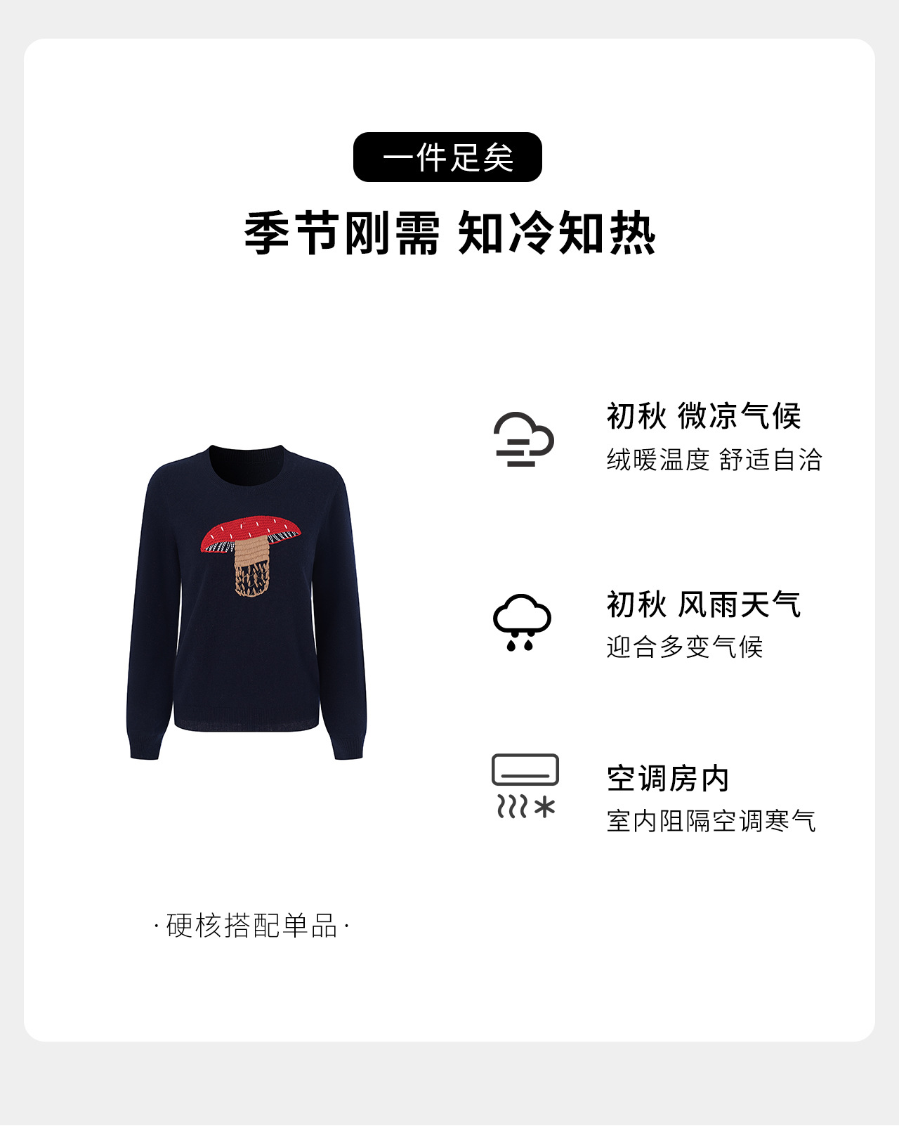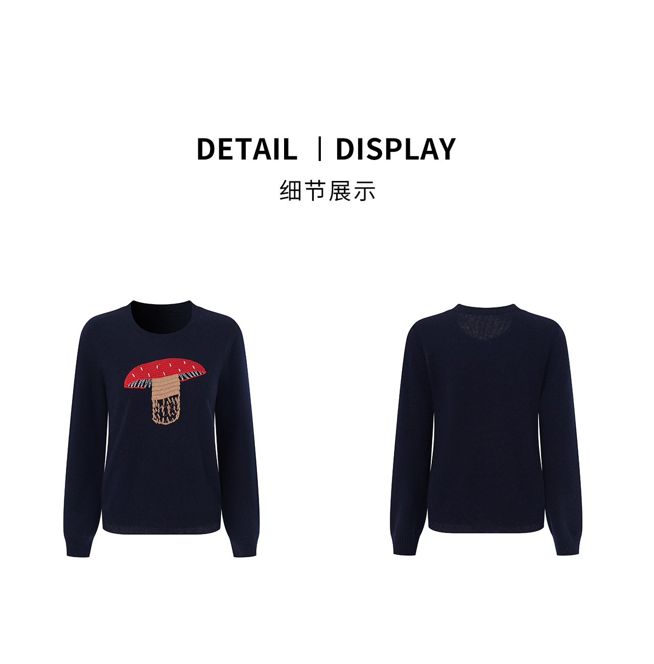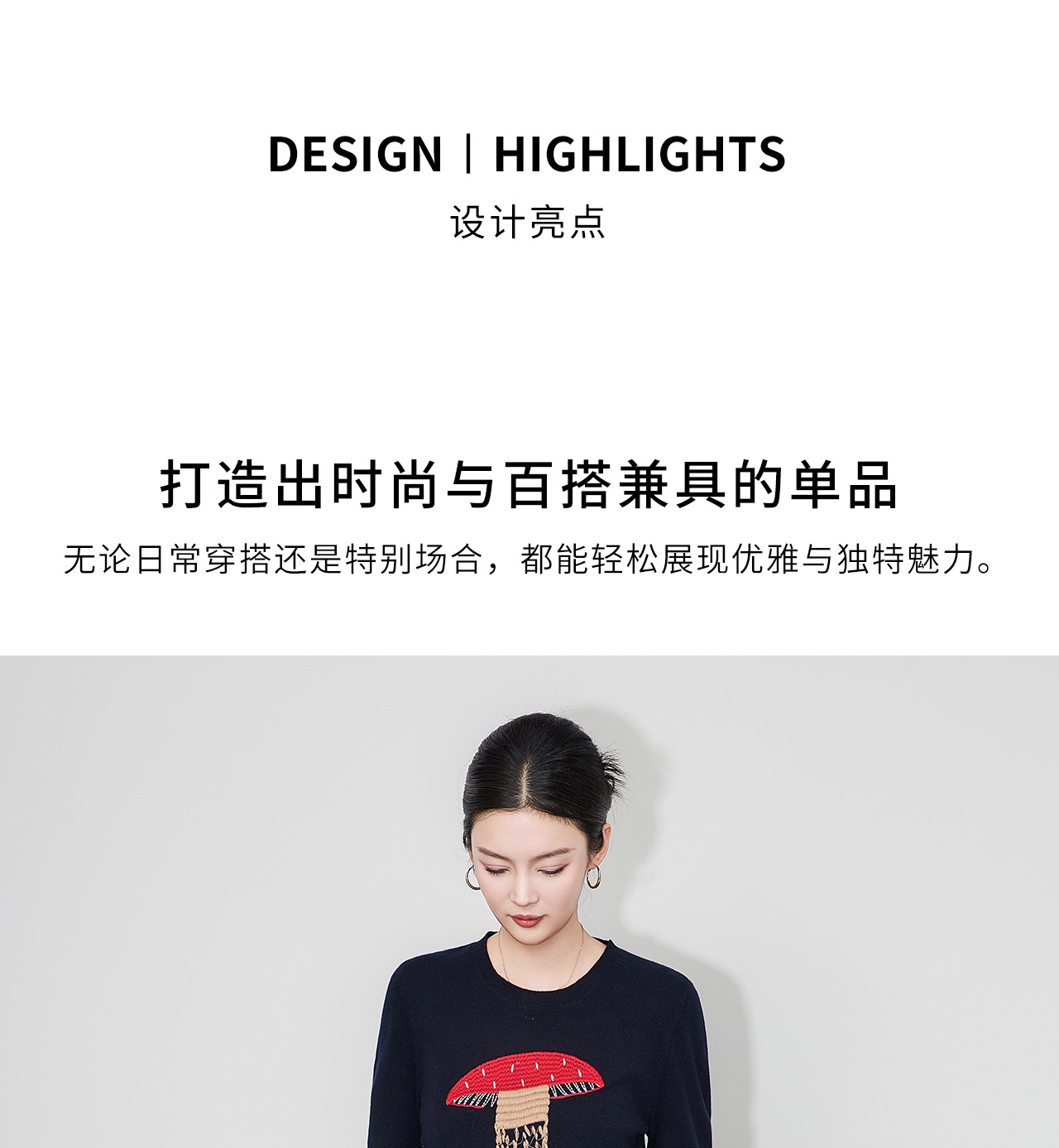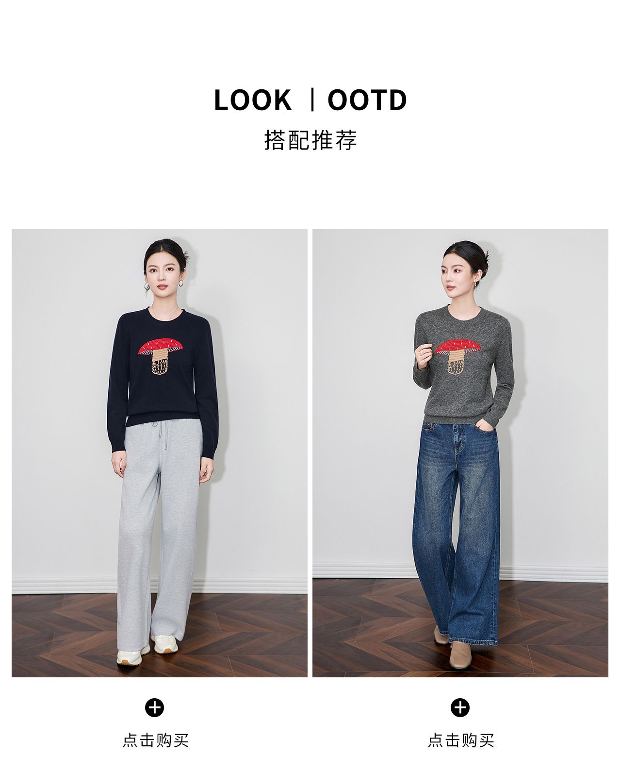 「高货wl」全新升级【铂金会员238/天猫319/差价81】(53503)洛诗琳100超细美丽诺羊毛上衣2025秋冬蘑菇刺绣圆领毛衣
