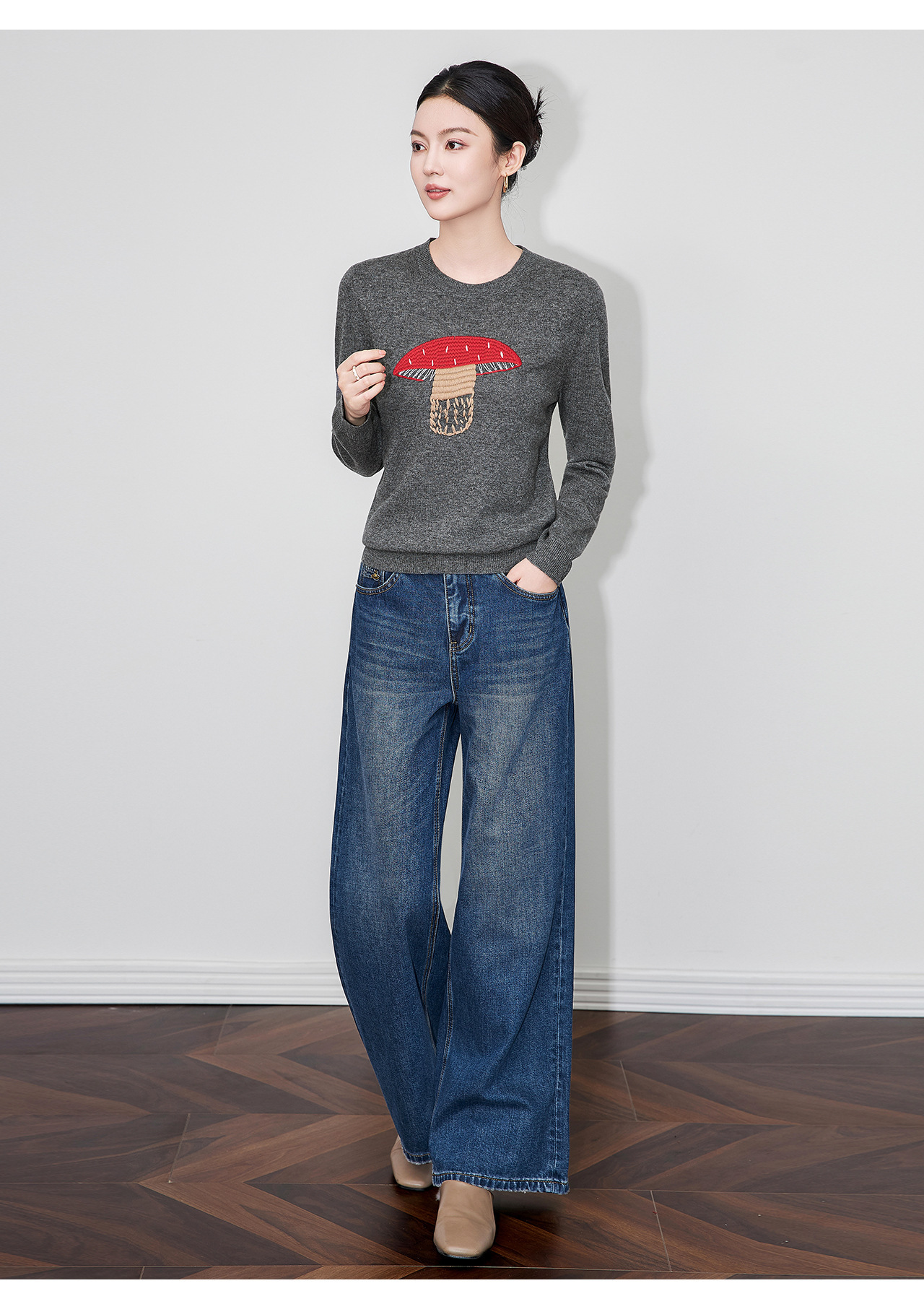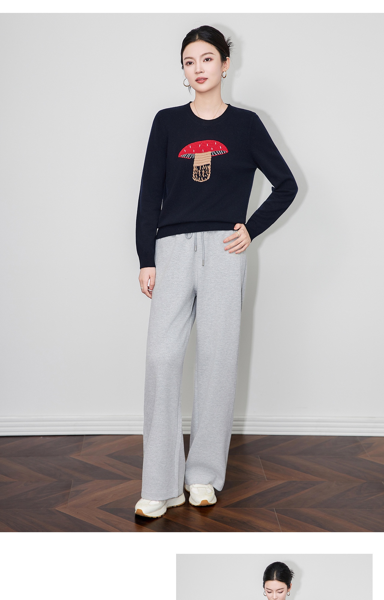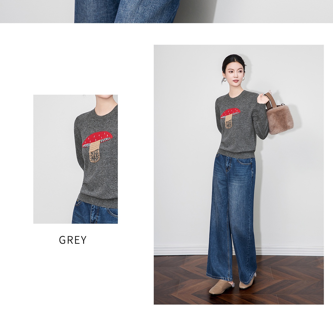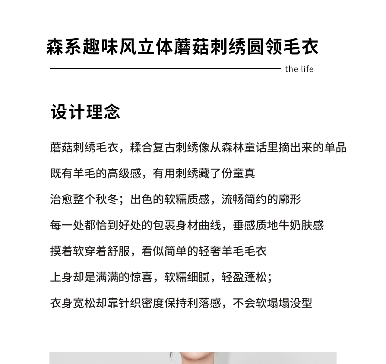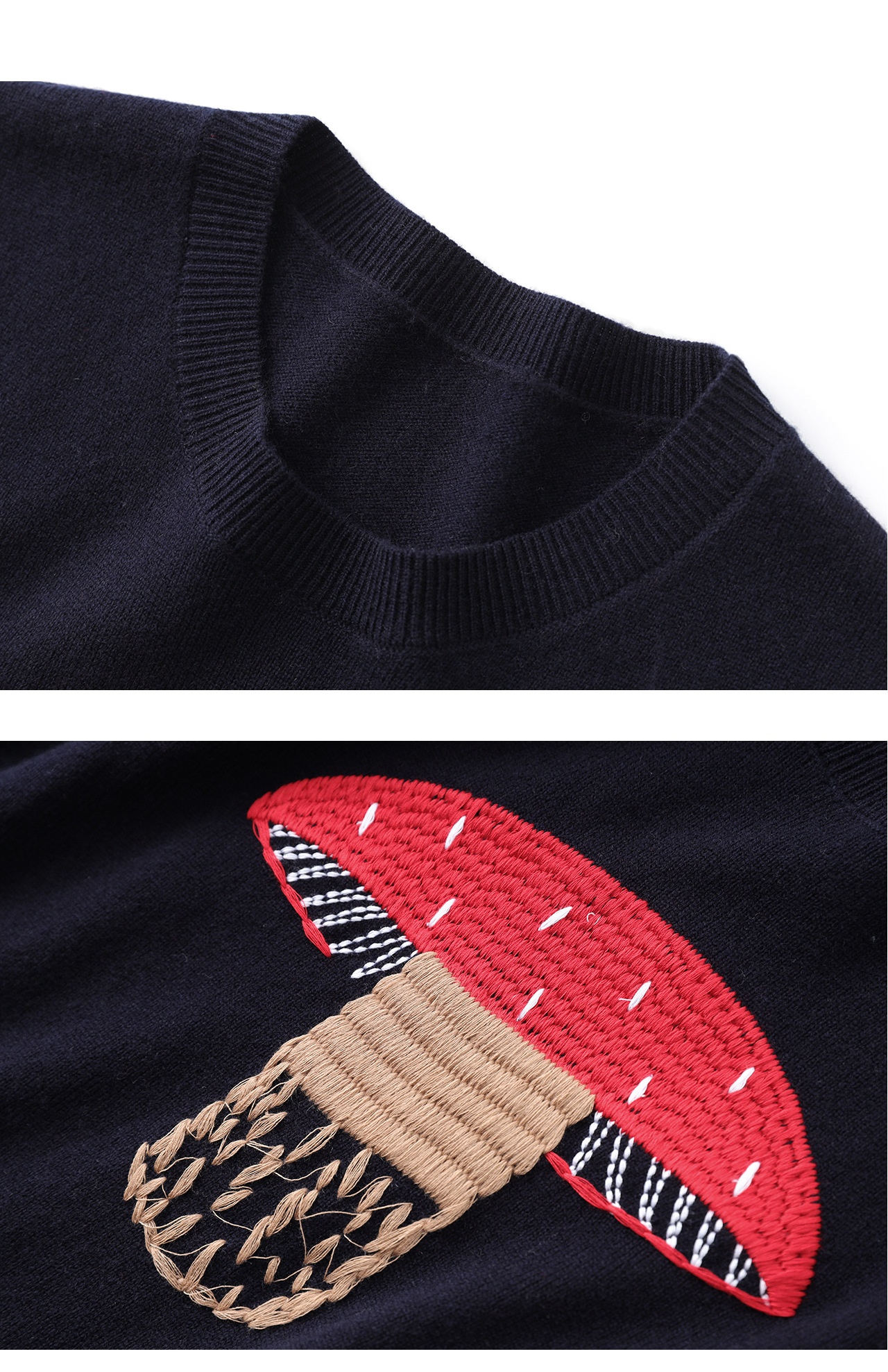 「高货wl」全新升级【铂金会员238/天猫319/差价81】(53503)洛诗琳100超细美丽诺羊毛上衣2025秋冬蘑菇刺绣圆领毛衣