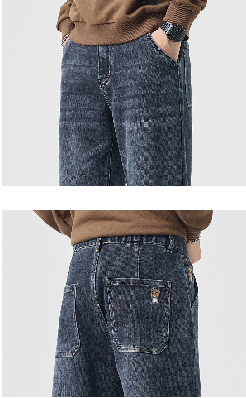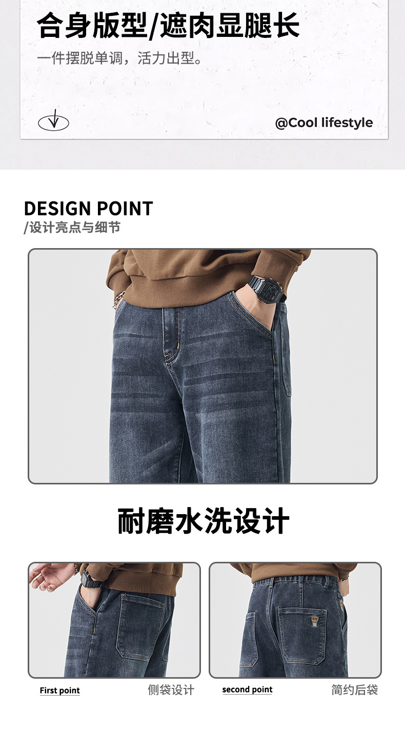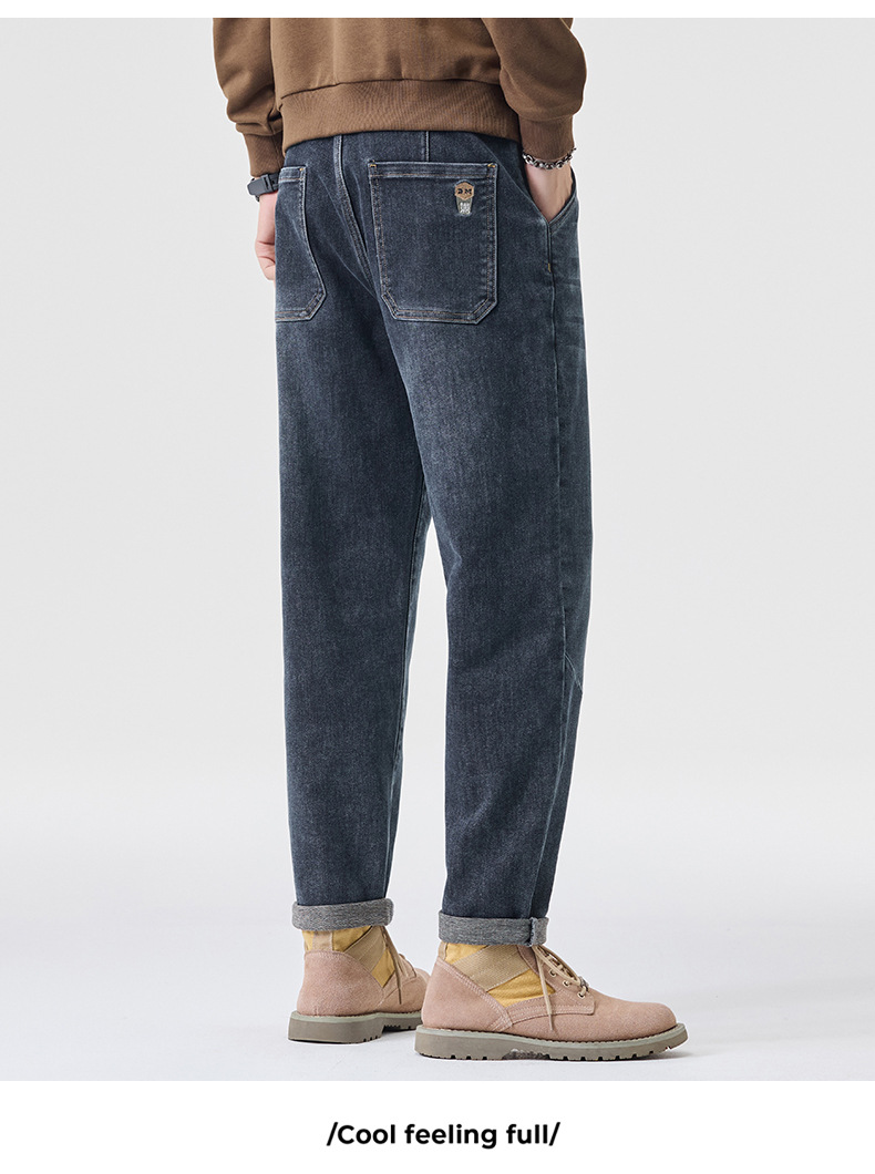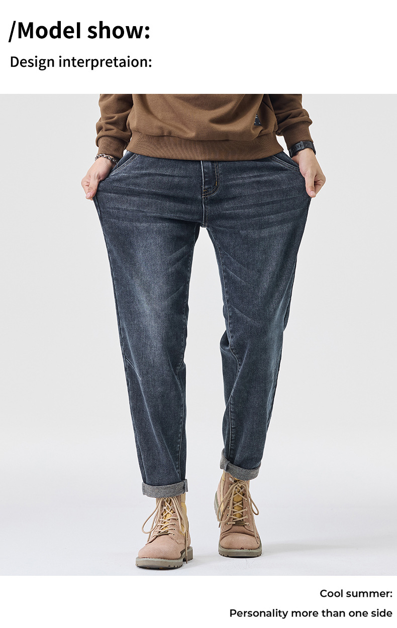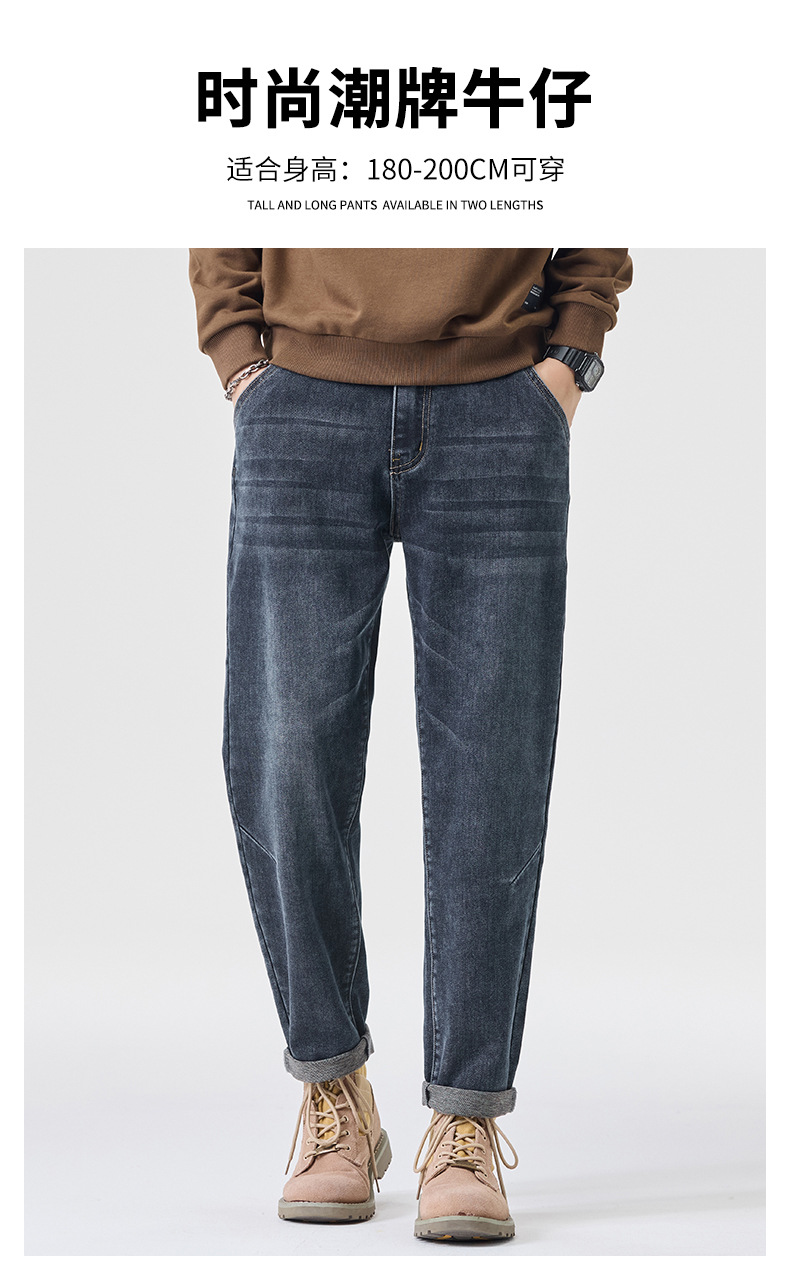 【DQ】大依优型大码男士牛仔裤300斤小脚裤秋冬新款锥形牛仔裤男宽松复古弹力小脚长裤时尚潮流耐磨水洗棉感