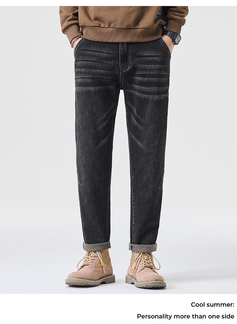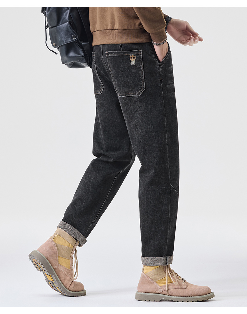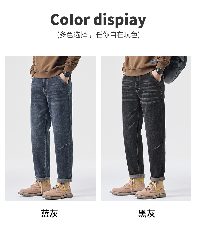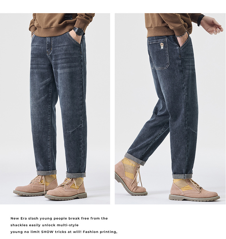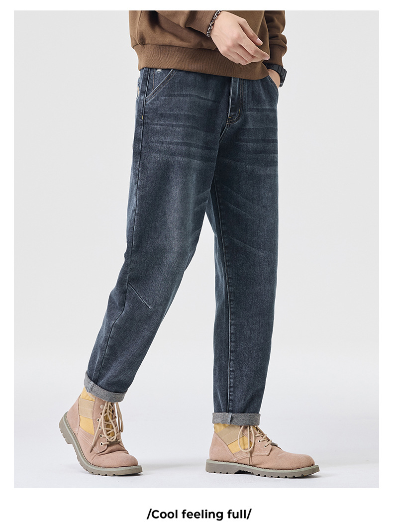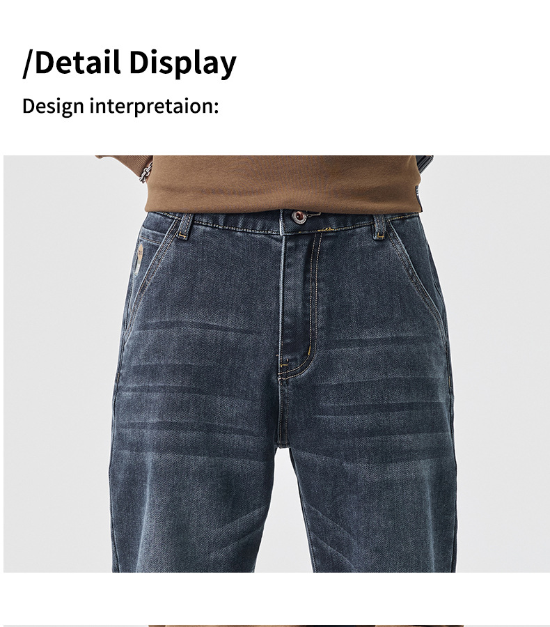 【DQ】大依优型大码男士牛仔裤300斤小脚裤秋冬新款锥形牛仔裤男宽松复古弹力小脚长裤时尚潮流耐磨水洗棉感