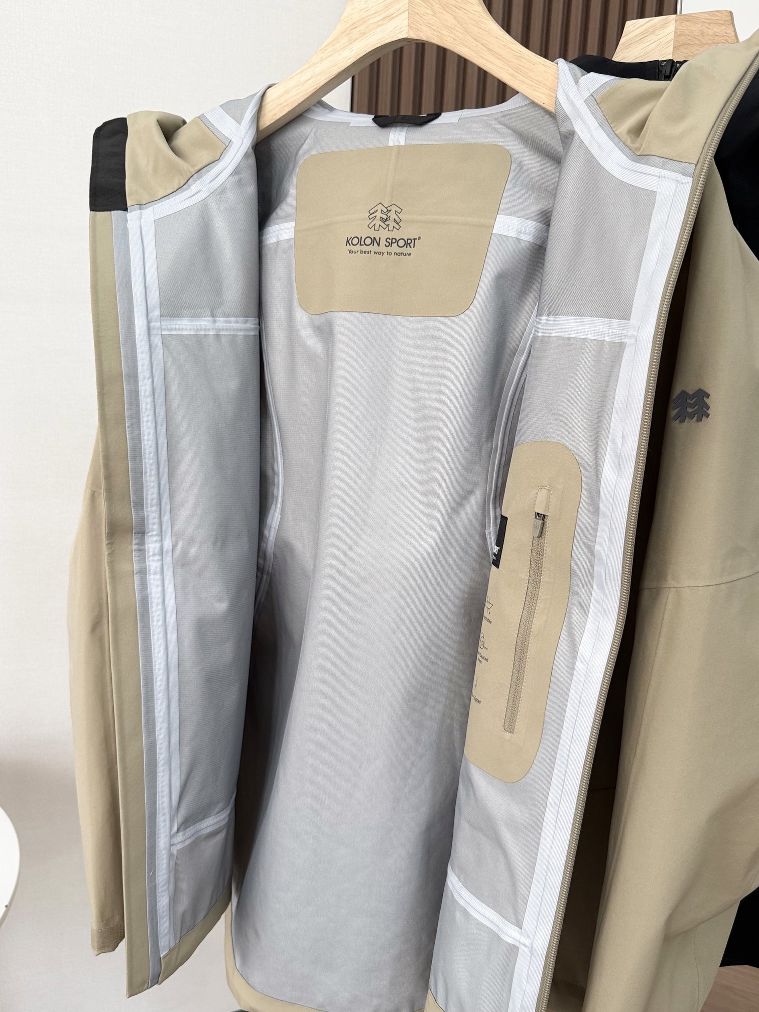 360 货号305229360 37 KOLON SPORPT防水连帽冲锋衣。超有辨识度的运动设计风格,让您的衣品不在大众化,都市休闲通勤时也能完美演绎。这件外套设计还是能让你一眼区分,不是以前那种单一的版型,采取了冲锋衣的设计,上身的感觉更利落,但是又有百搭穿着,HH的航海设计理念,高领的防护做的很到位,而且衣服上的口袋,可以装东西,出行手机充电宝钥匙一次装走,包都不用背了,户外爱好者绝对不容错过,运动功能性是一定要有的,这件夹克外套下摆调节➕抽绳设计外出运动的时候很方便,隐藏式的风帽和高领防护,使各种天气都能出行无忧,做工精致,走线严谨,尺码准确,面料柔软,LOGO都是立体胶印。完松设计品得稍微有点松垮,不过穿起来舒适度很高。颜色 浅色 黑色
