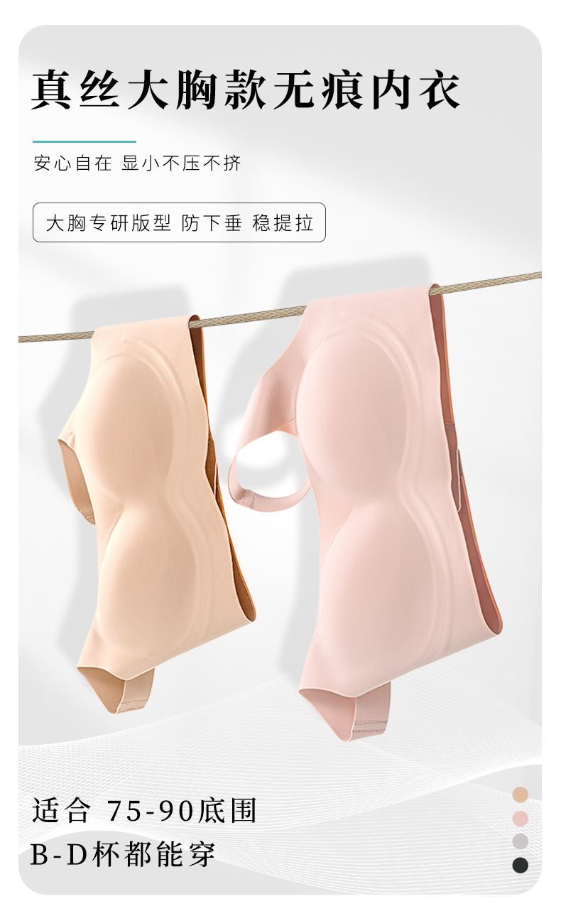 丁摩真丝大胸薄款无痕内衣 桑蚕丝一片式软支撑收副乳文胸AL257