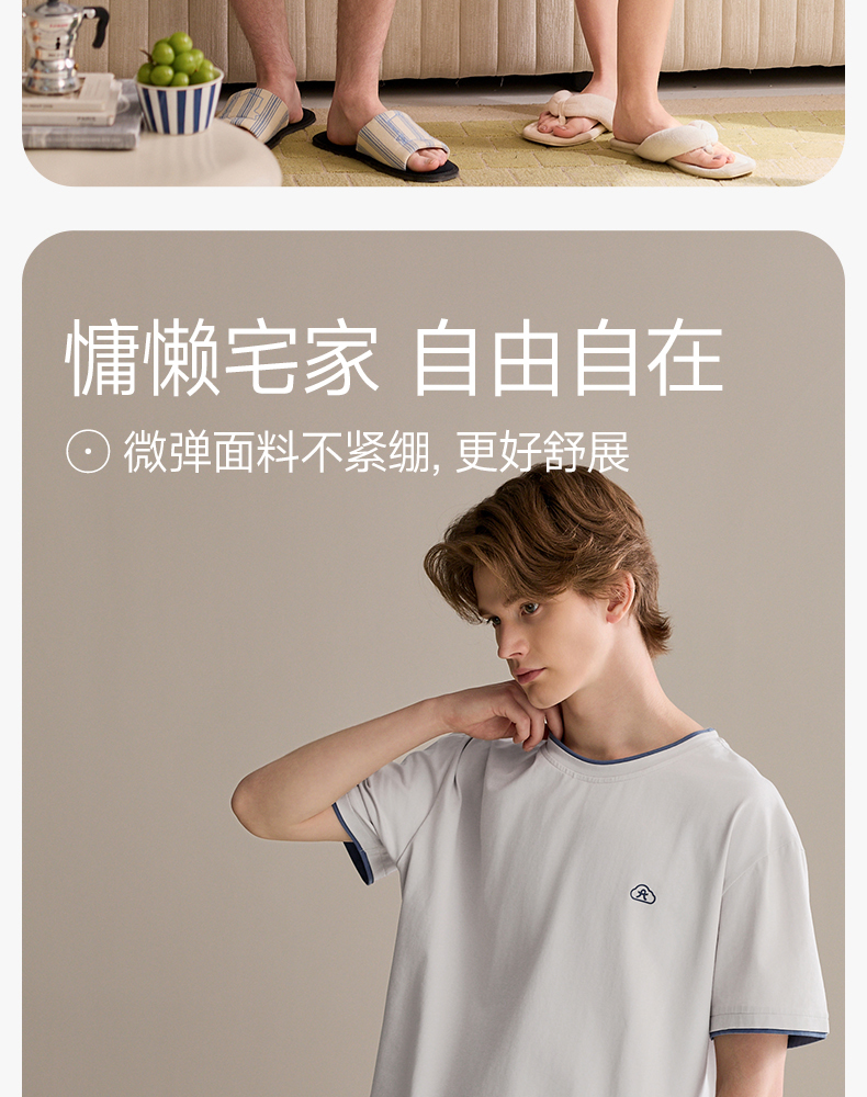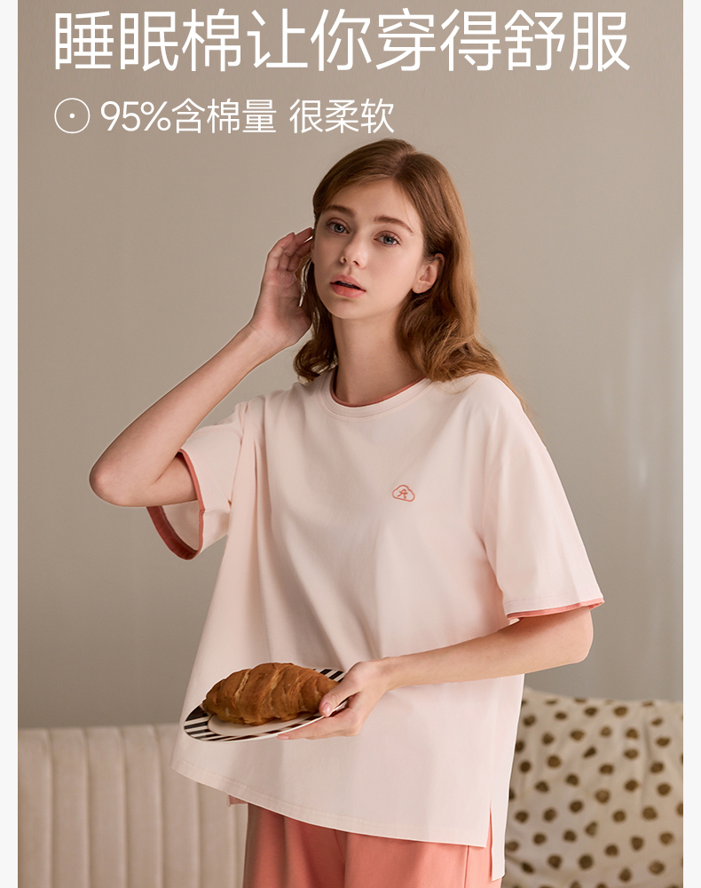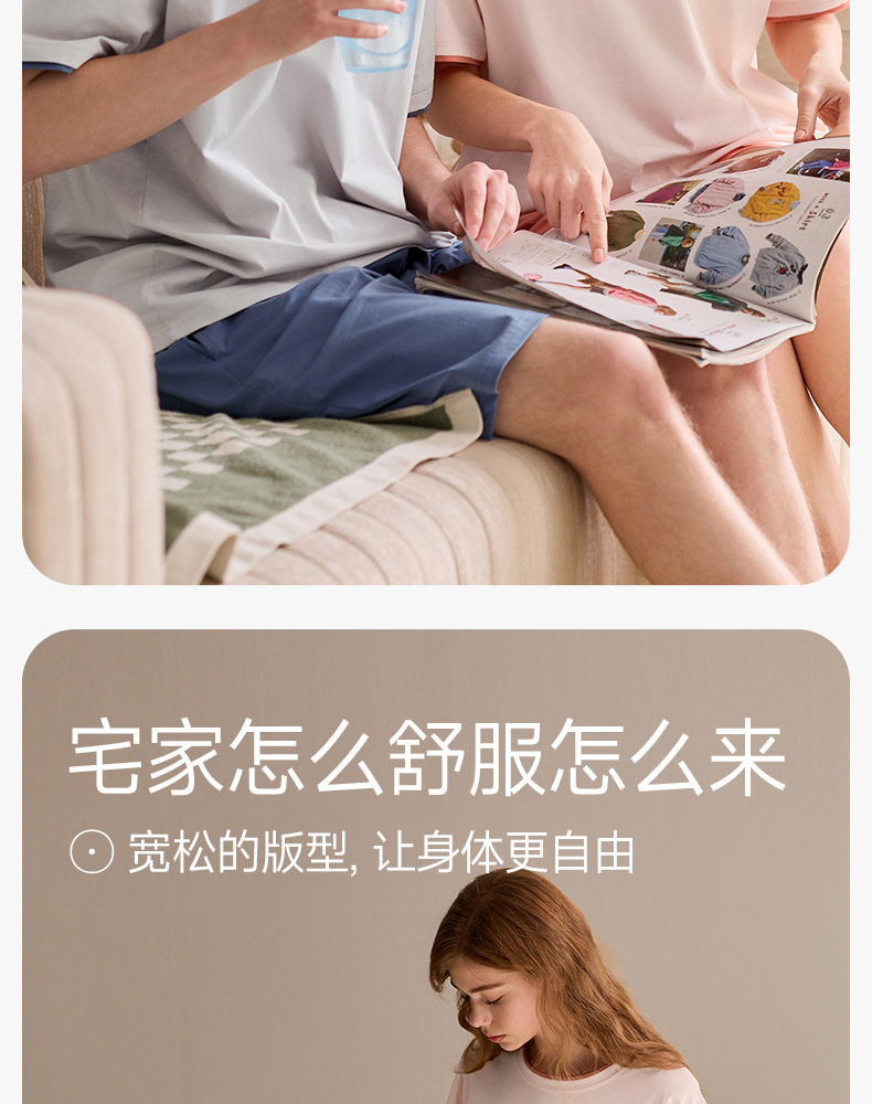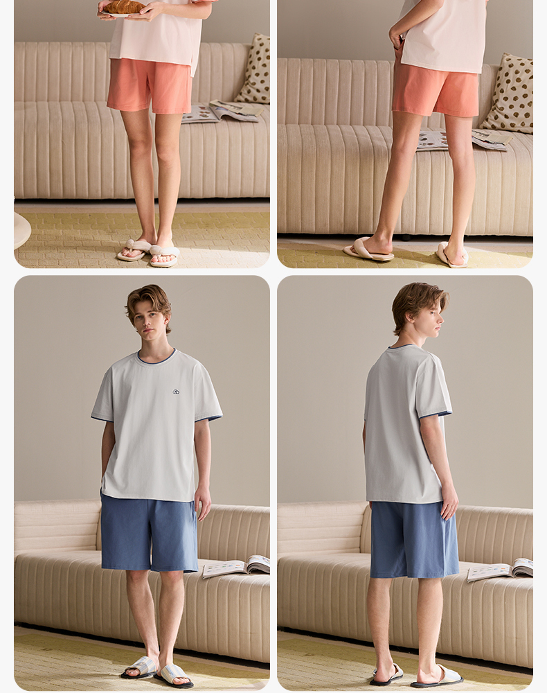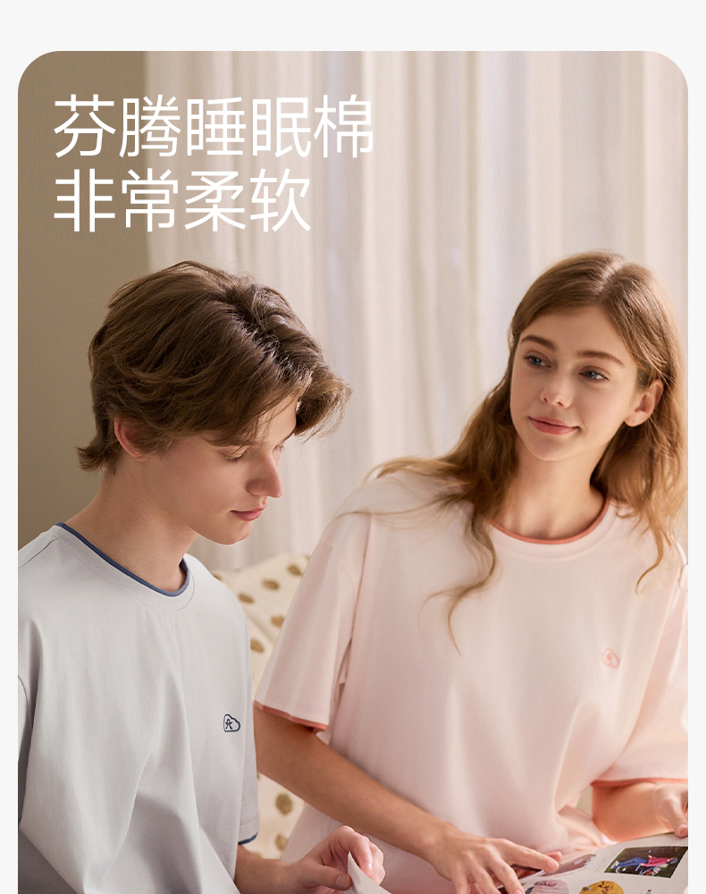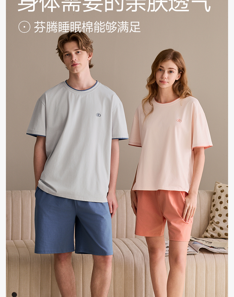 芬腾情侣睡衣夏季纯棉短袖短裤套装男女士薄款透气外穿大码家居服