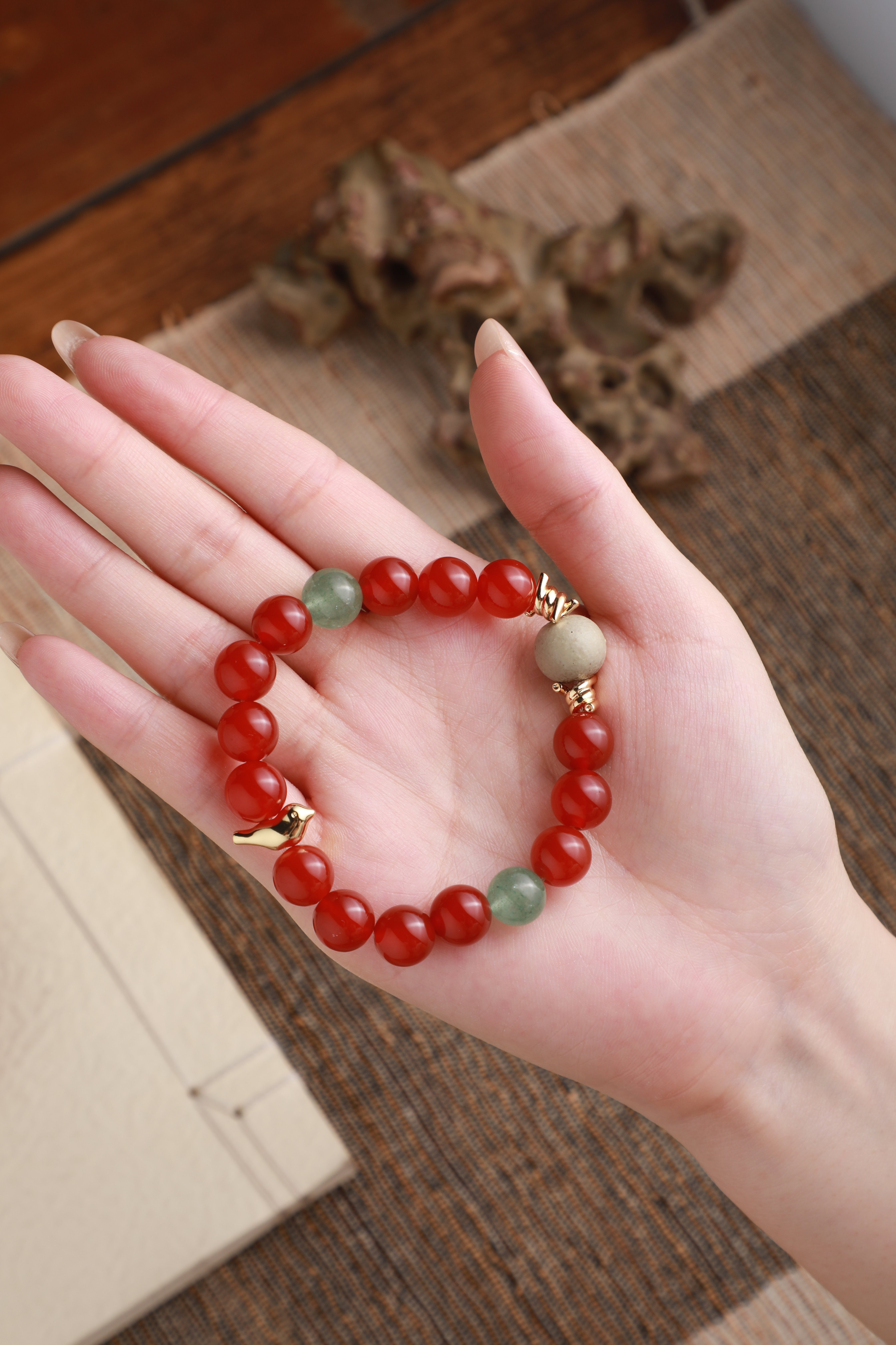 鸟 / 弹簧扣:香灰烧念珠*12mm+红玛瑙10mm