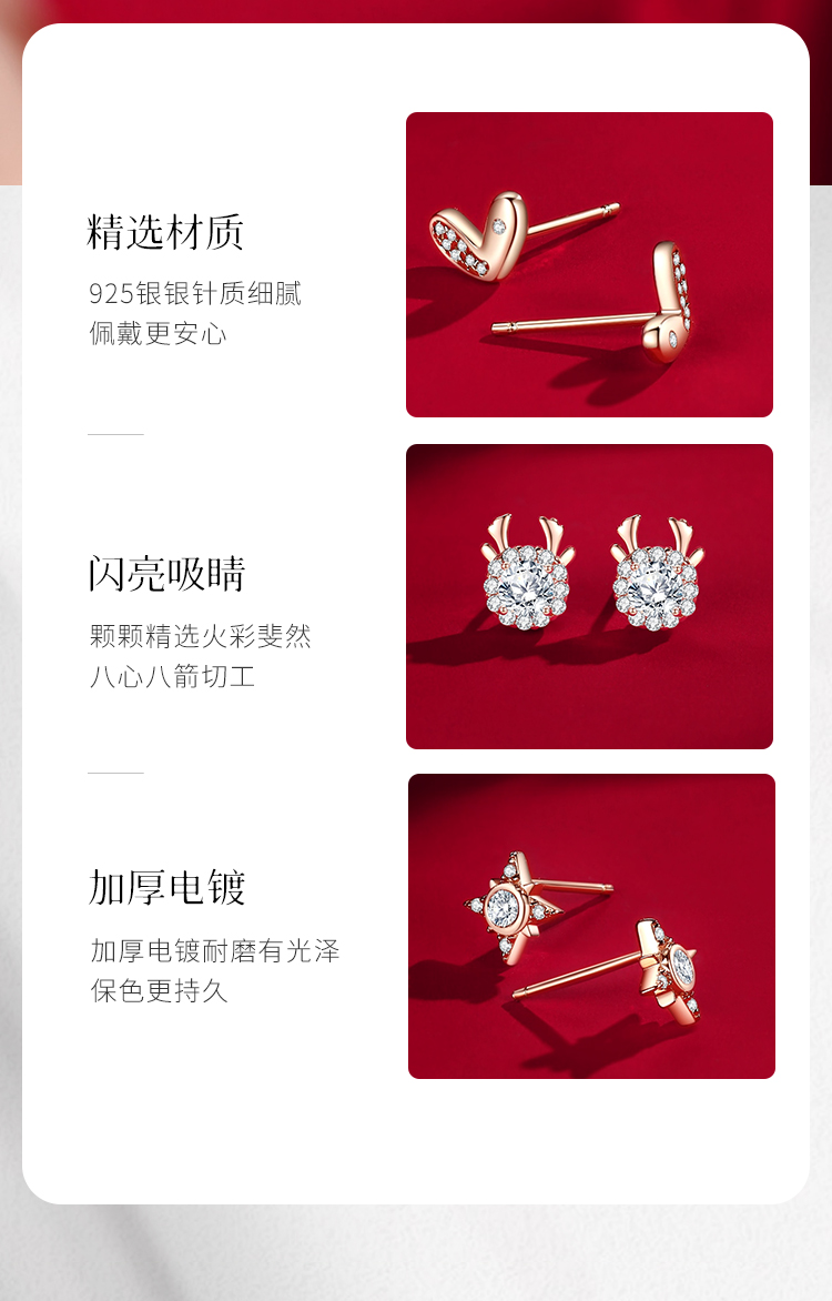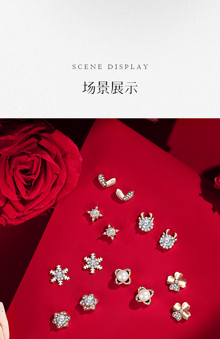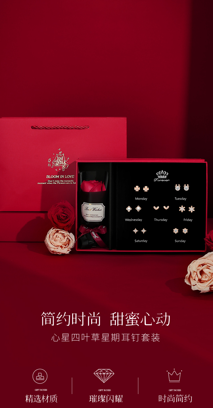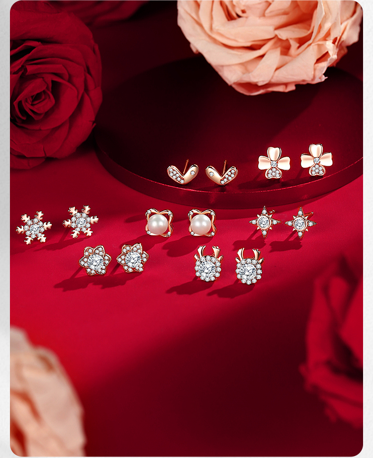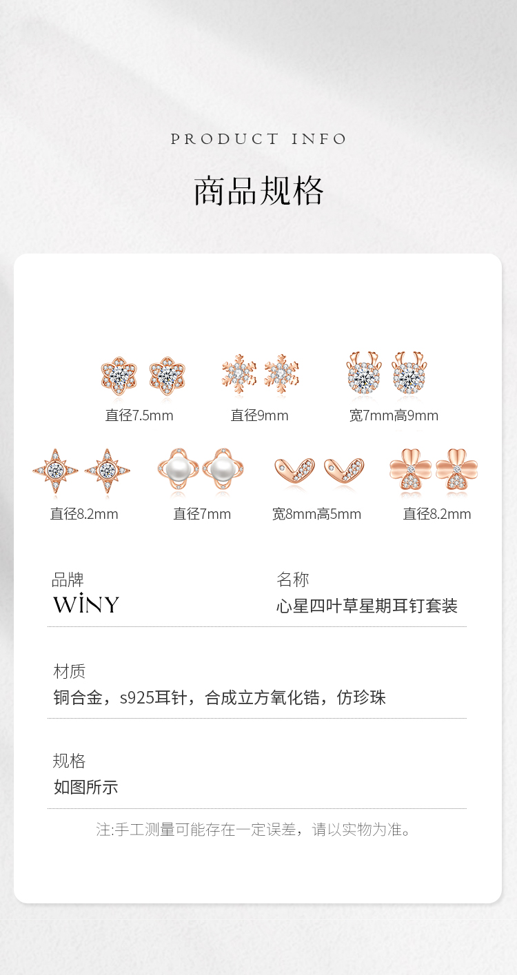 Winy 铜合金s925耳针 心星四叶草星期耳钉套装送女友闺蜜节日生日礼物