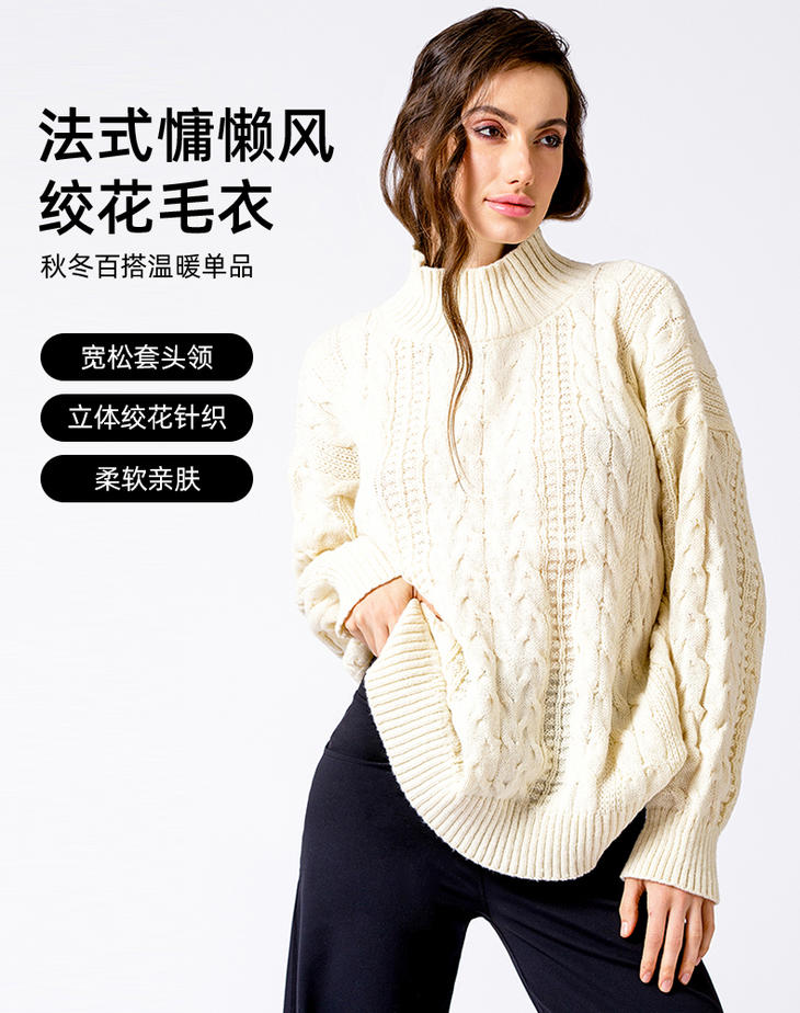 AUMNIE 丨澳弥尼复古领宽松针织绞花毛衣(售后说明,只支持收货7天内退换货)