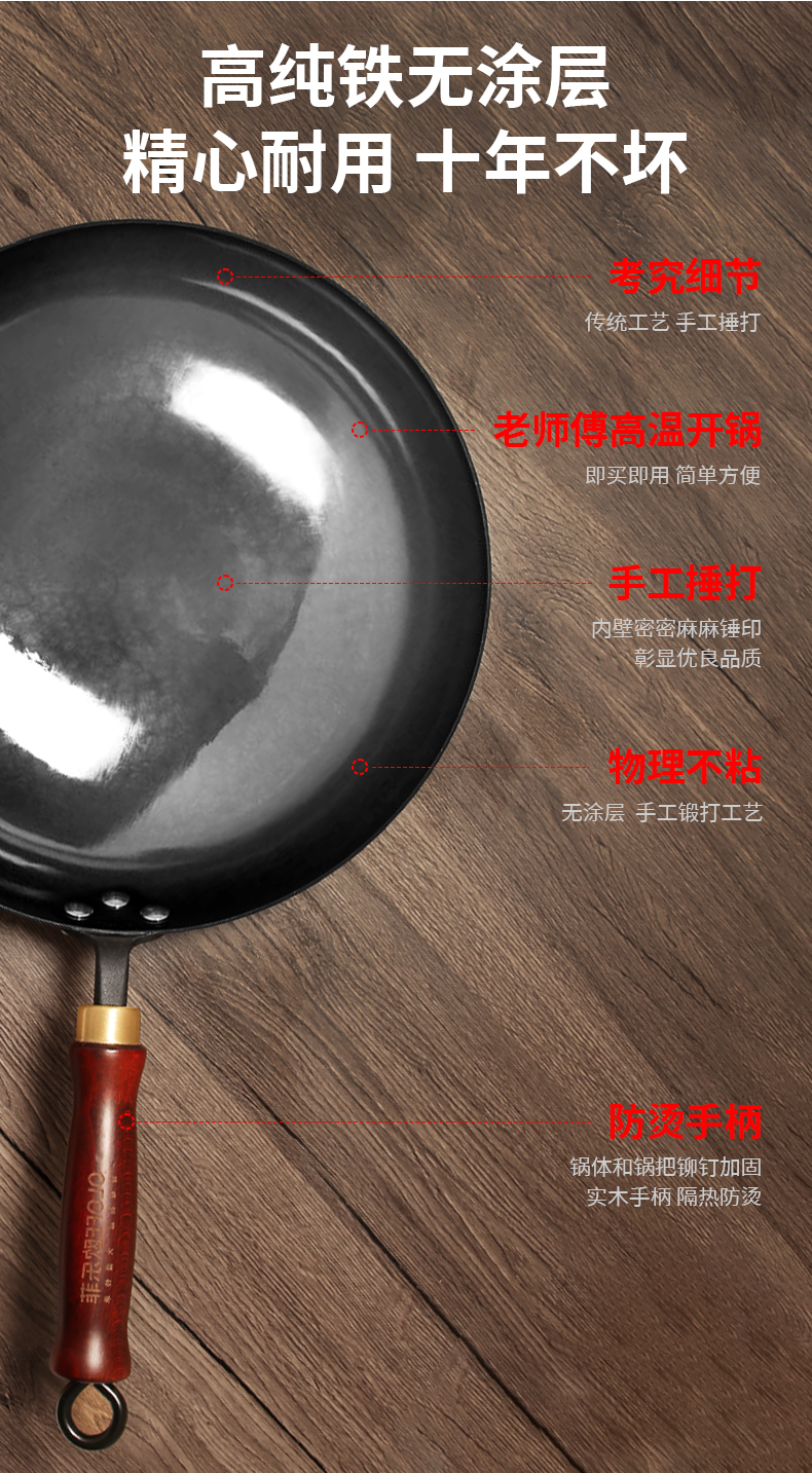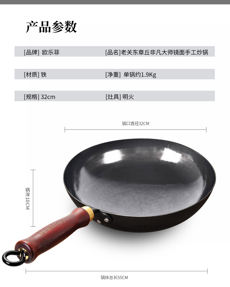 【欧乐菲(OLOFE)】欧乐菲老关东章丘非凡大师镜面手工炒锅OLO32F
