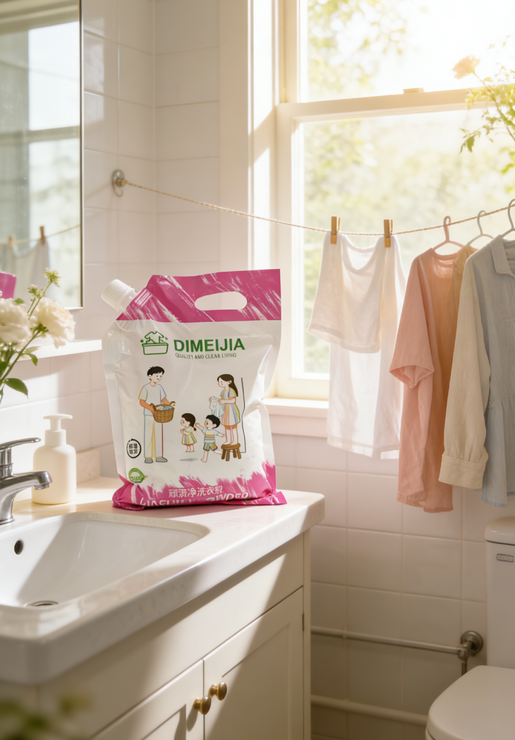 带嘴自立袋!防潮不结块方便✨ 🔶每袋500g,自带封口嘴 🔶一次倒一点,不浪费、不结块 🔶防潮防尘,放多久都干爽 🔶用量好控制,手洗机洗都合适 🔶居家囤货、租房、宿舍都实用 不管是阳台、卫生间、储物柜 随便放,干净又省心🧺