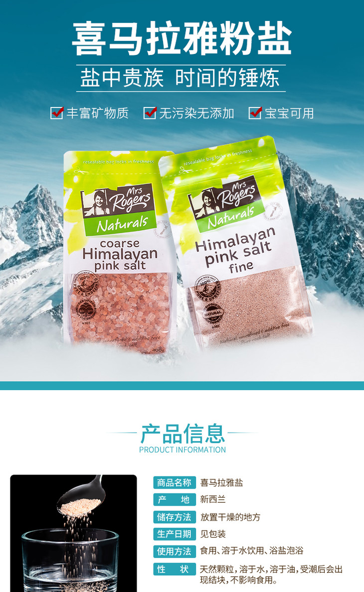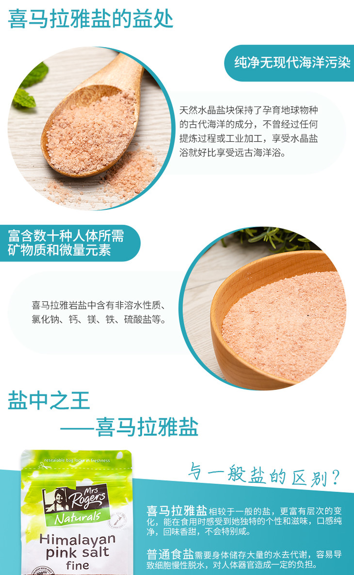 MrsRogers喜马拉雅玫瑰粉盐天然矿物岩盐浴盐孕妇婴儿可用