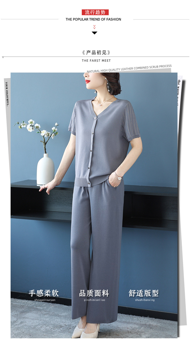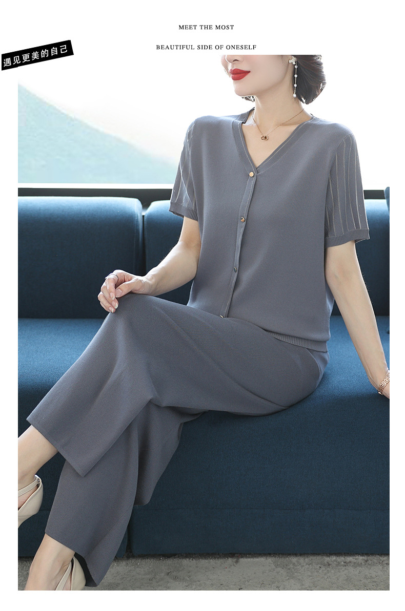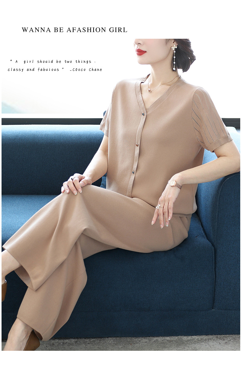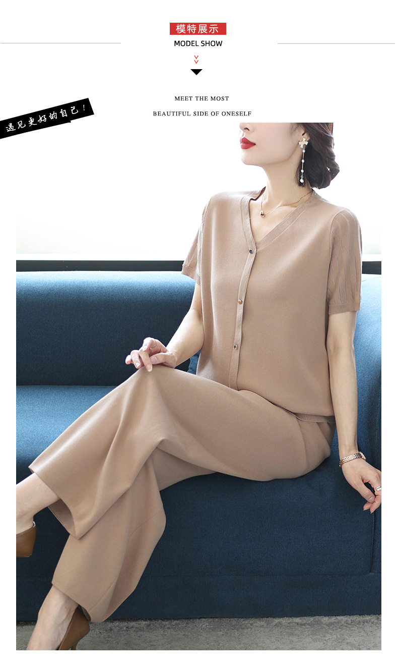 CC 10-2272时尚大码休闲运动两件套阔腿裤冰丝针织V领套装