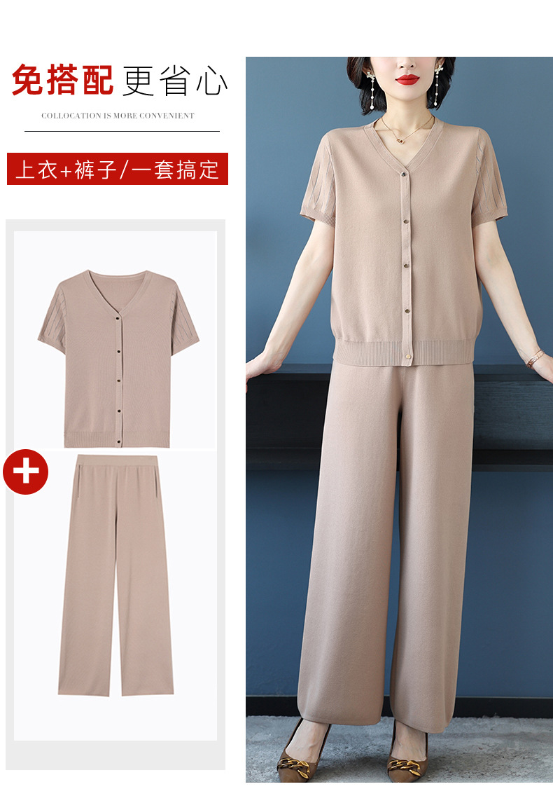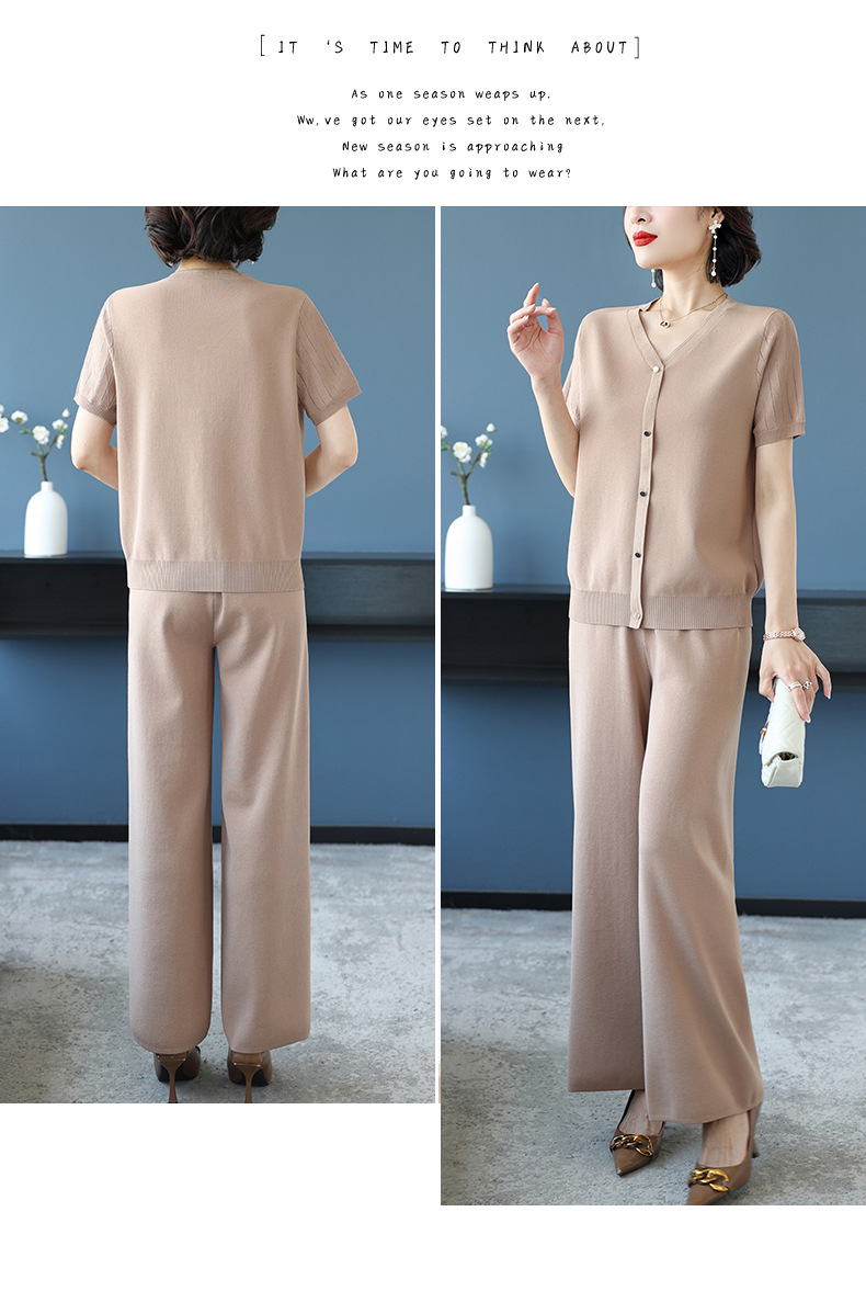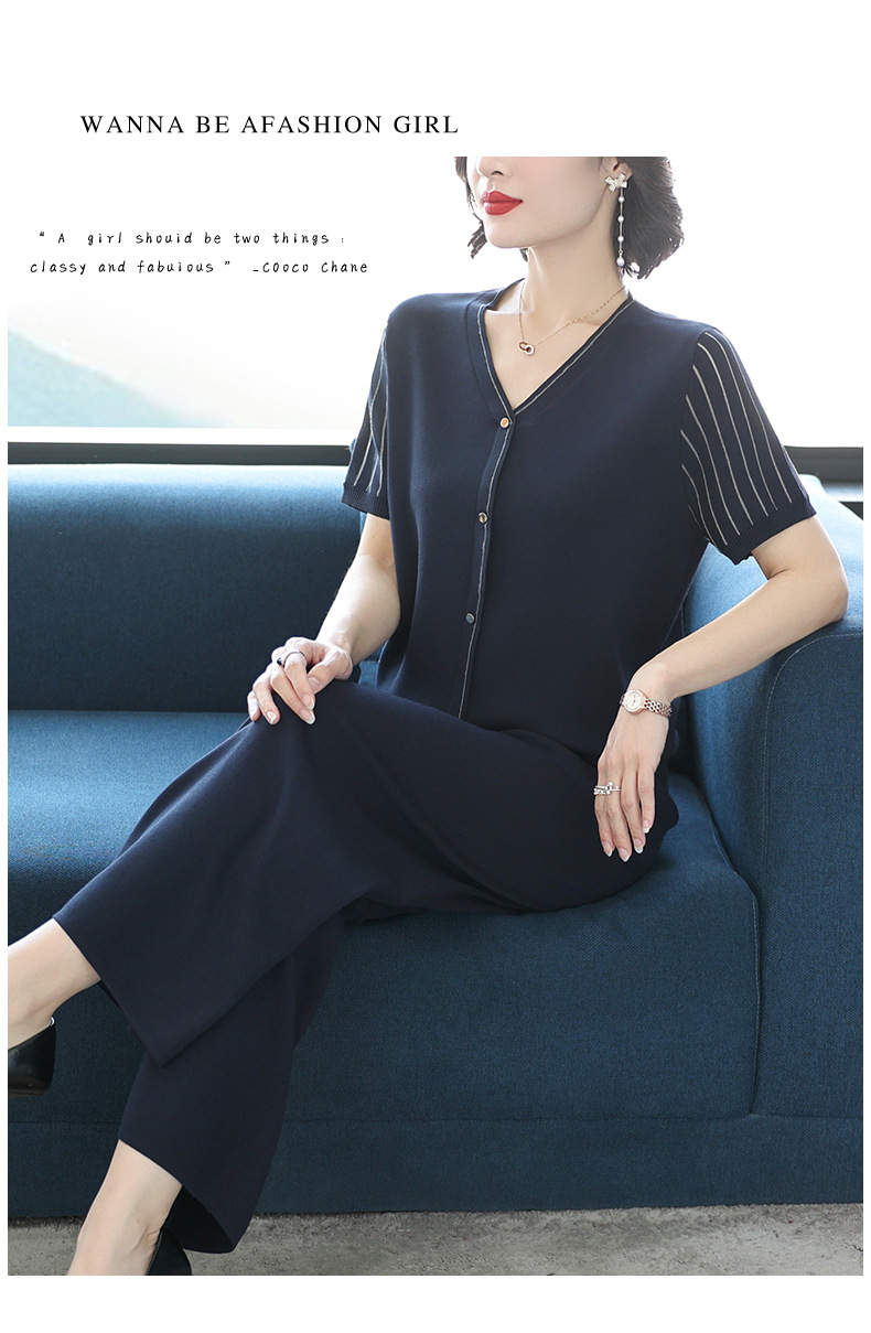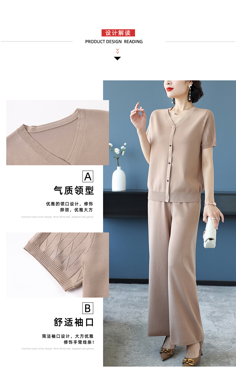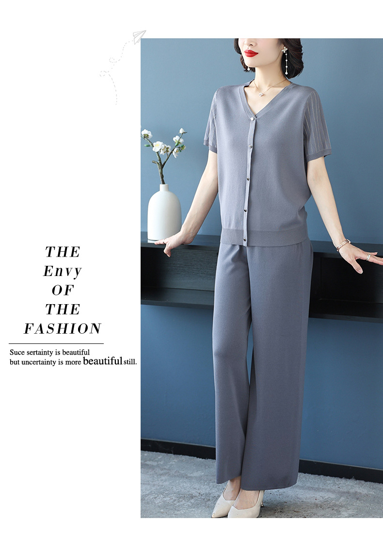 CC 10-2272时尚大码休闲运动两件套阔腿裤冰丝针织V领套装