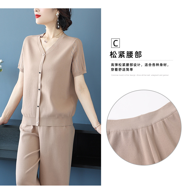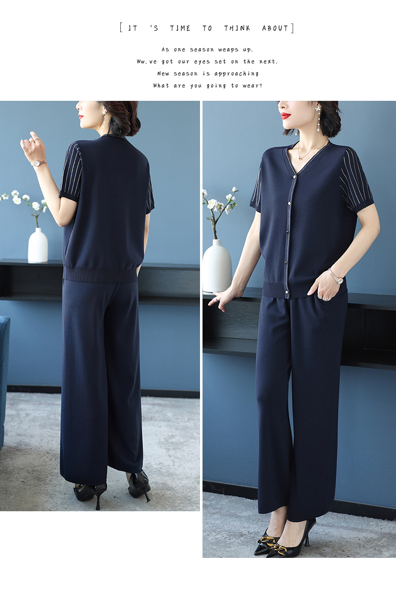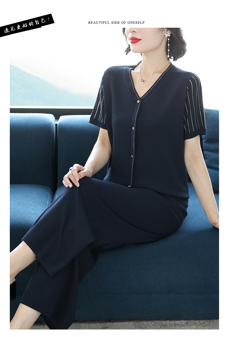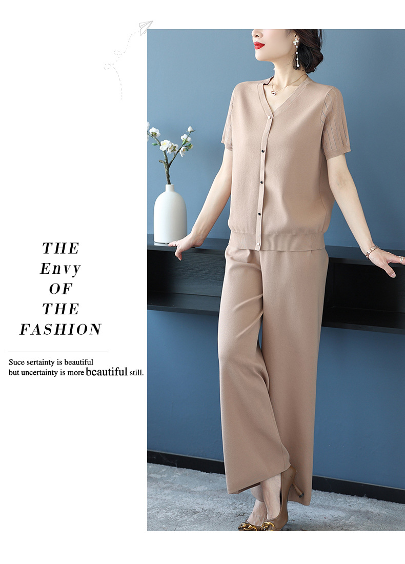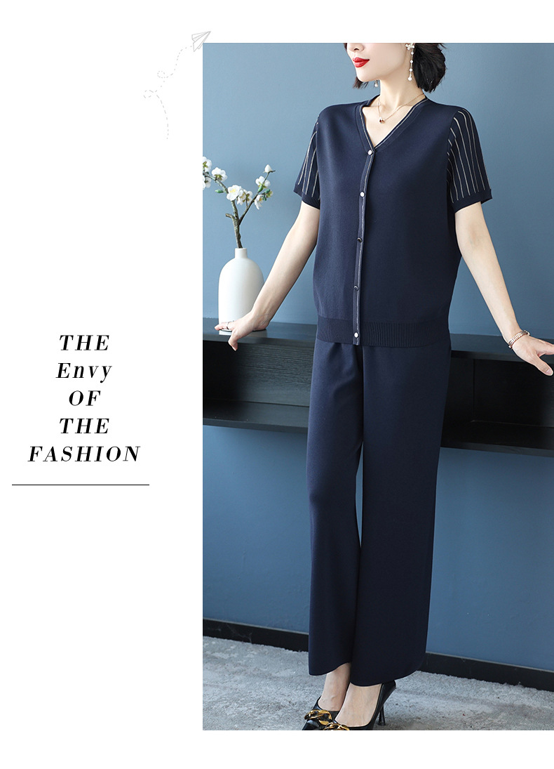 CC 10-2272时尚大码休闲运动两件套阔腿裤冰丝针织V领套装