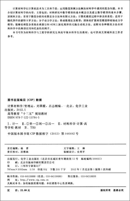 书名:高等学校"十二五"规划教材:计算材料学