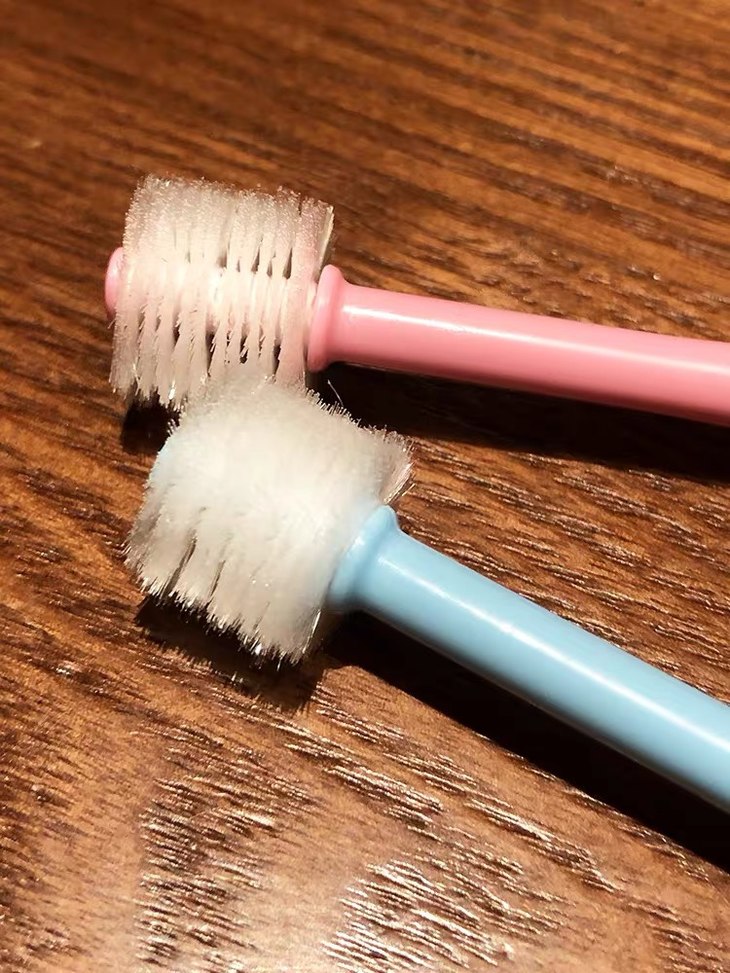 STB 360度幼儿牙刷(3岁以上)👍宝宝牙刷就要“一手掌握”,360°旋转刷毛让宝宝更能得心应手,且清洁力度更强💯,轻松快速清除牙垢。升级尼龙刷毛,高达21000根,比起传统牙刷,360°牙刷刷面更大,刷毛数量更浓密,平均一根牙刷的刷毛是普通牙刷的20-30倍。细软舒适,温和按摩牙龈,十分安全✅,不伤害宝宝口腔。