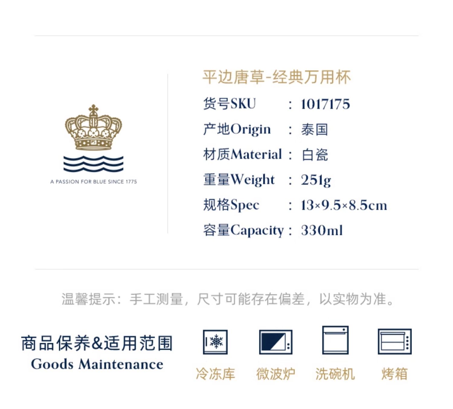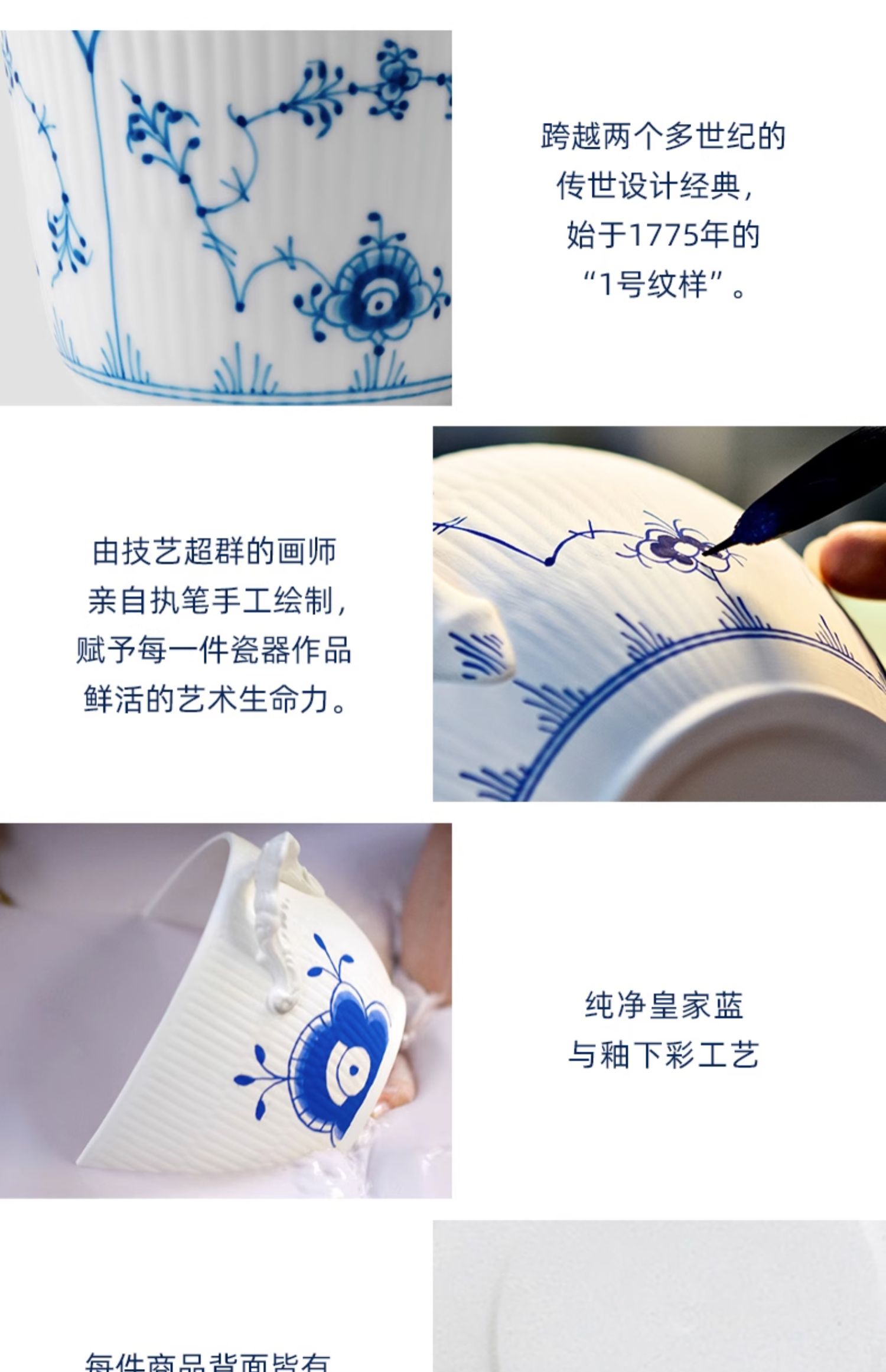 【ROYAL COPENHAGEN】皇家哥本哈根平边手绘水杯子茶杯马克杯 陶瓷杯