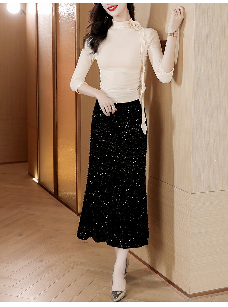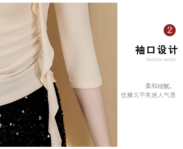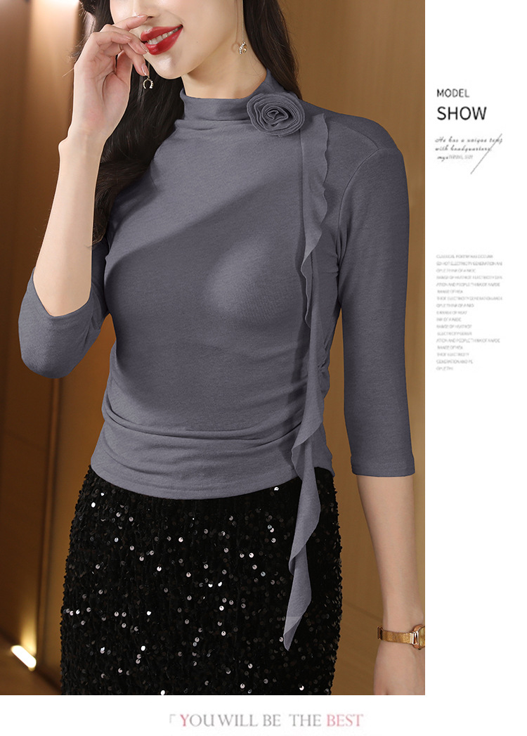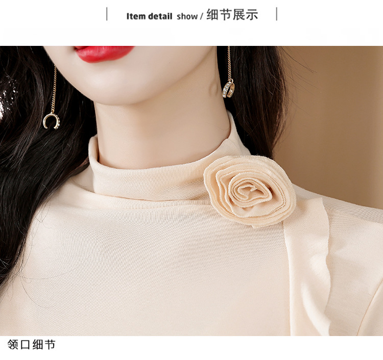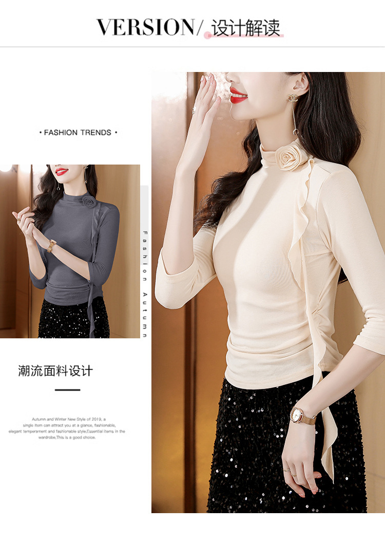 KQLE48M8158 2024早秋新款半高领立领花朵t恤女新款设计感收腰显瘦短款小衫