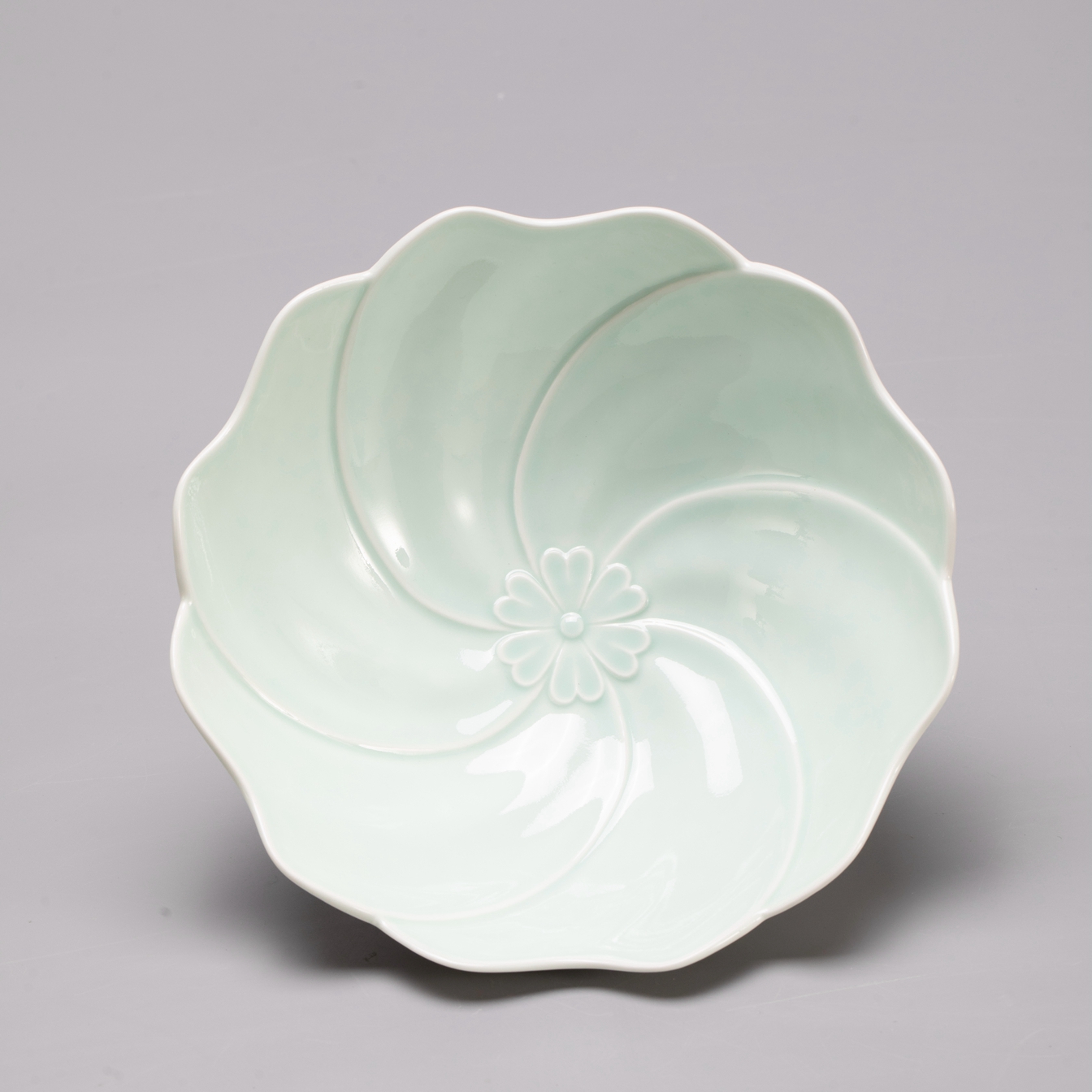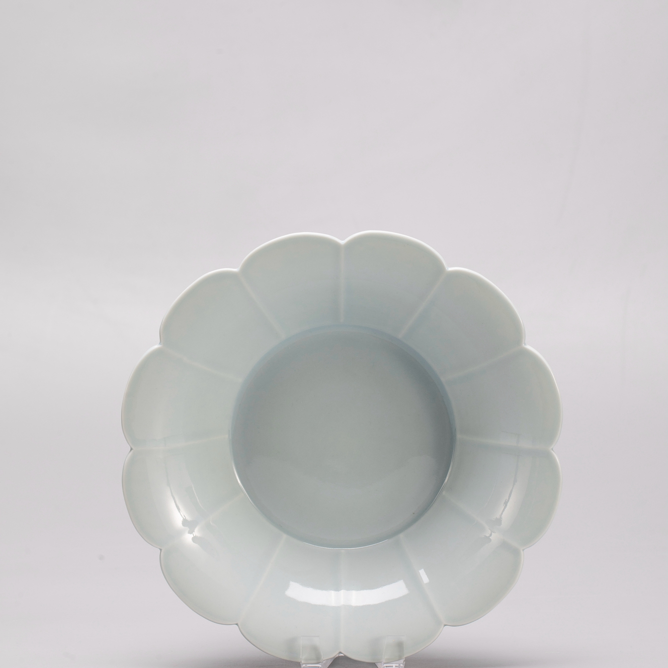 花口菊瓣纹盘 大 天青 23*4.5cm