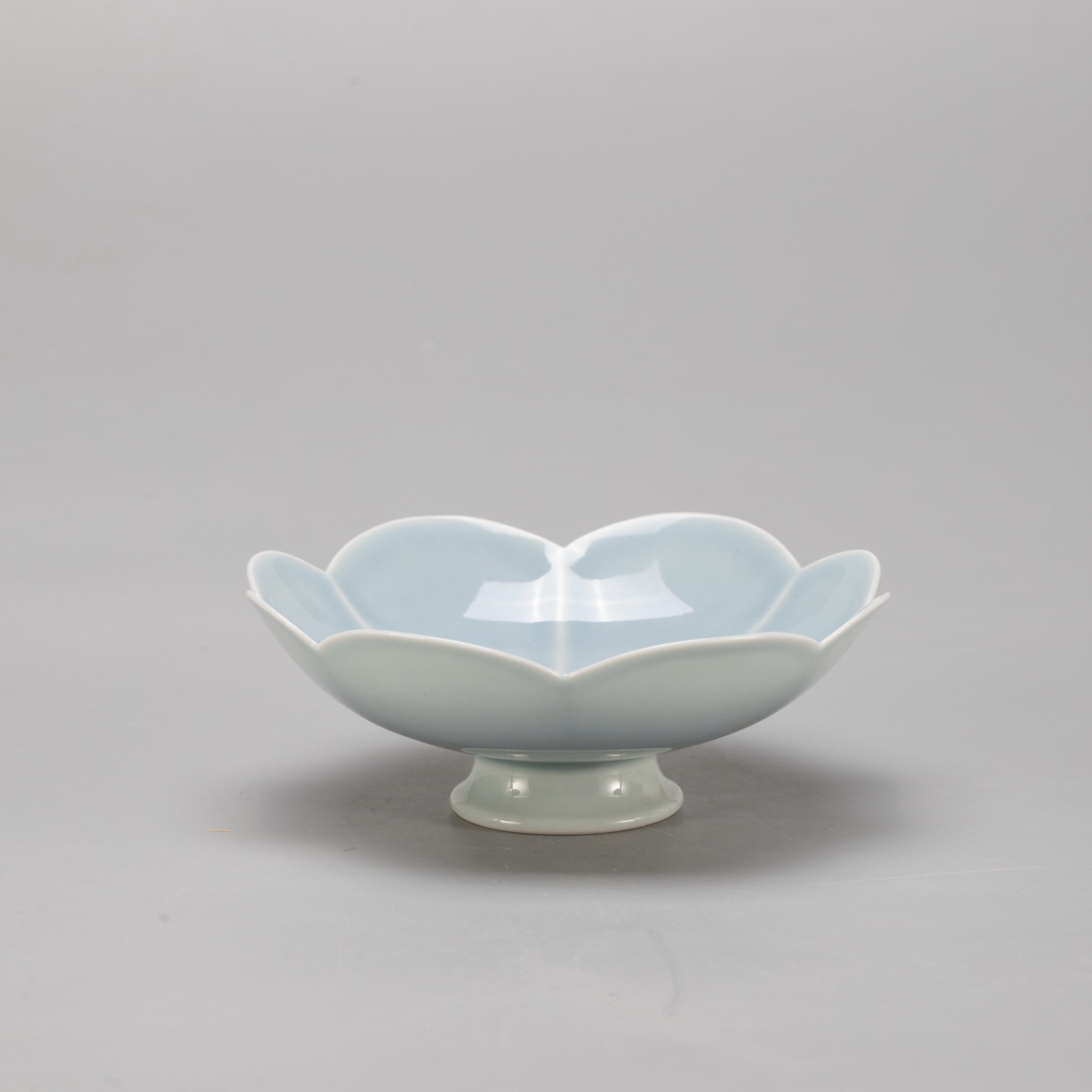 花口菊瓣纹盘 小 天青 16.5*5cm