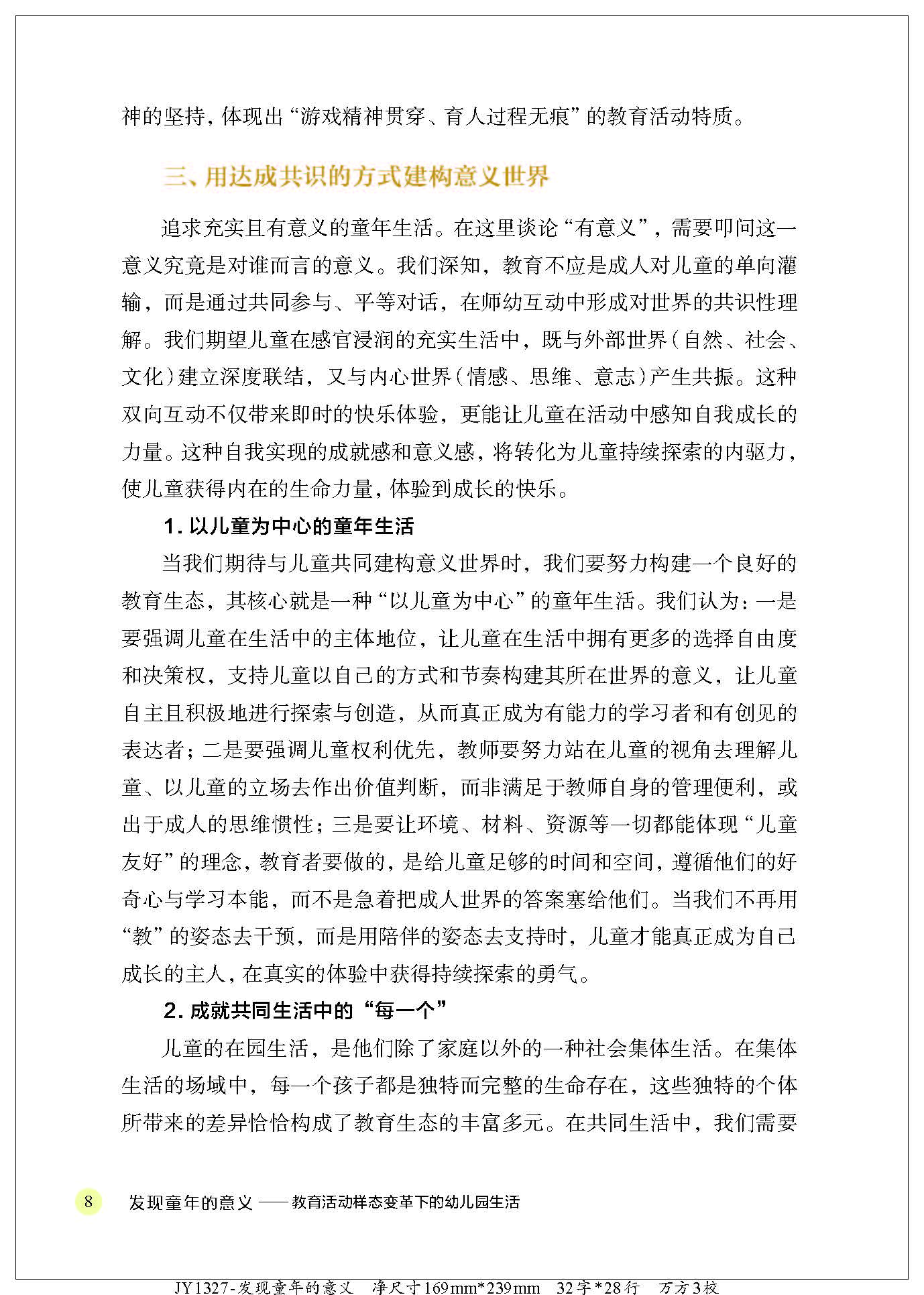 本书兼具理论深度与实践价值,特点鲜明。书中嵌入大量真实教育案例与可落地的实操策略,为将应然的教育理念转化为实然的教育生活提供参考。同时,书中积极探寻“儿童发起、教师回应性支持的活动”,破解“儿童自主游戏”与“教师主导教学”的断层难题。