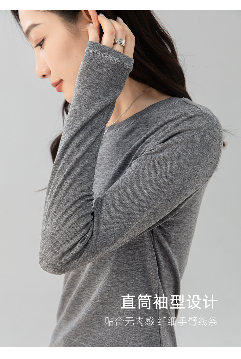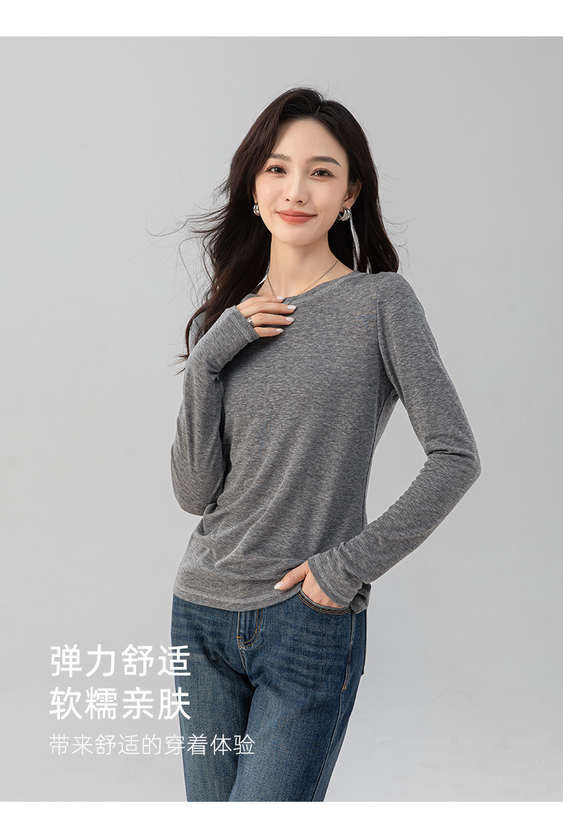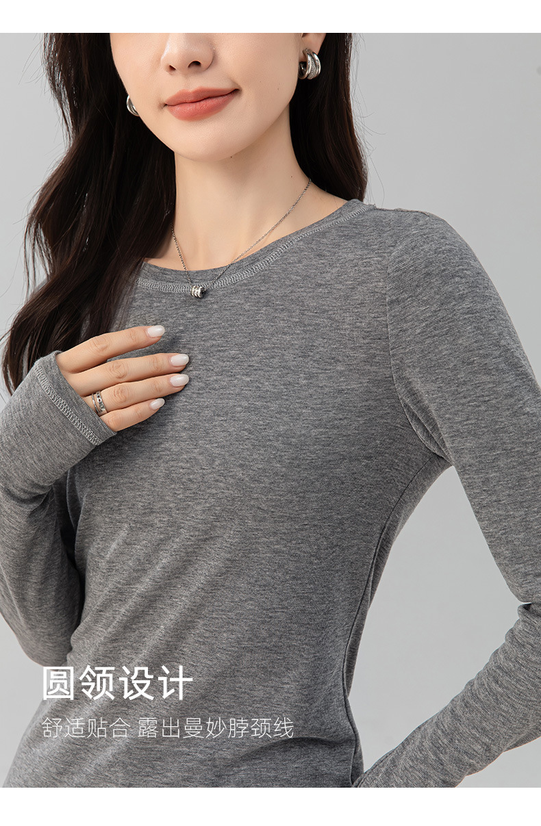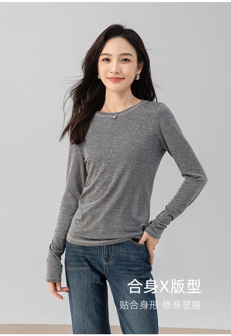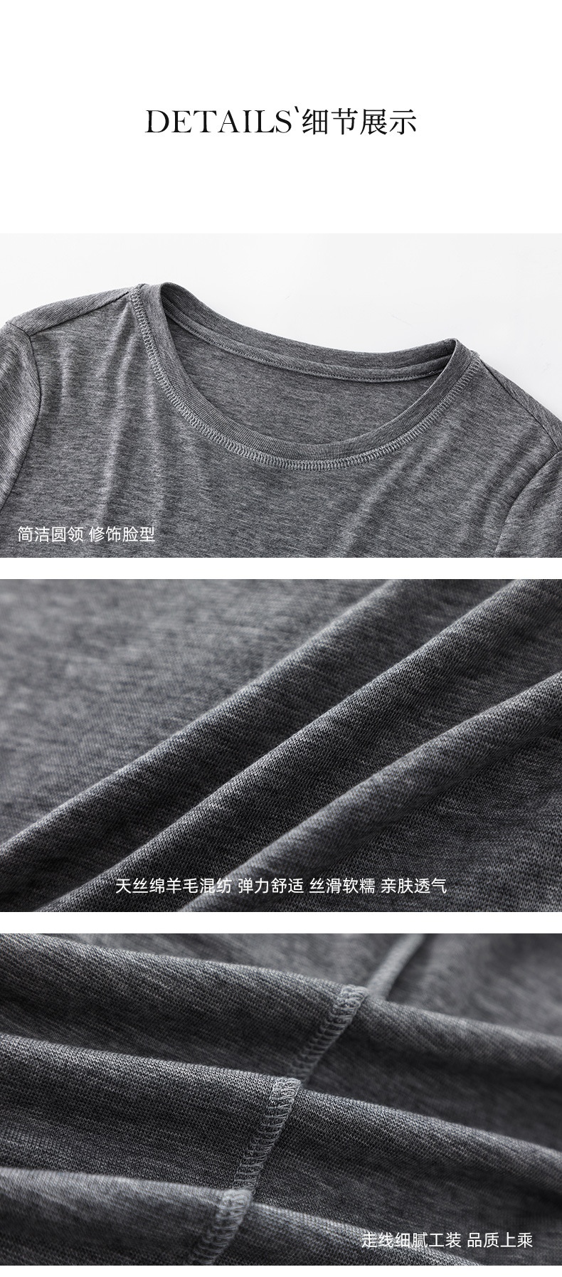 「高货xg」全新升级【铂金会员174/天猫229/差价55】(21856)洛诗琳复古圆领T恤衫2025秋季修身显瘦天丝羊毛打底上衣