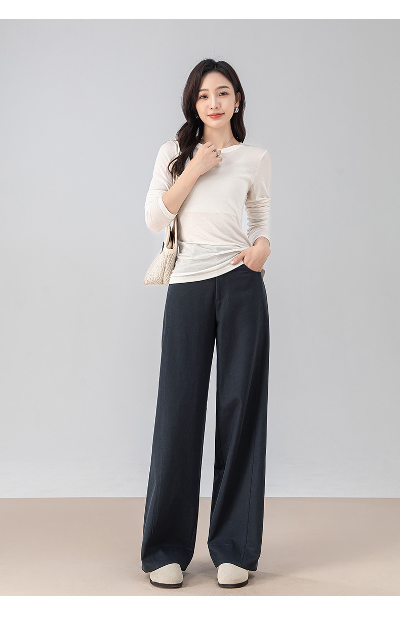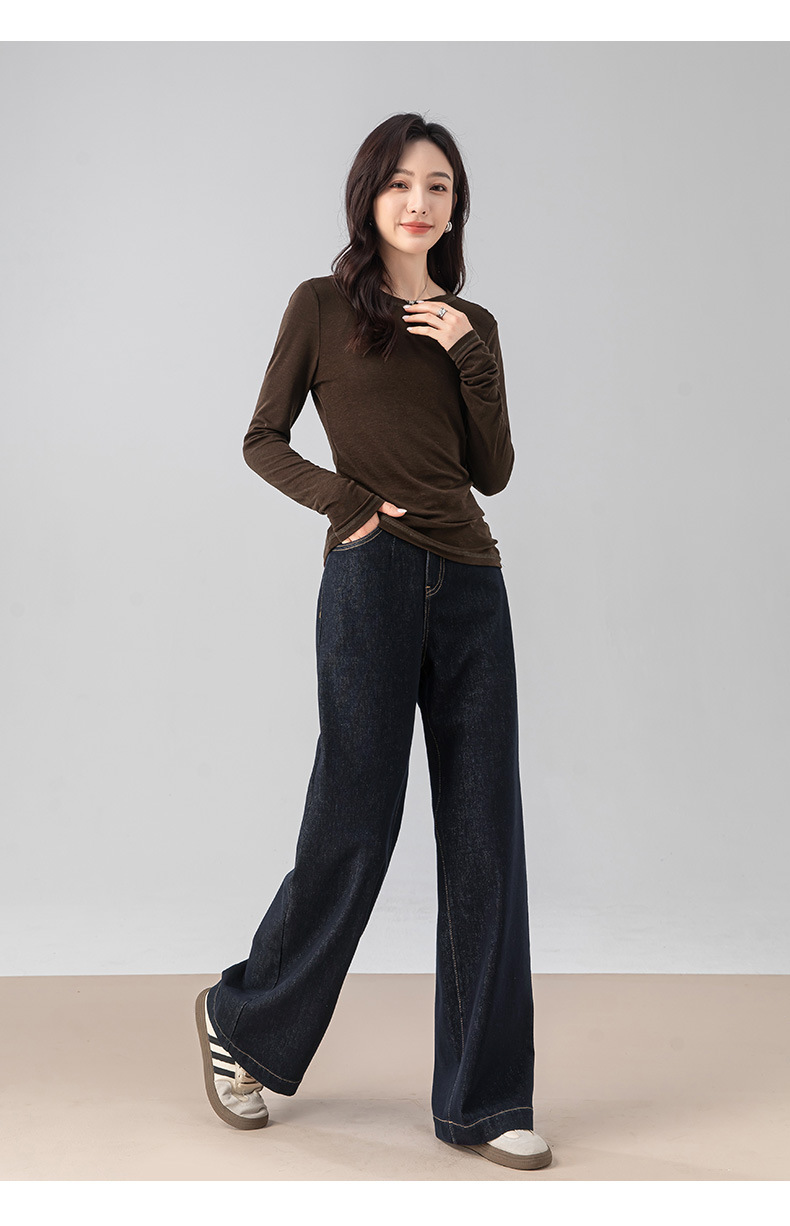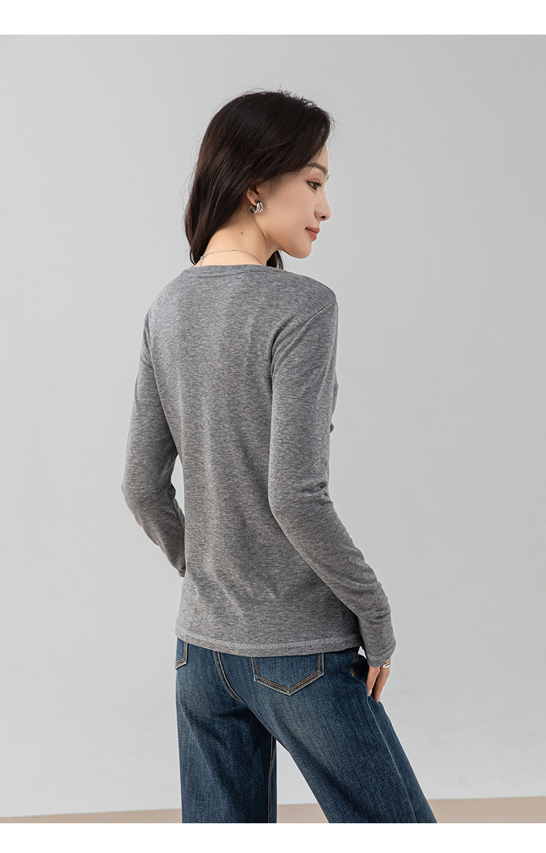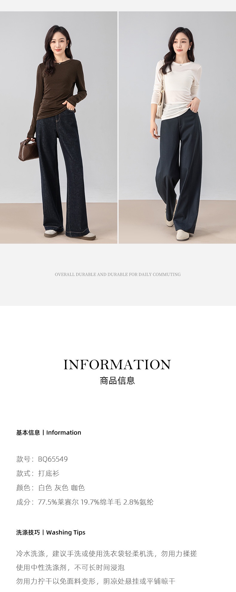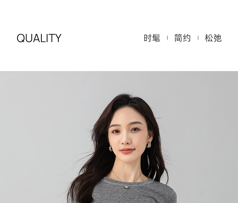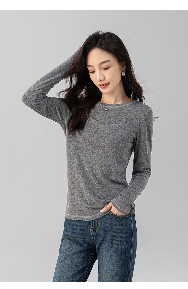「高货xg」全新升级【铂金会员174/天猫229/差价55】(21856)洛诗琳复古圆领T恤衫2025秋季修身显瘦天丝羊毛打底上衣