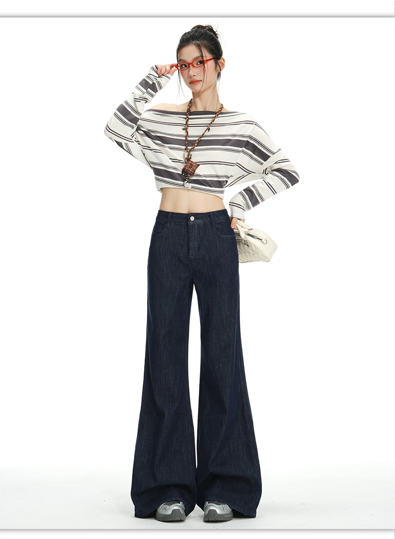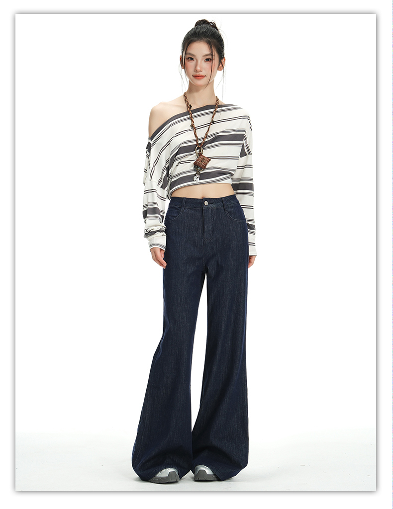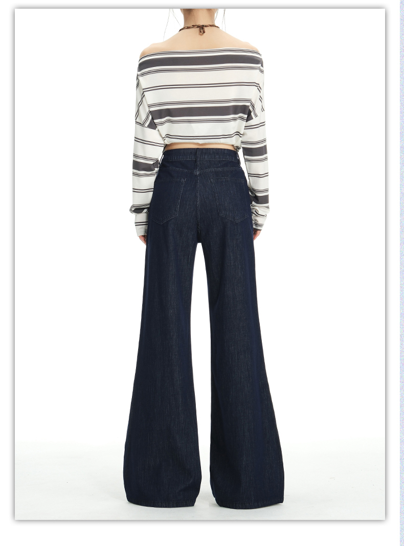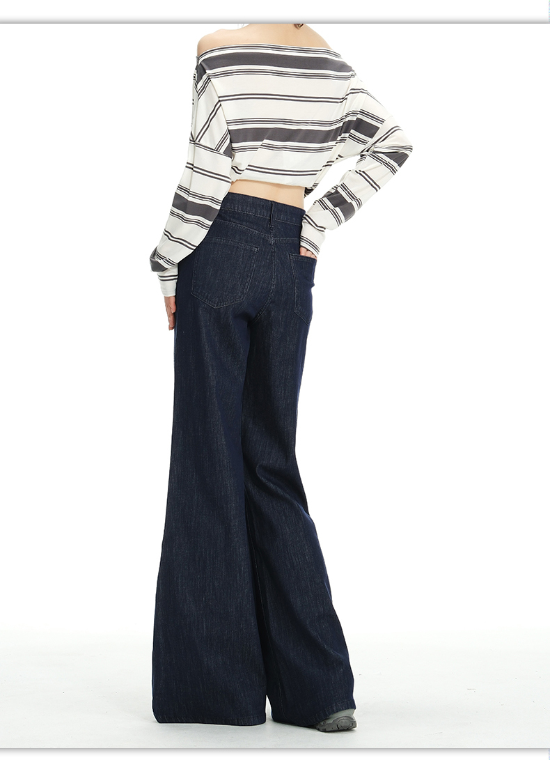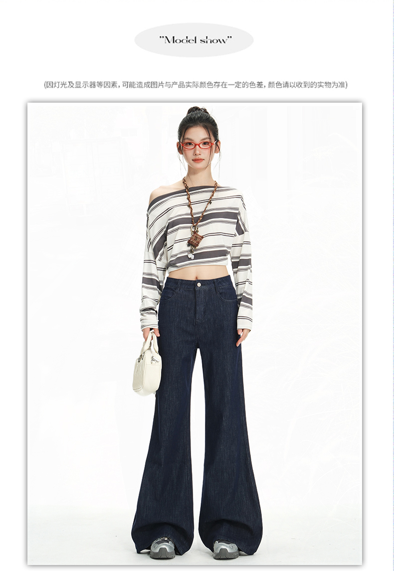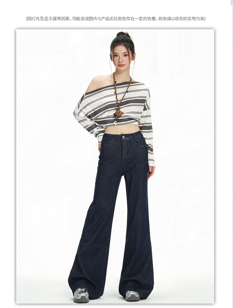 罗蒙春秋款牛仔裤女士普洗蓝微喇设计宽松垂感直筒百搭显瘦拖地长裤