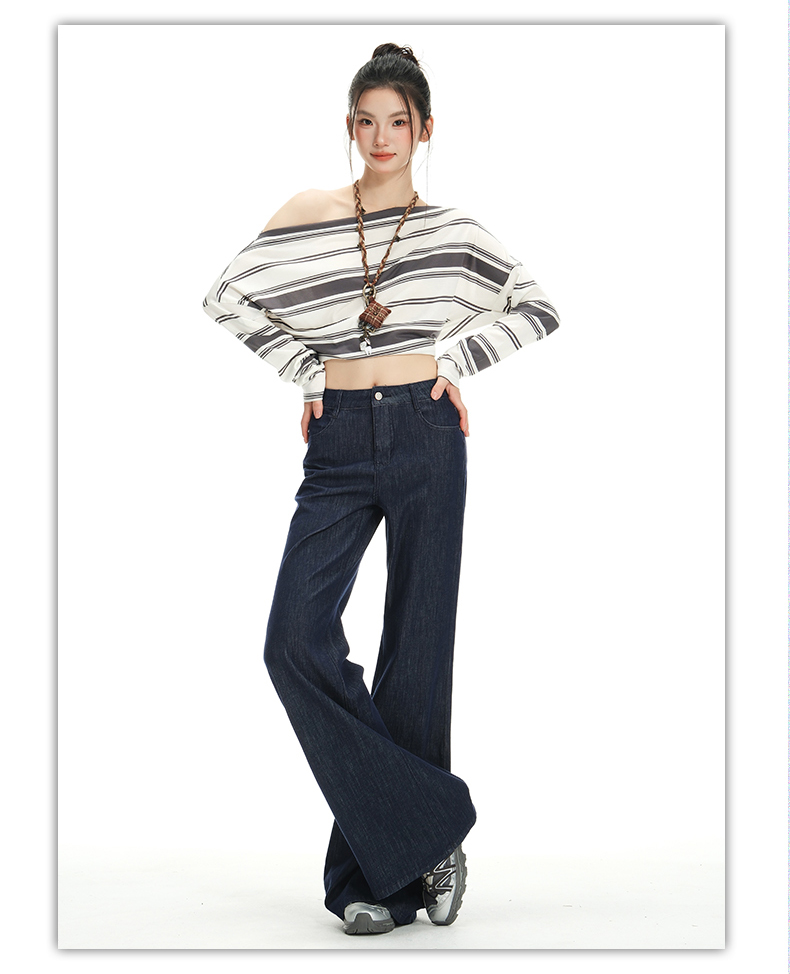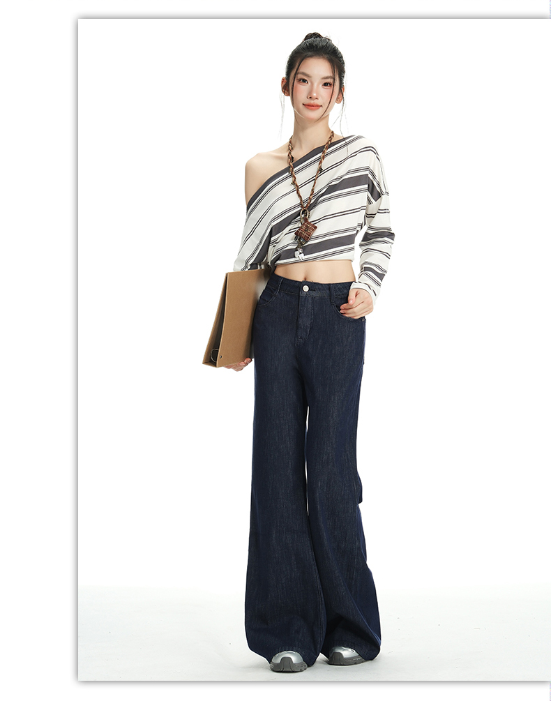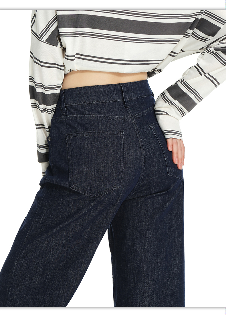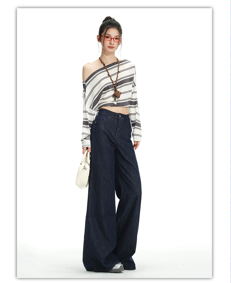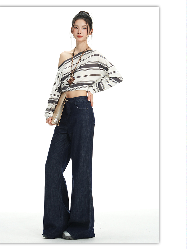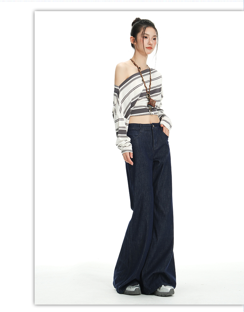 罗蒙春秋款牛仔裤女士普洗蓝微喇设计宽松垂感直筒百搭显瘦拖地长裤