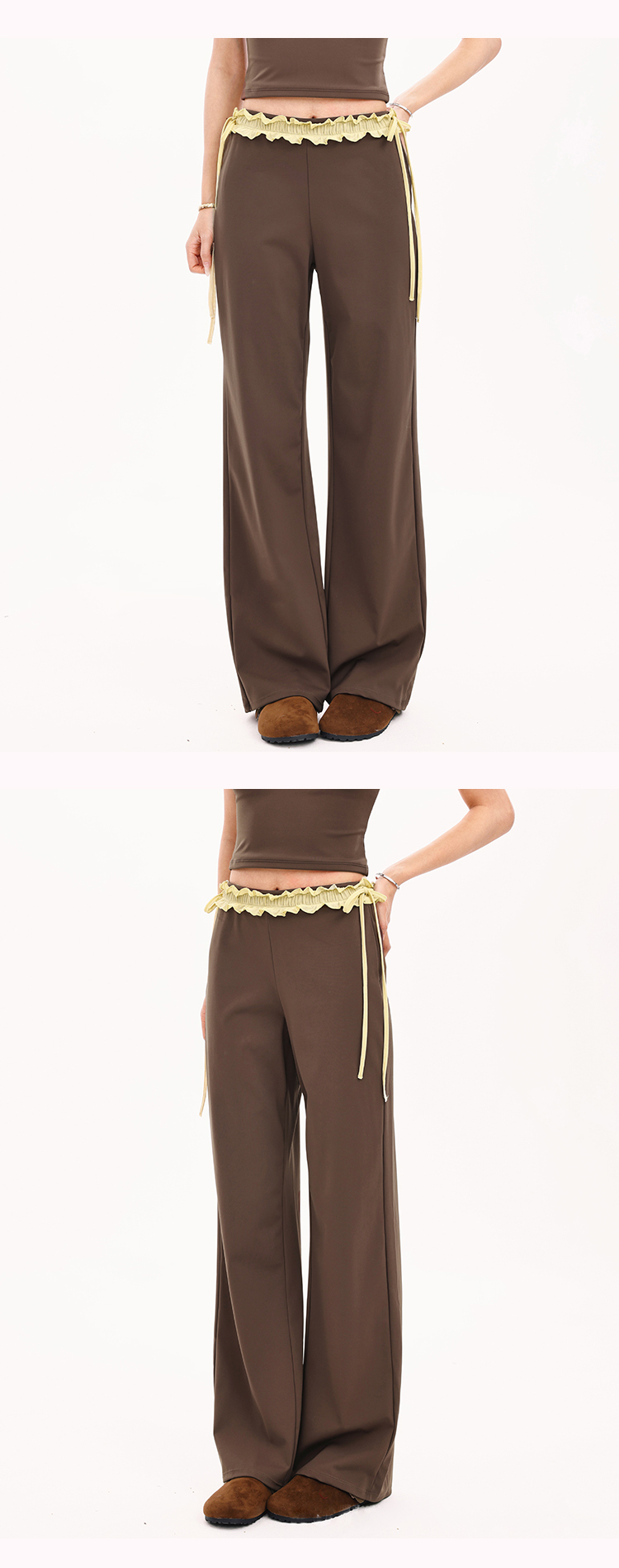 跃牌【禅语梵心】撞色花边阔腿运动长裤宽松显瘦户外跑步瑜伽裤直筒裤女CK3538