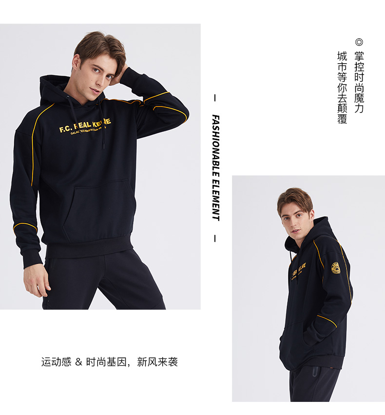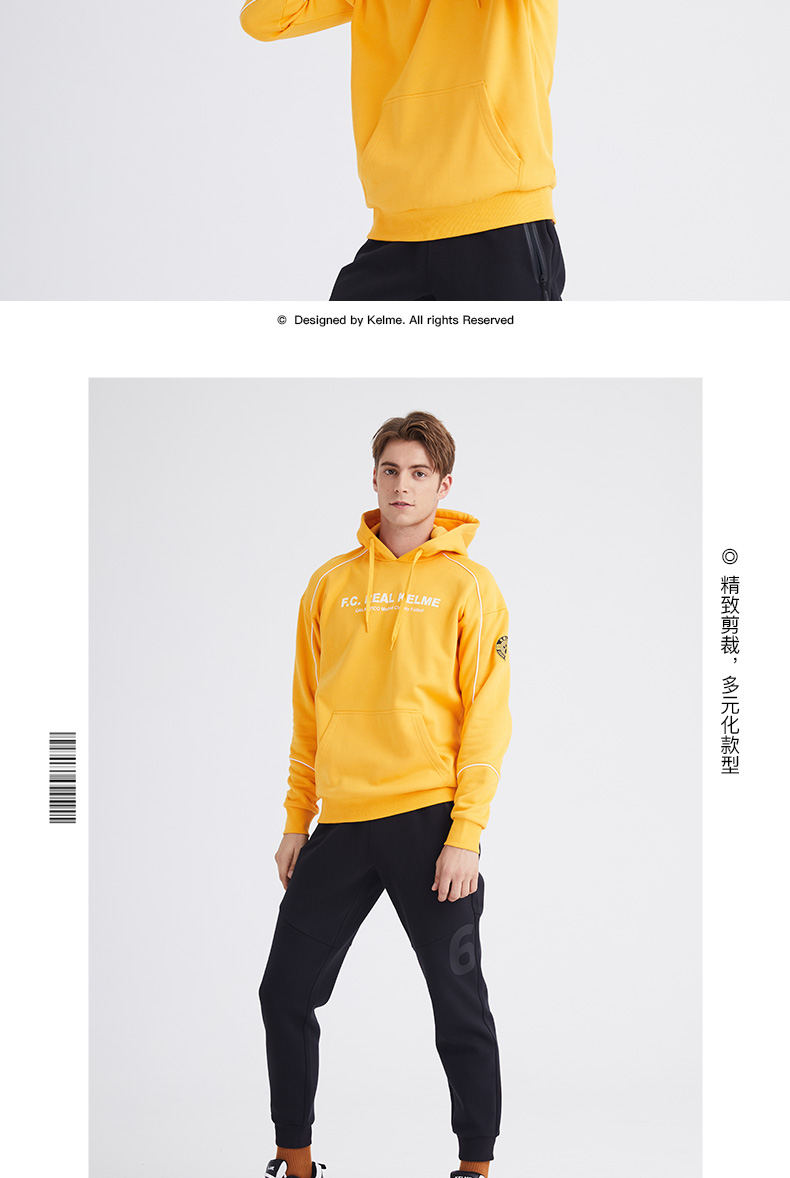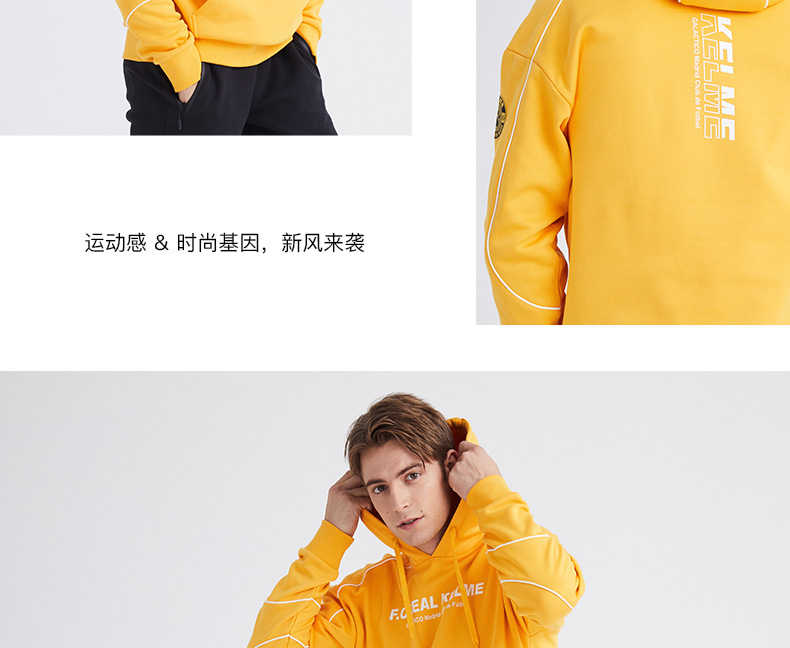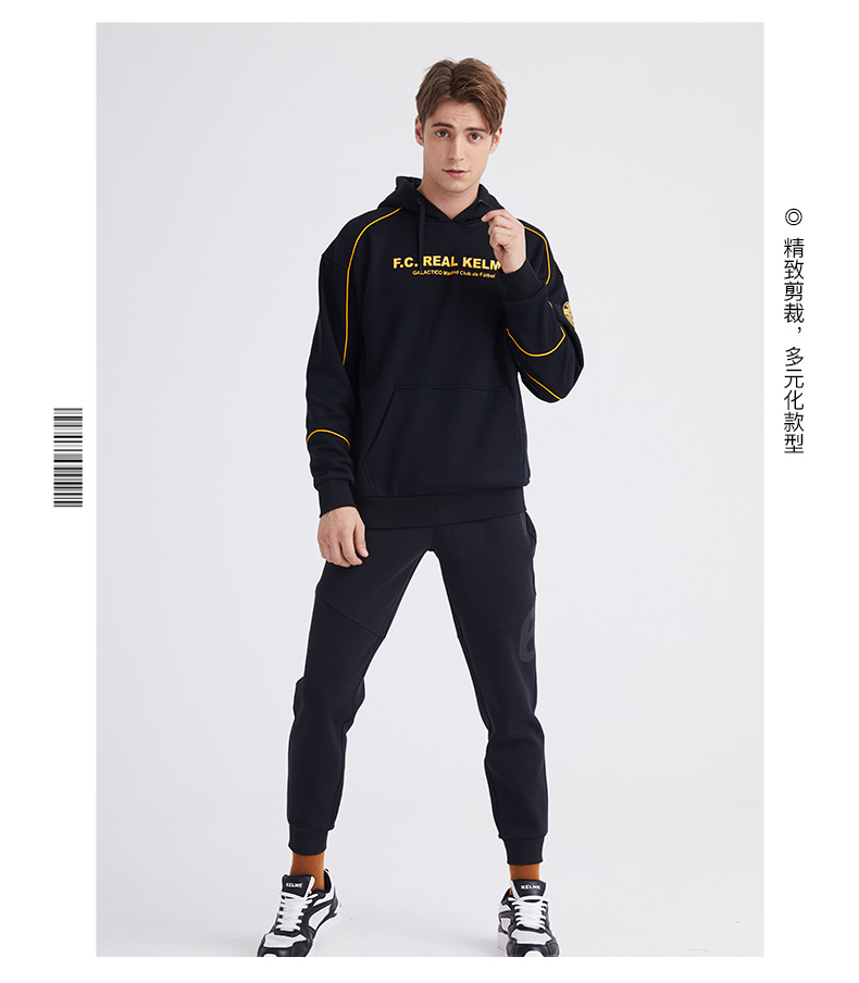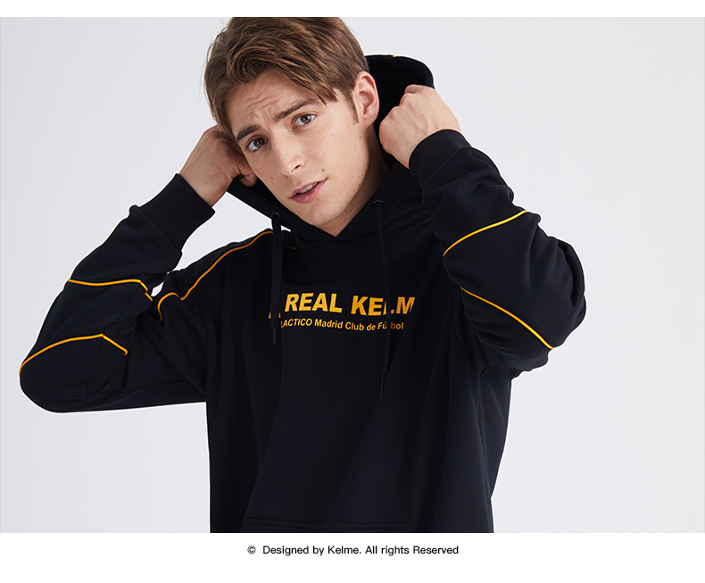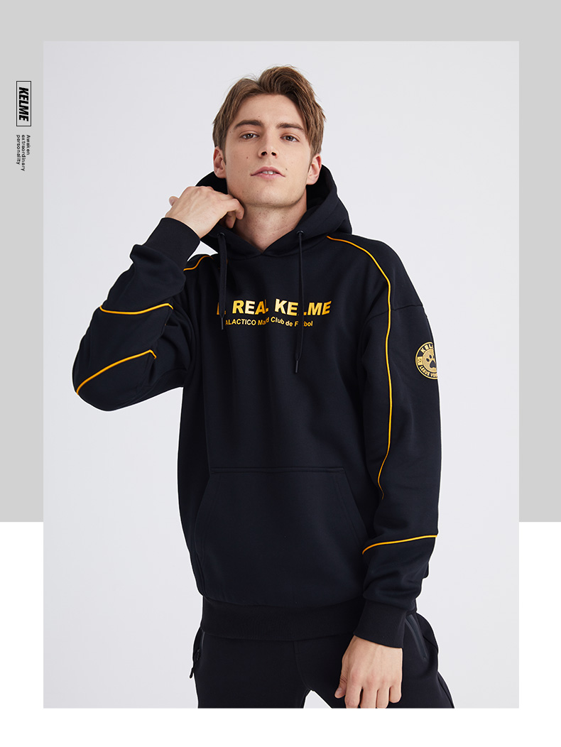 卡尔美KELME秋冬新款学生休闲连帽卫衣时尚字母韩版潮流男套头衫