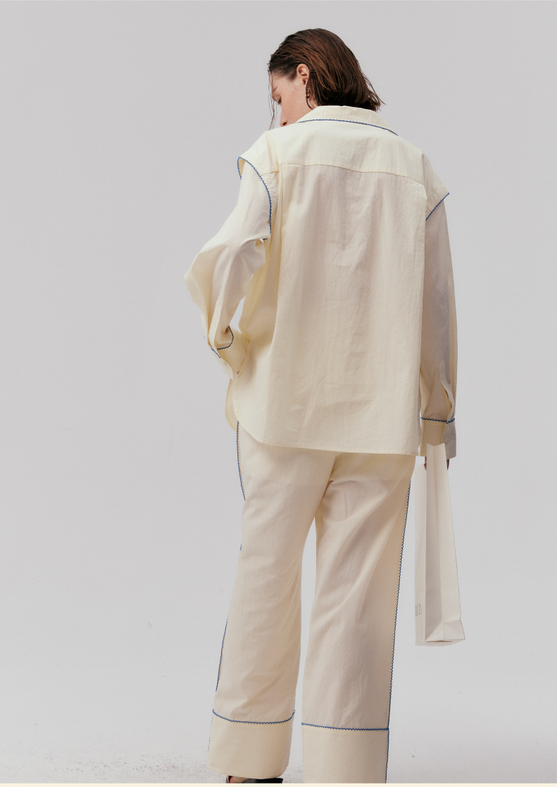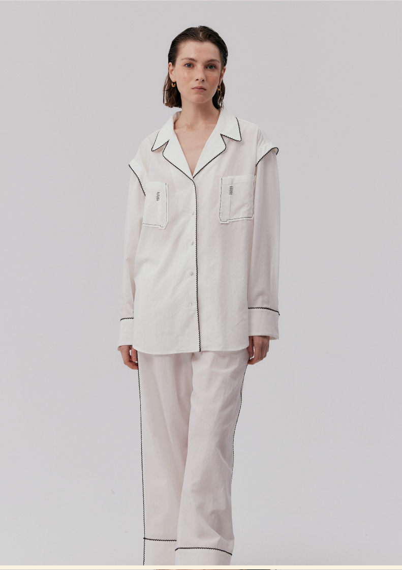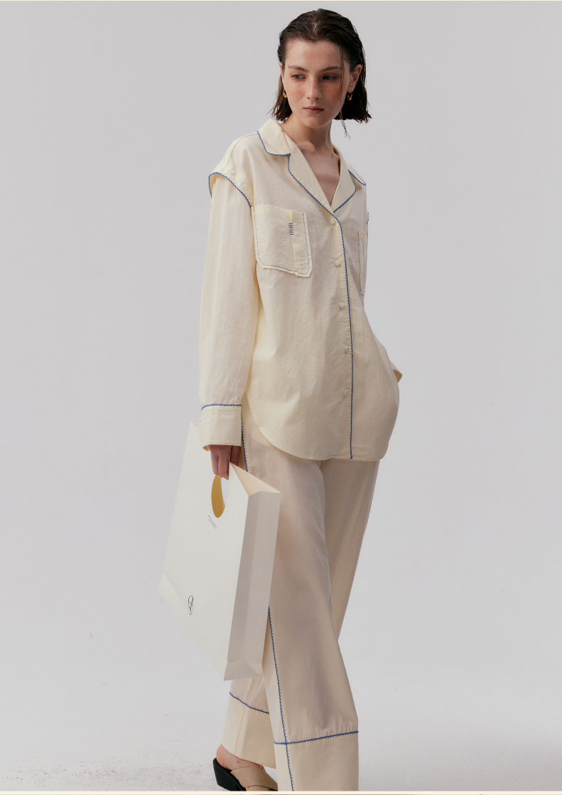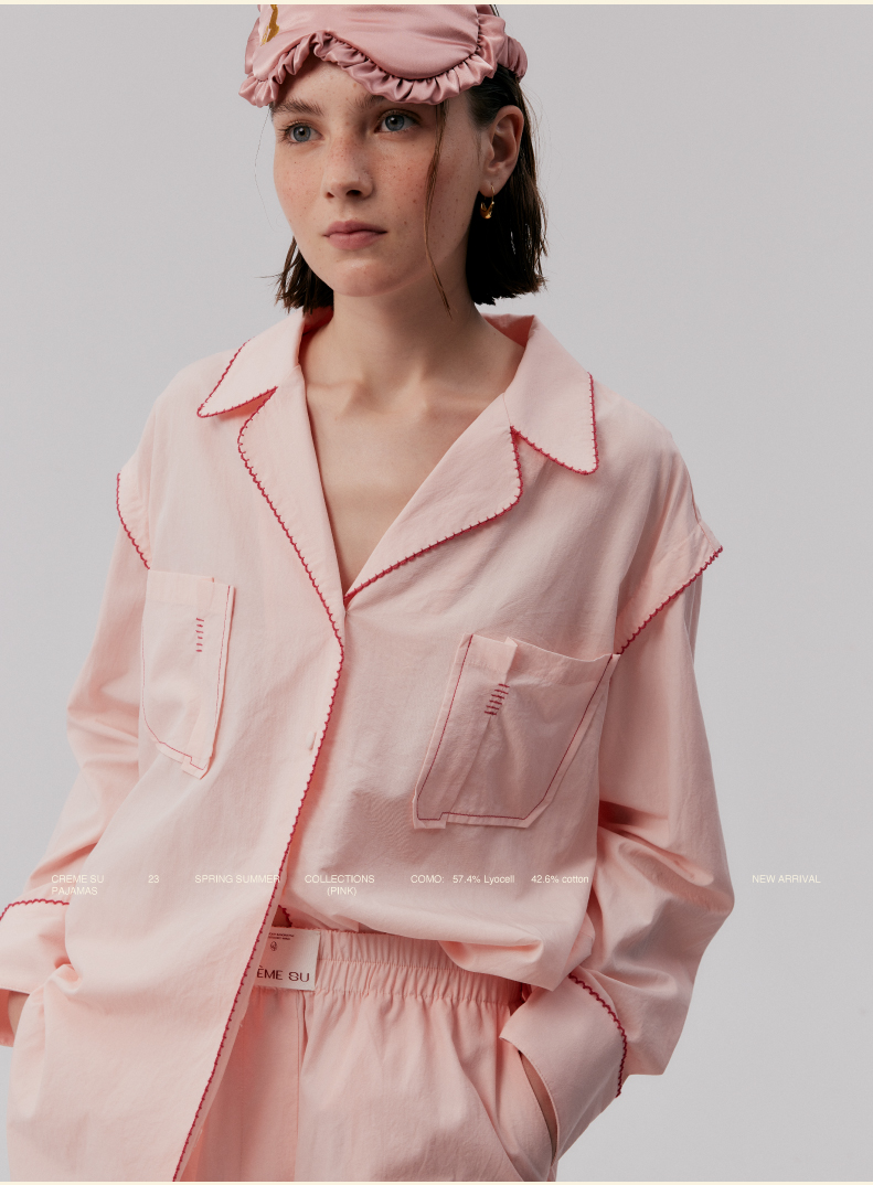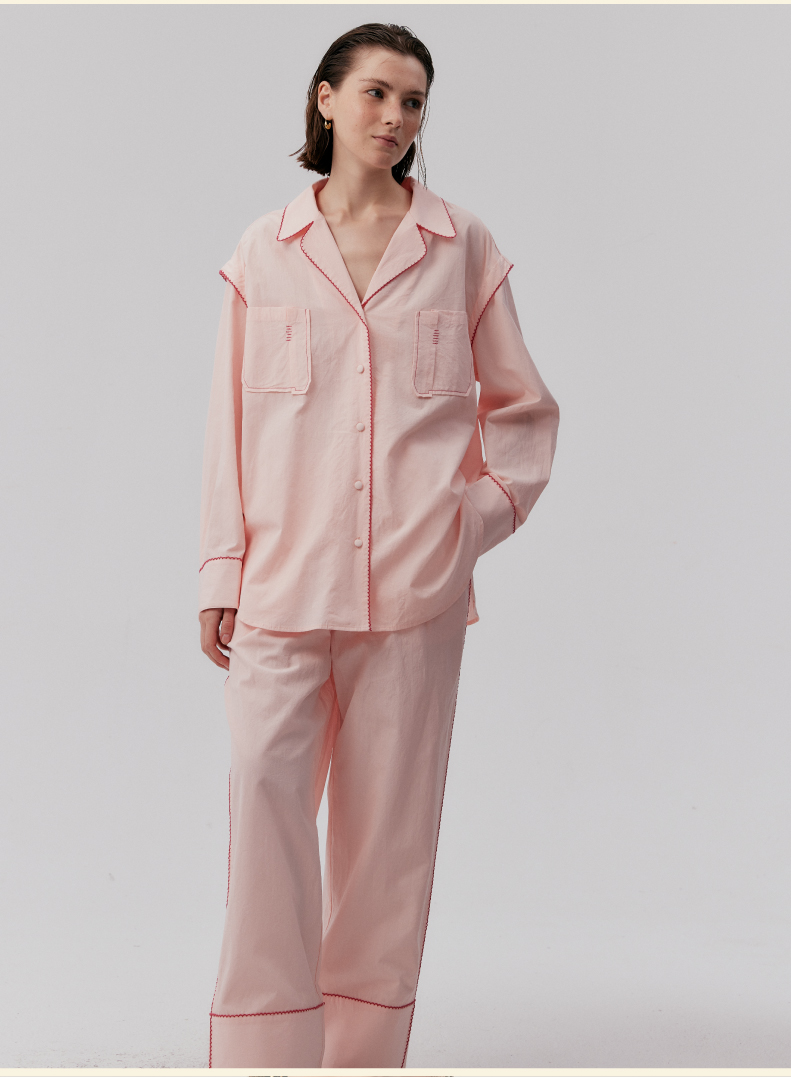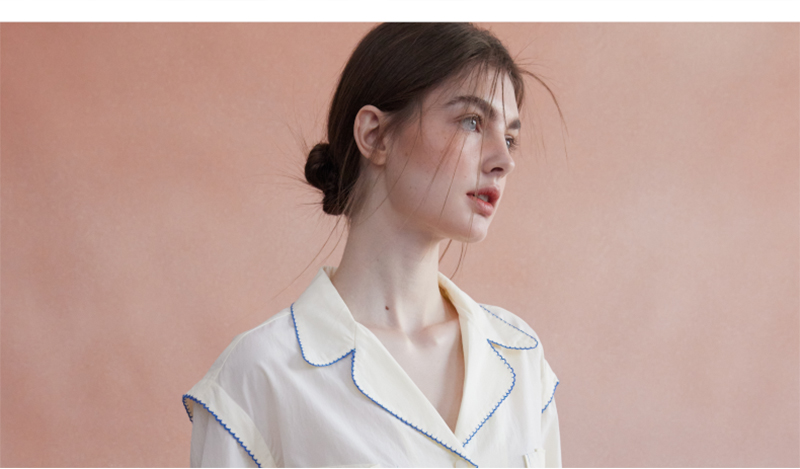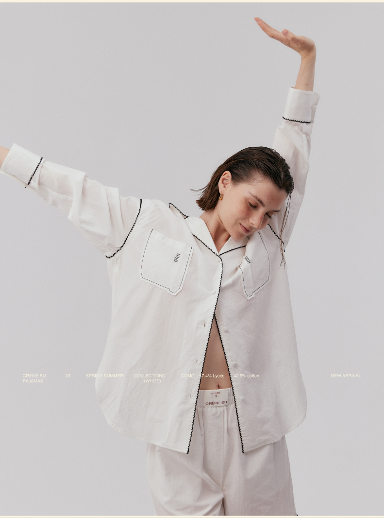 CremeSu 家居服Como系列宽松舒适撞边家居服长袖衬衫长裤短裤【该商品不支持用券】