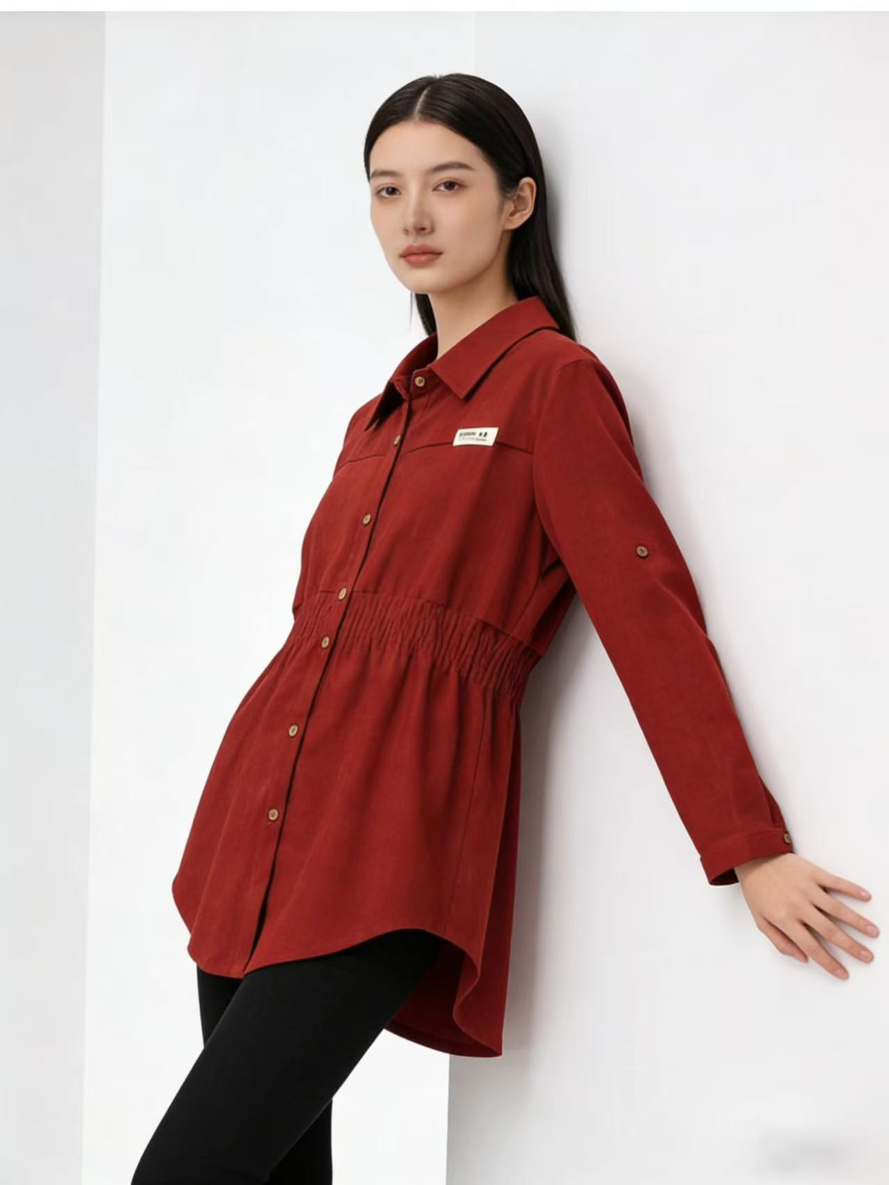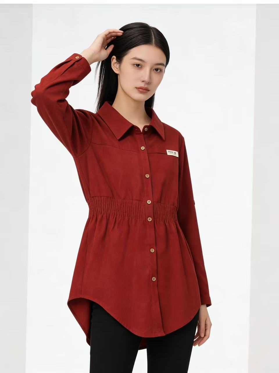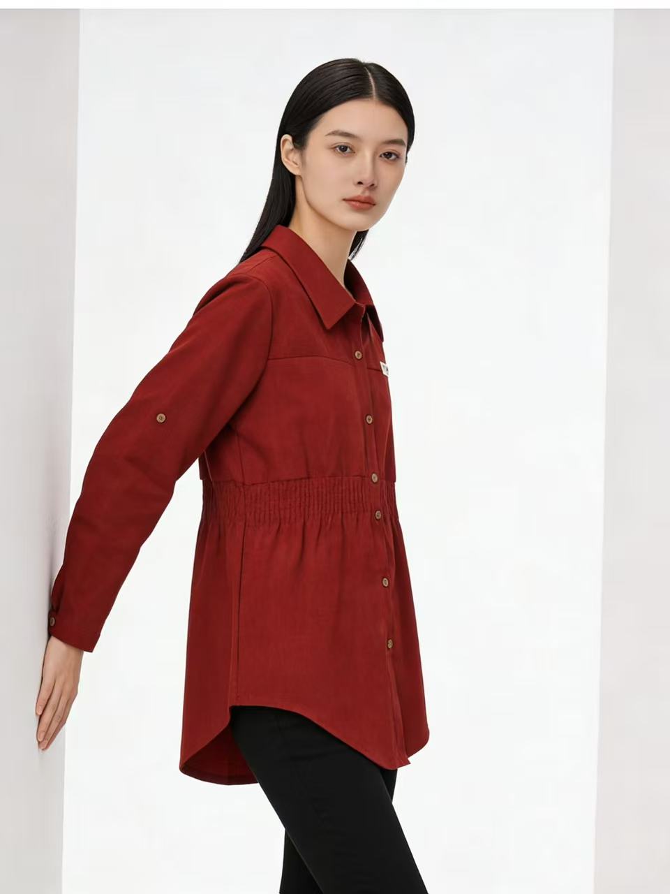 418良粉节|2026 活动爆款 活动爆款【自营】衣周期~Q60 收腰复古中长大衫可卷袖口-喜出