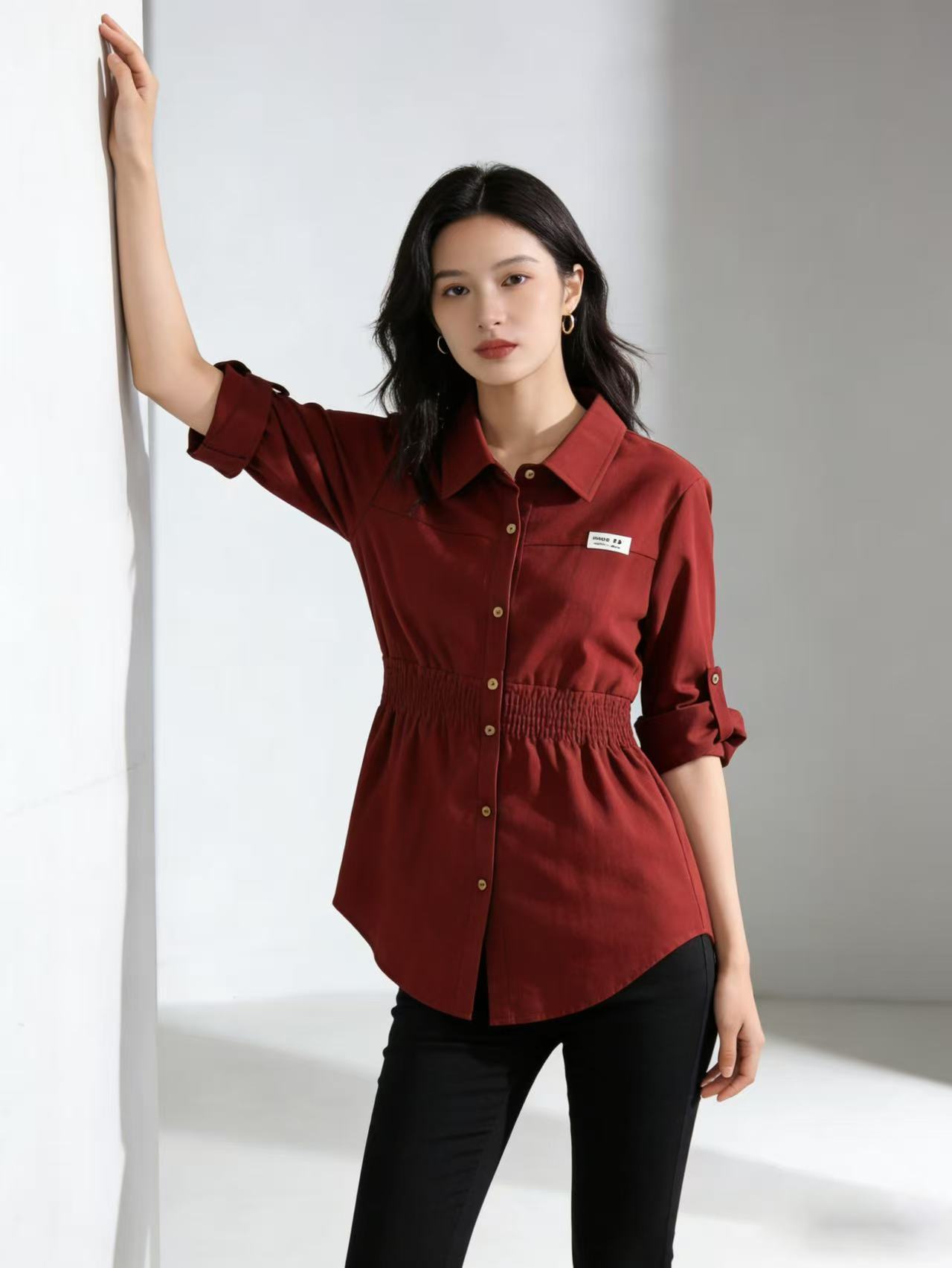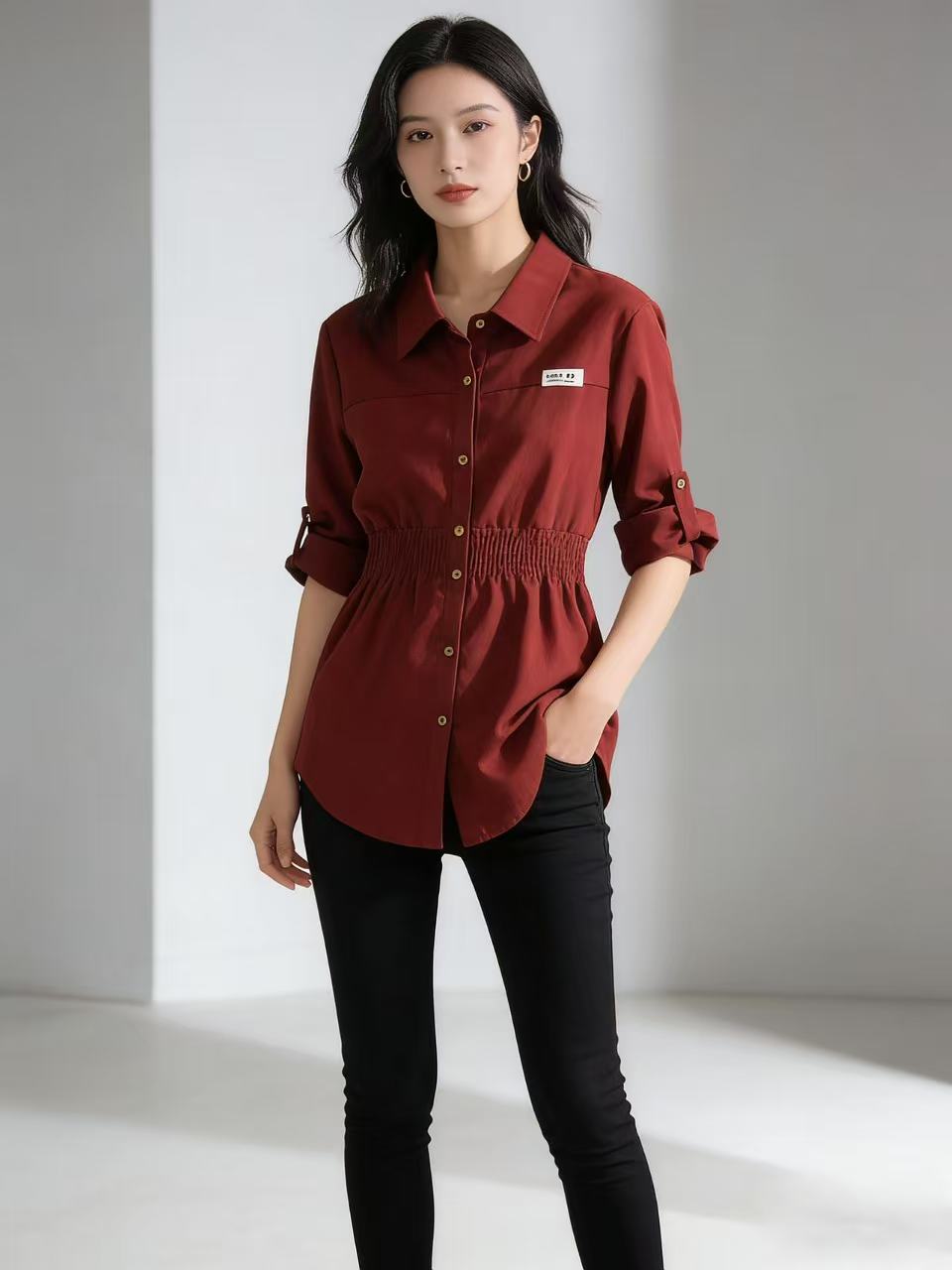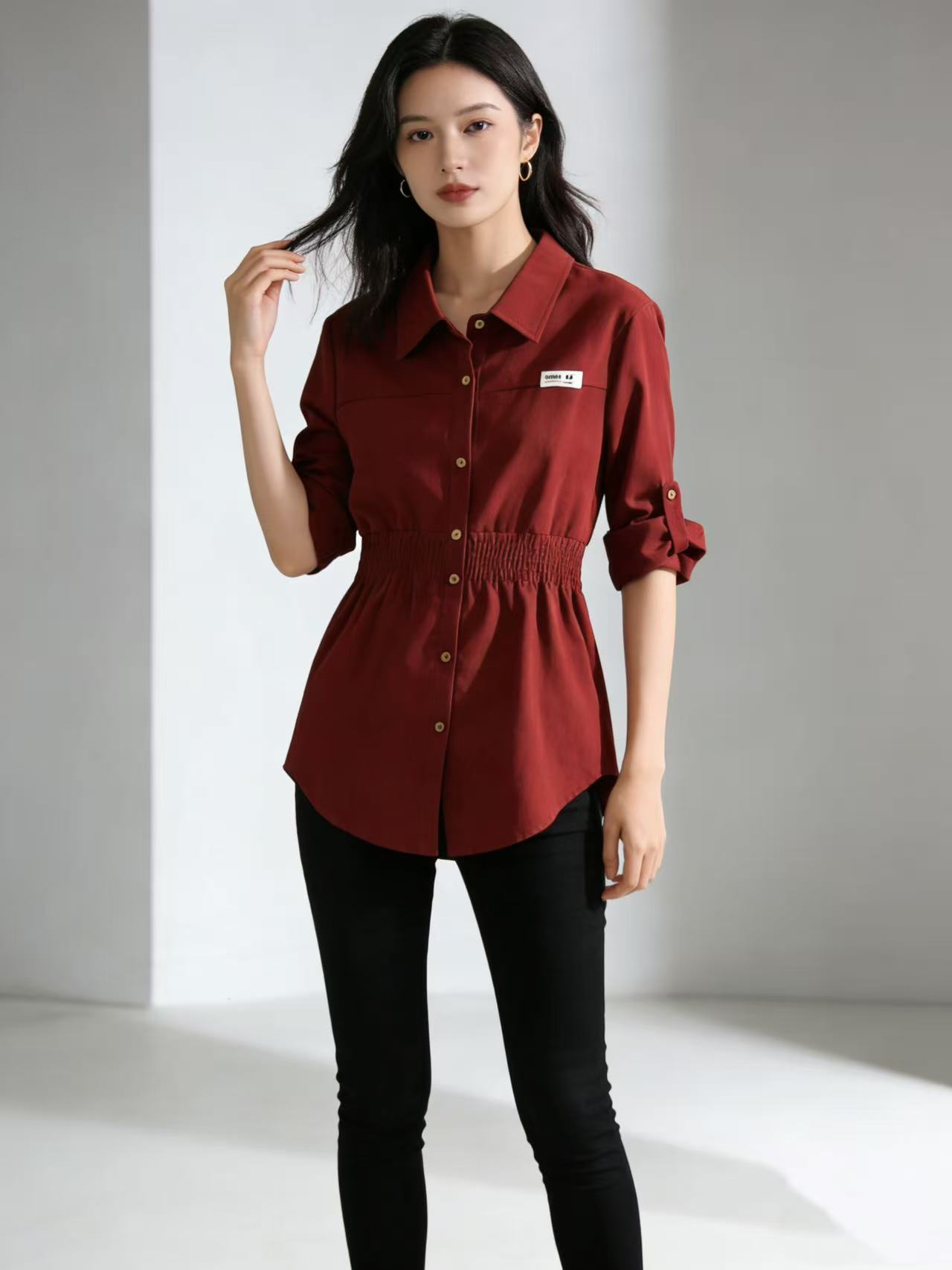 418良粉节|2026 活动爆款 活动爆款【自营】衣周期~Q60 收腰复古中长大衫可卷袖口-喜出