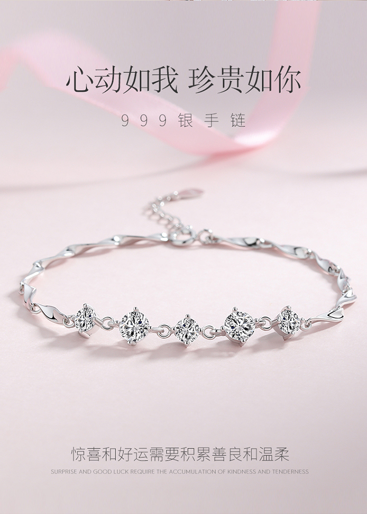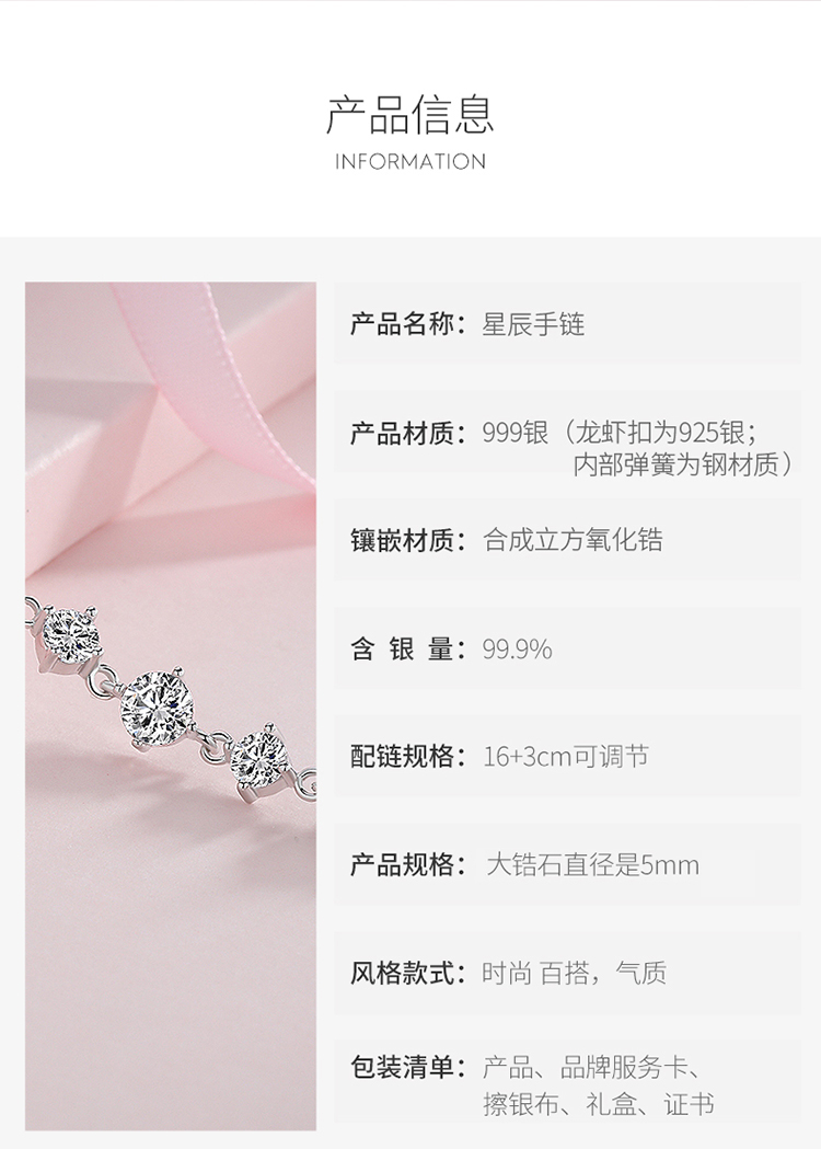 Winy999足银星辰手链配证书送女友闺蜜节日生日礼物