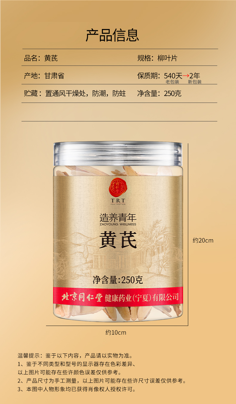 【正宗同仁堂品牌】北京同仁堂 黄芪250克(柳叶片)汤色醇厚 口感浓郁 优选甘肃黄芪 经久耐泡SY