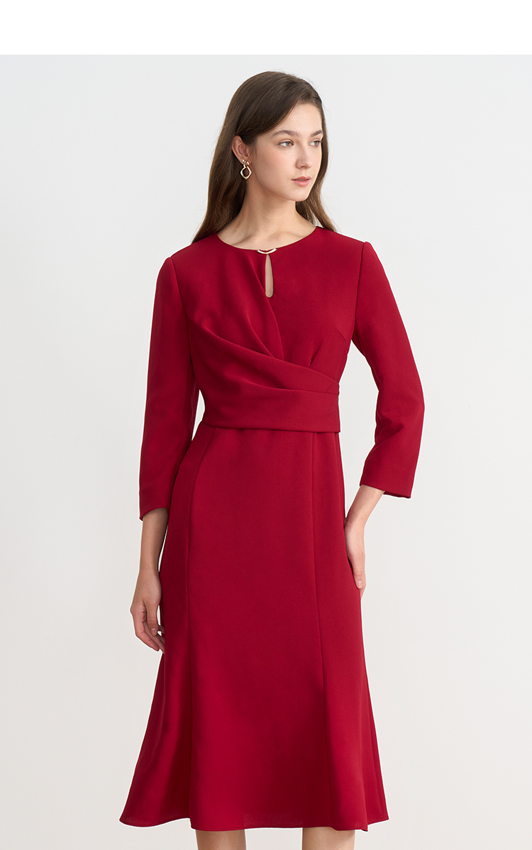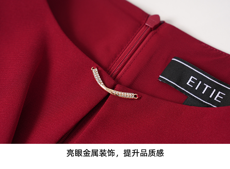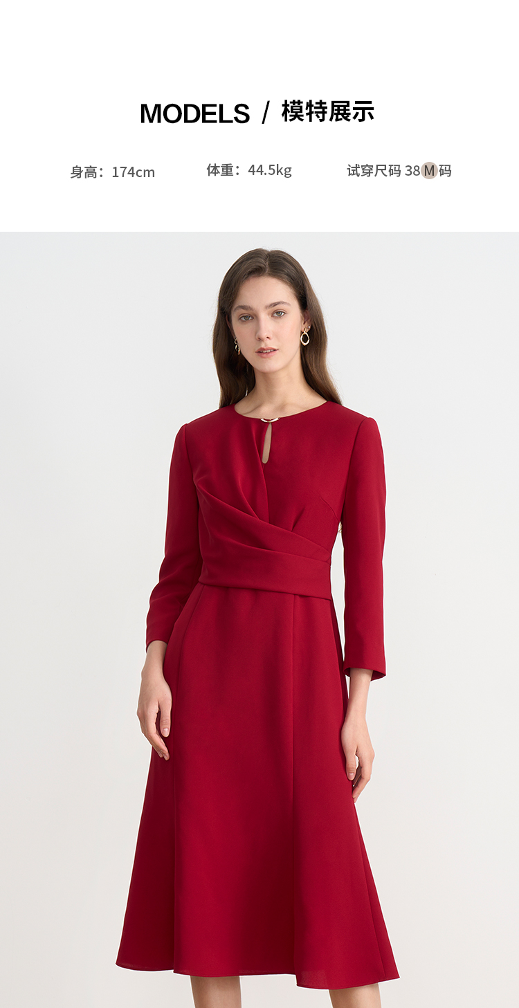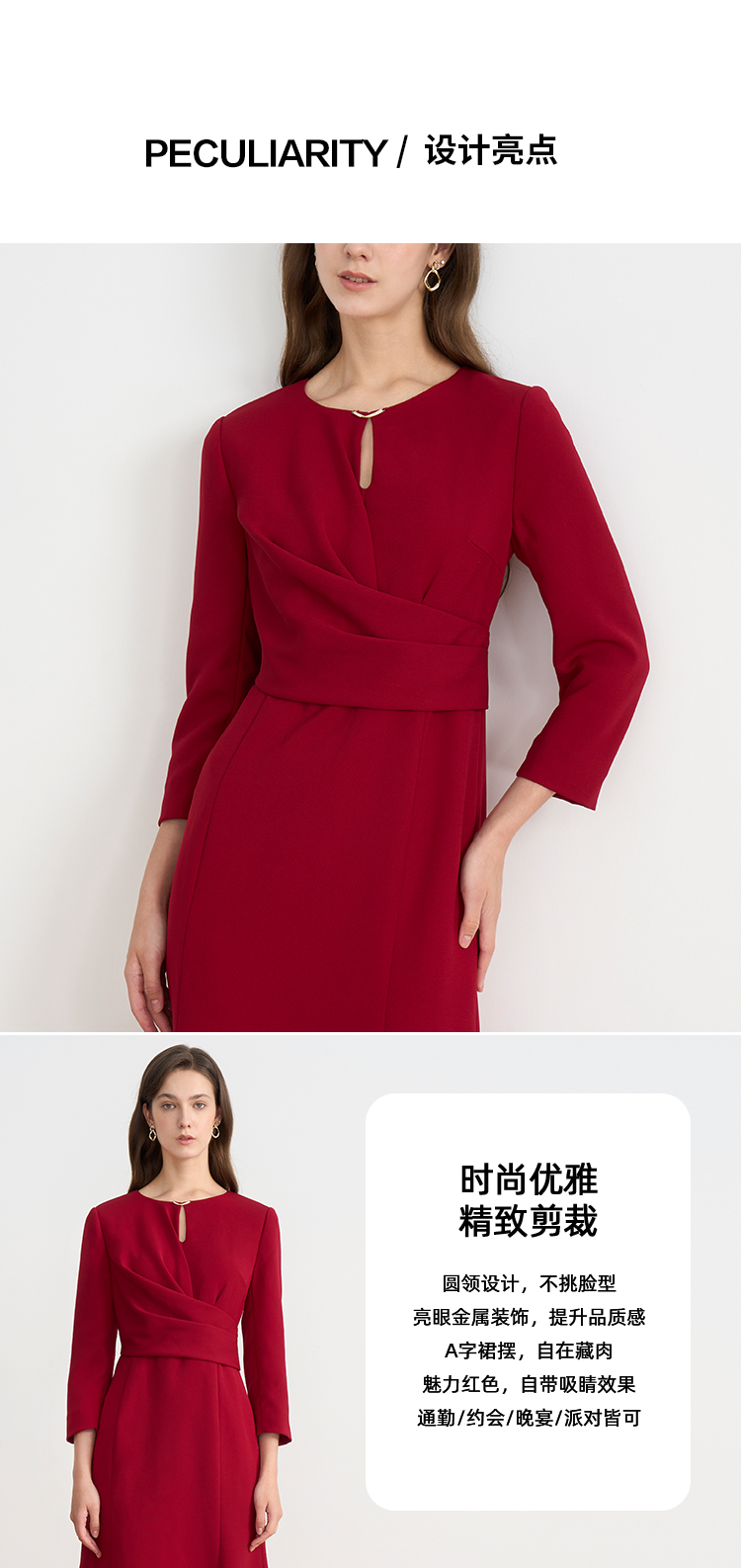 爱特爱优雅气质红色水滴领修身鱼尾轻礼服连衣裙2025秋新款C2507854