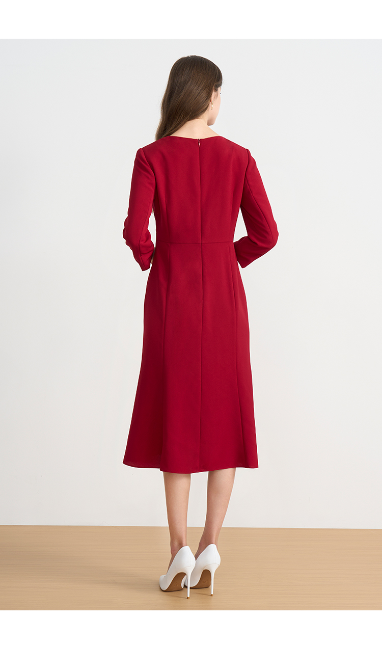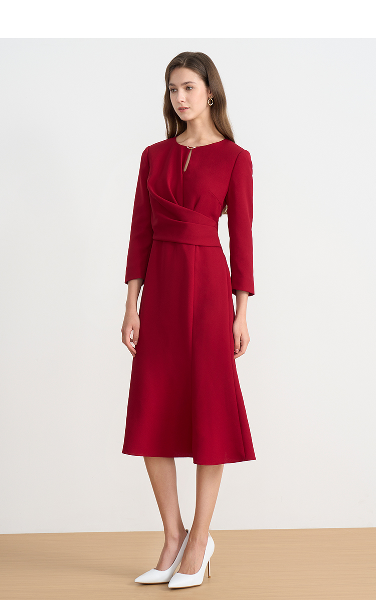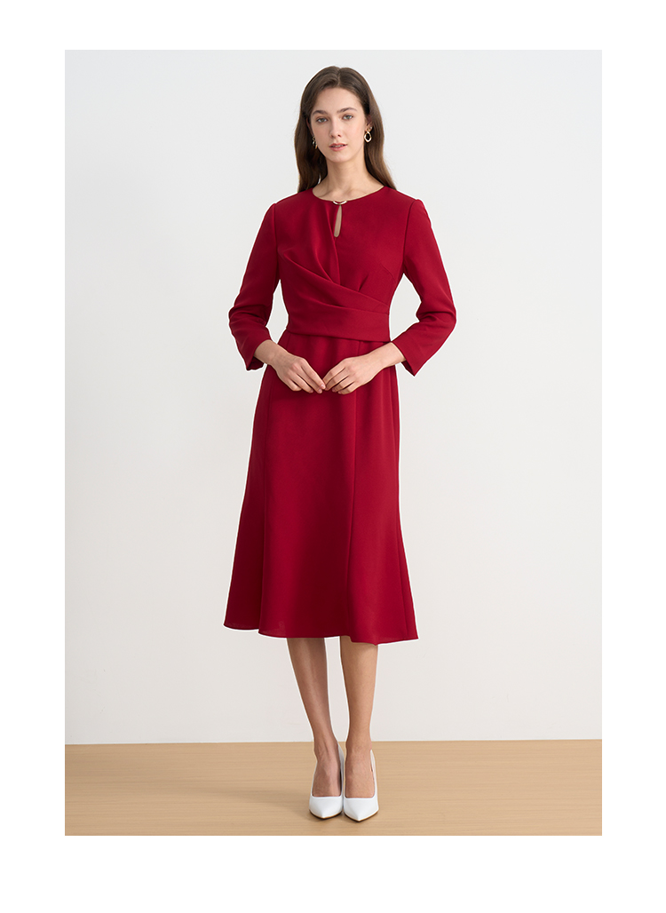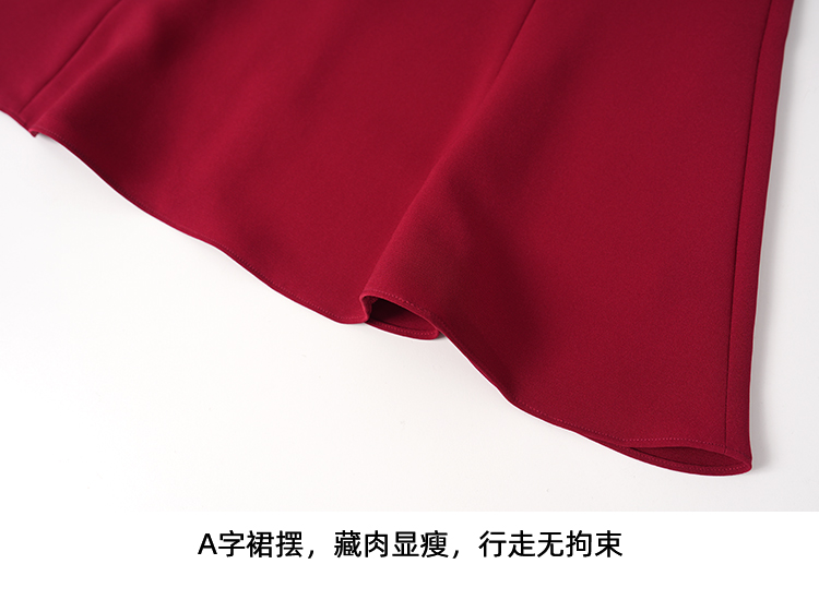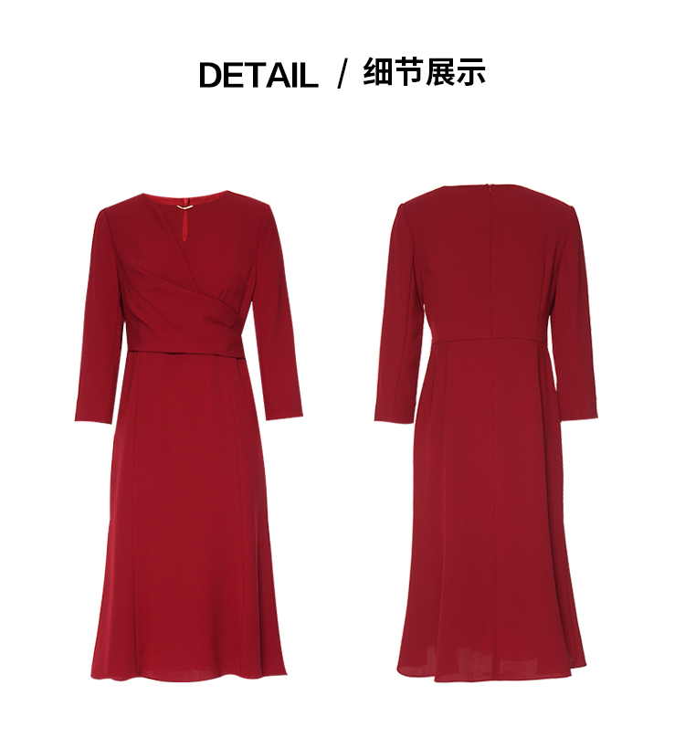 爱特爱优雅气质红色水滴领修身鱼尾轻礼服连衣裙2025秋新款C2507854