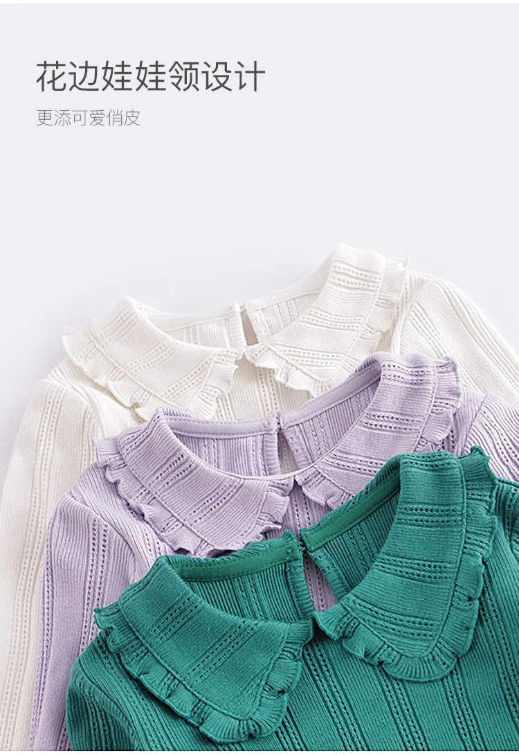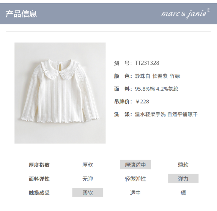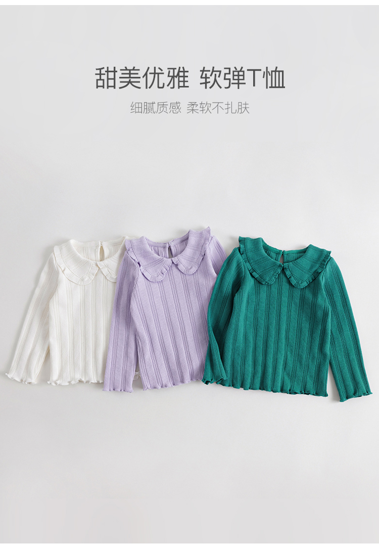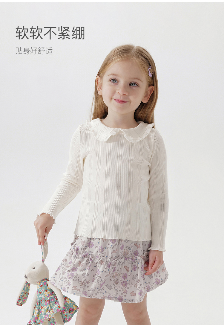 马克珍妮宝宝秋装 女童木耳边弹力针织打底衫儿童T恤上衣231328