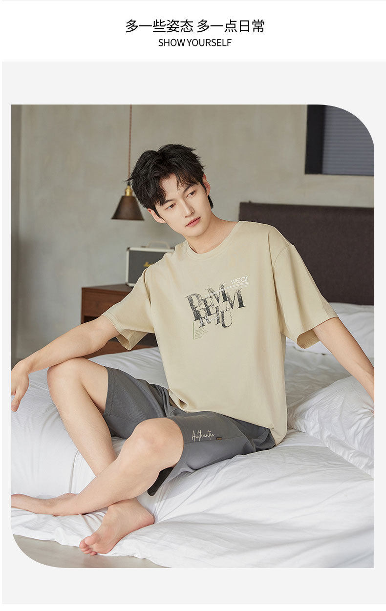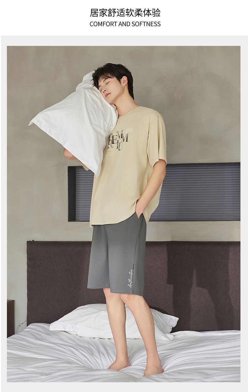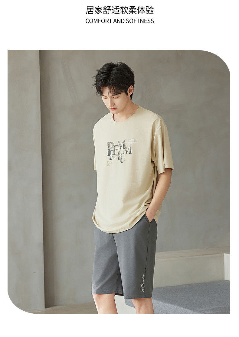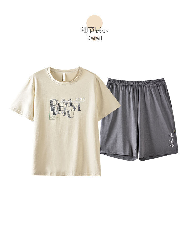纯棉男士家居服夏季短袖短裤爽棉睡衣宽松休闲可外穿薄款套装新款 JL-5500