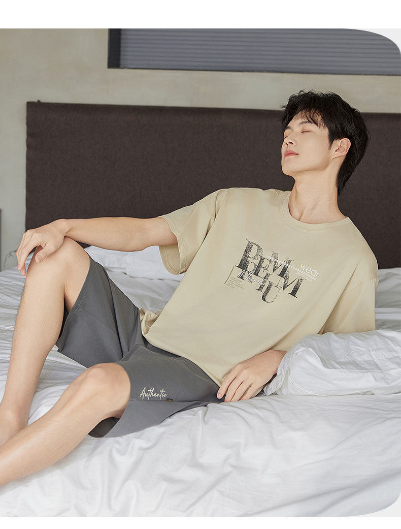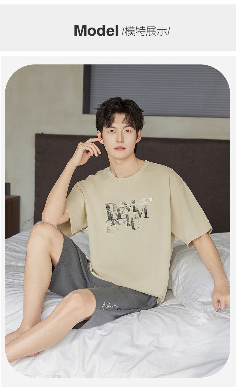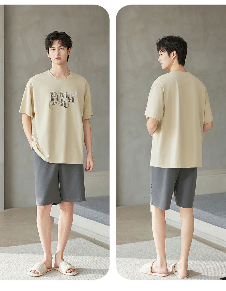 纯棉男士家居服夏季短袖短裤爽棉睡衣宽松休闲可外穿薄款套装新款 JL-5500